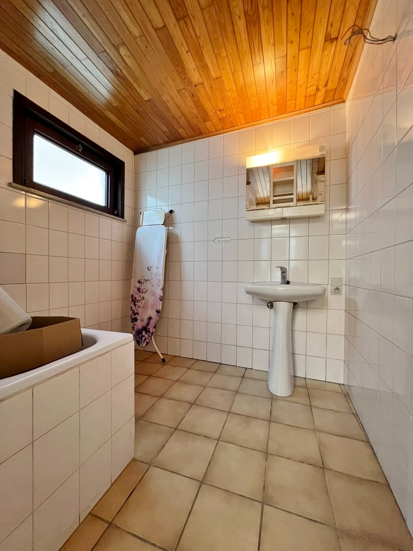 De indeling van de woning gaat als volgt. Via de inkomhal komen we terecht in de ruime lichtrijke leefruimte met eetplaats en open ingerichte keuken. Aansluitend aan de leefruimte vinden we een gezellige zitruimte terug. Terug in de keuken komen we tot bij de badkamer en de veranda met apart toilet en bergruimte. Van hieruit hebben we toegang tot de gezellige zonnige tuin met buitenberging.