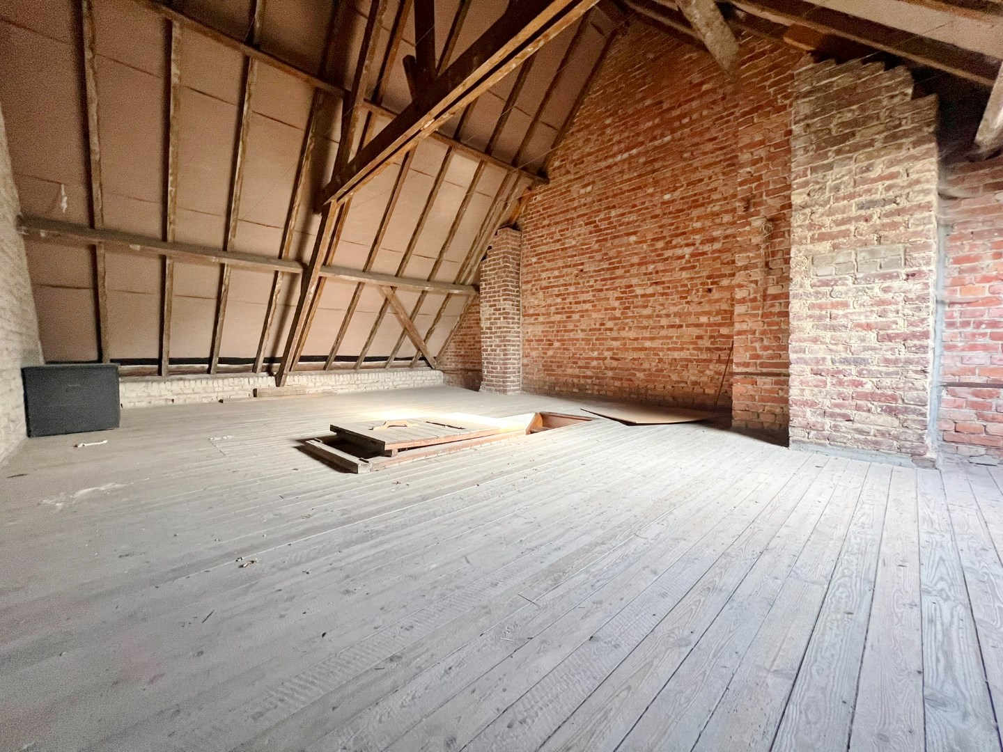 Op de eerste verdieping treffen we twee zeer ruime slaapkamers. Op het tweede verdiep (bereikbaar via vaste trap) is een grote open zolderruime met mogelijkheid tot één of meerdere slaapkamers.