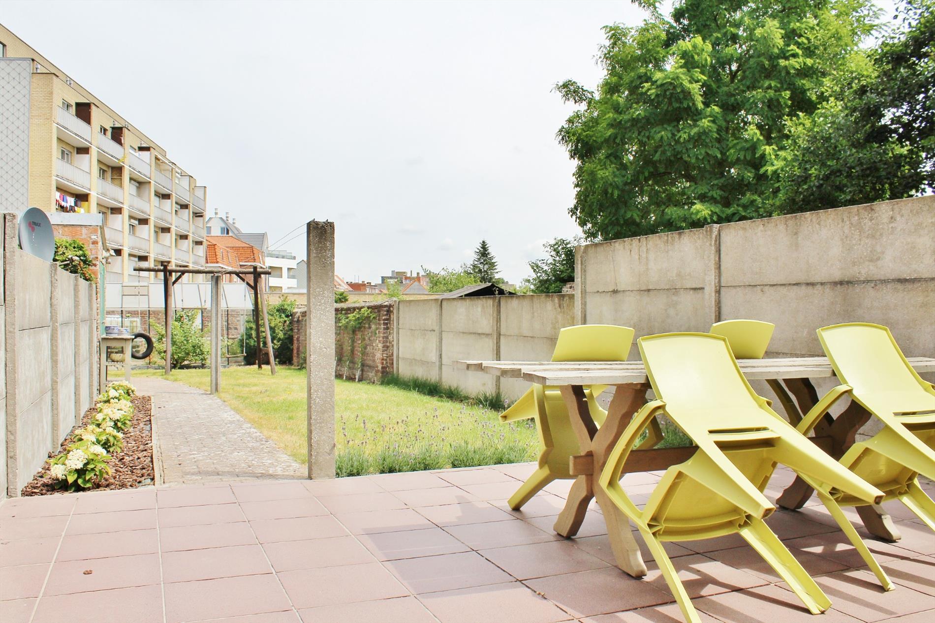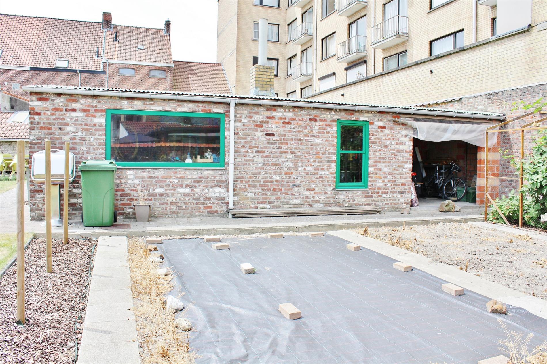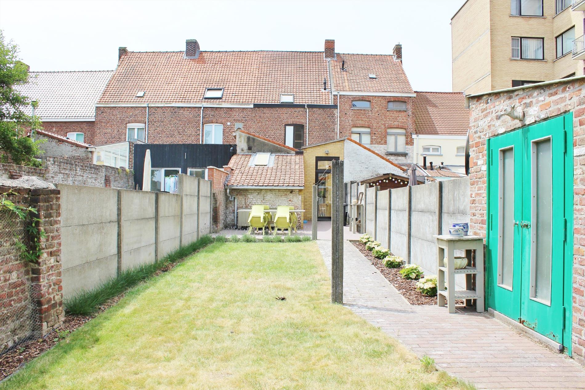 Buiten is een ruime zonnige tuin met buitenberging.
