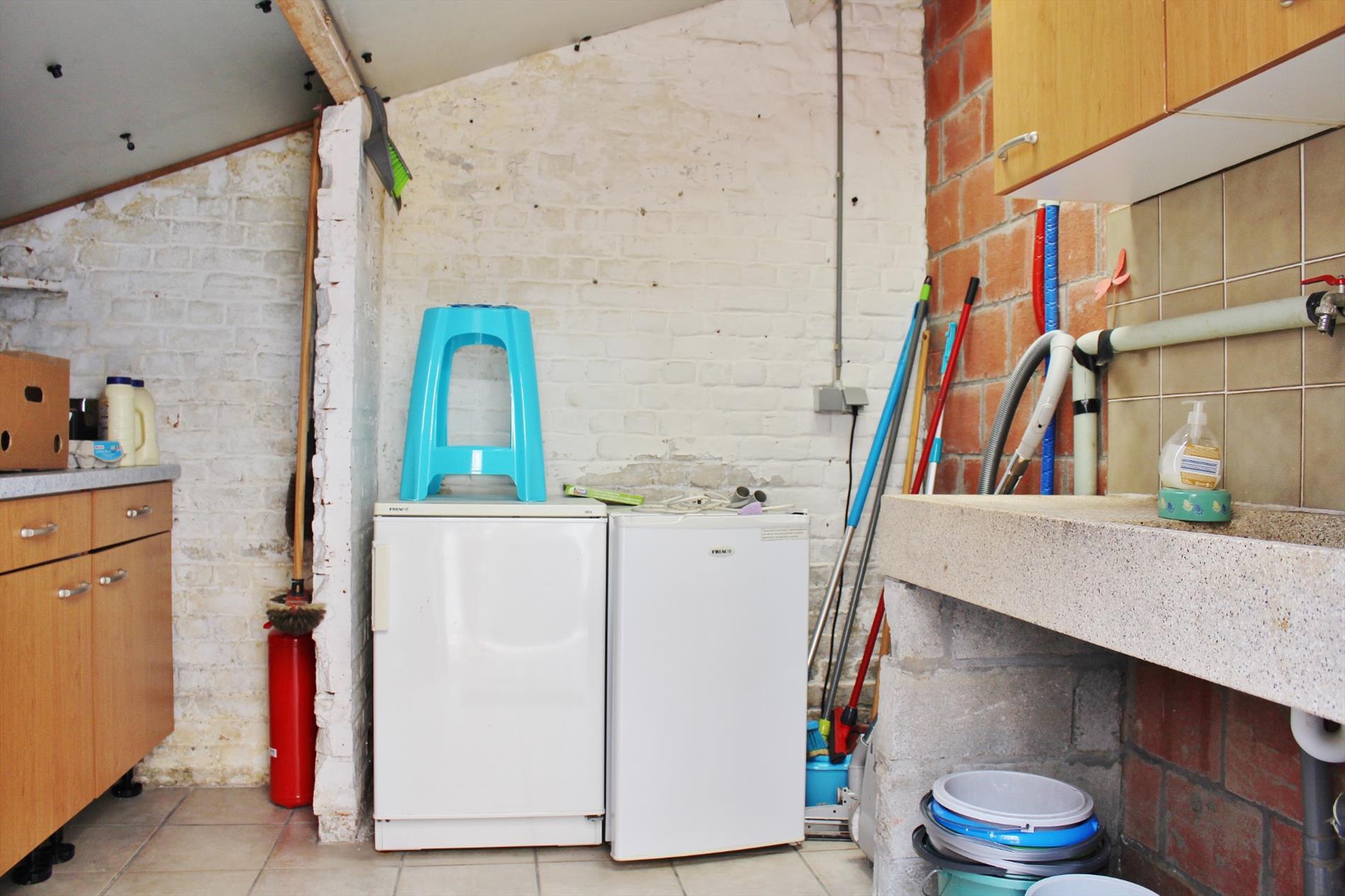 Deze eigendom is zeer centraal gelegen en omvat een gelijkvloerse verdieping met inkom, slaapkamer/hobbykamer, ruime leefruimte met half-open volledig ingerichte keuken, badkamer met lavabo meubel, ligbad en toilet, veranda en een wasplaats. Op de eerste verdieping zijn 2 zeer ruime slaapkamers en een toilet, op het tweede verdiep is een ruime slaapkamer en een zolderkamer met extra zolder verdiep.
