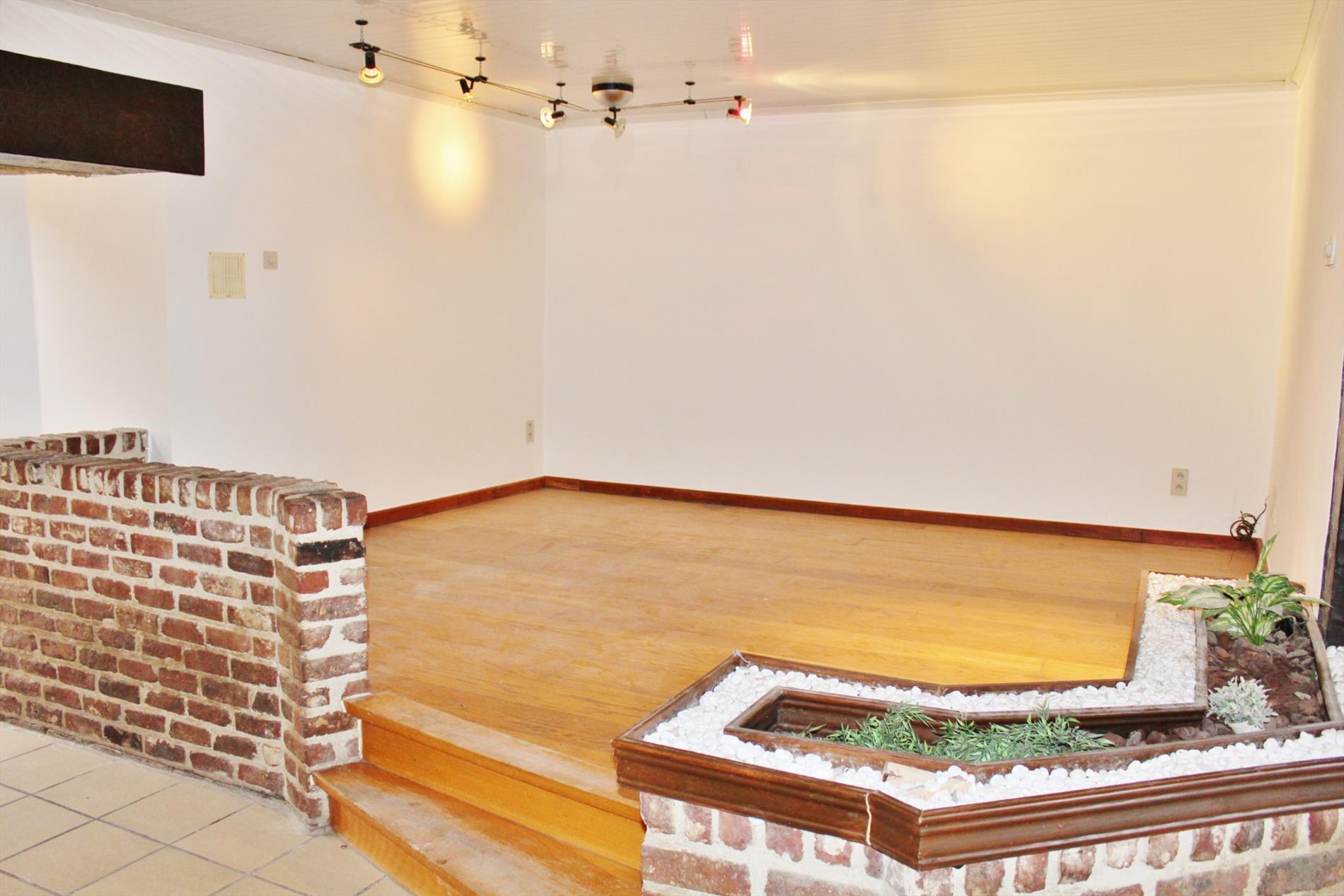 Deze eigendom is zeer centraal gelegen in Ieper en omvat een gelijkvloerse verdieping met een inkomhal met trap, technische berging en een gastentoilet, een grote lichtrijke leefruimte met voute en open ingerichte keuken, een recent vernieuwde badkamer met inloopdouche, lavabomeubel en toilet. Er is tevens een ruime droge kelder.