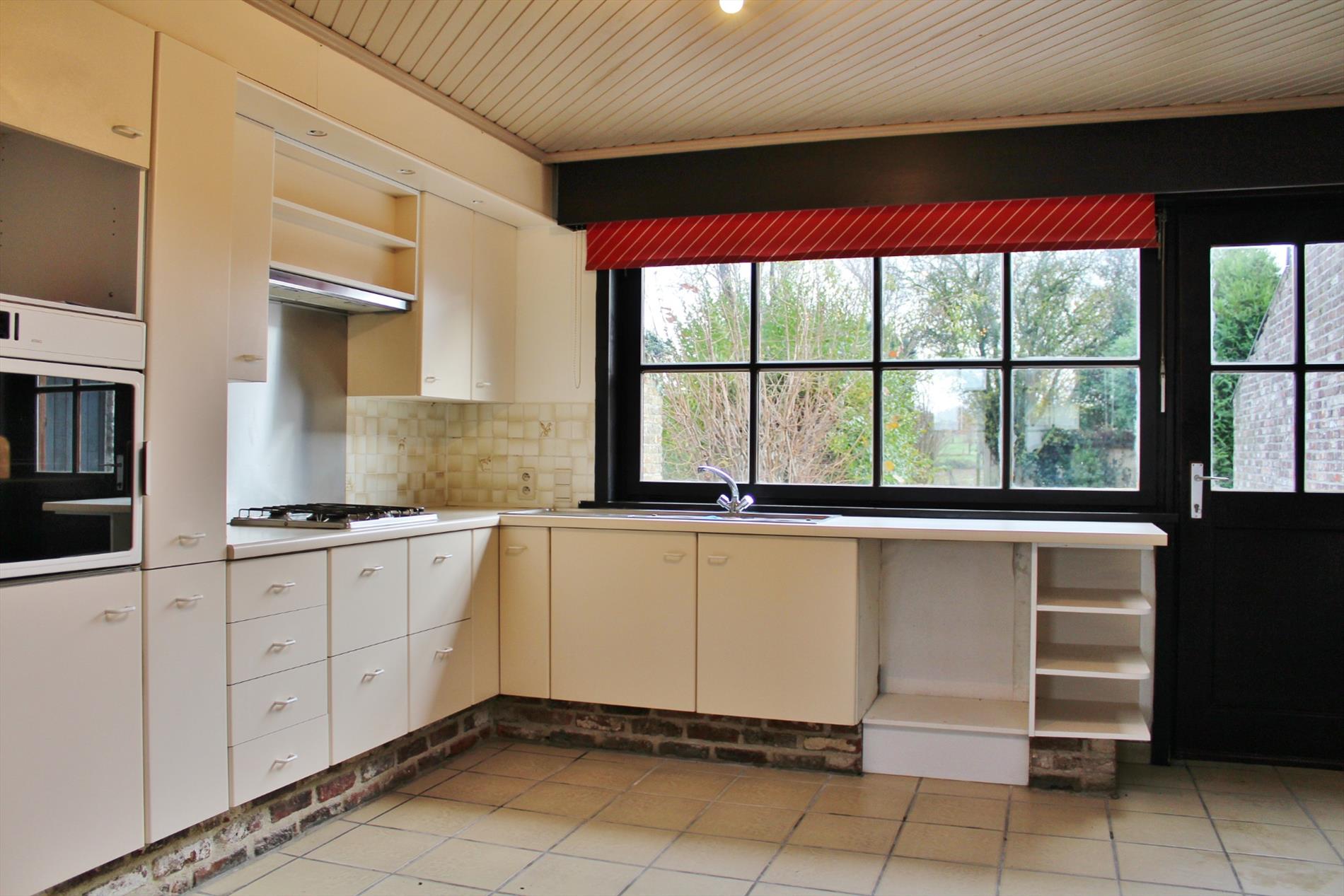 Vanuit de keuken kijk je uit op het terras en de tuin.