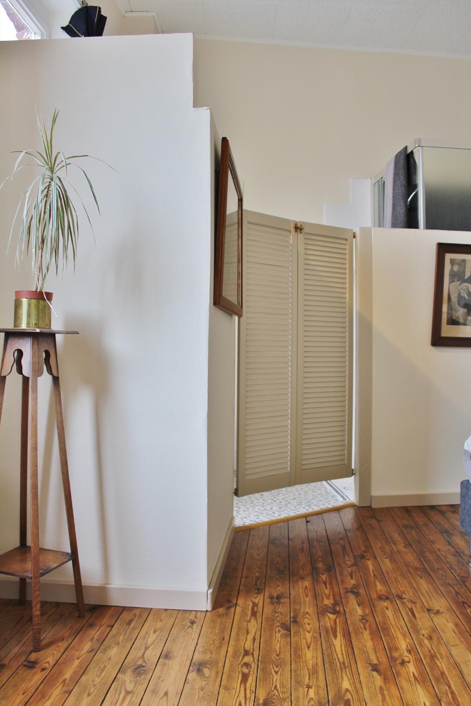 Momenteel is de indeling als volgt: een eerste verdieping met inkom, ruime lichtrijke leefruimte met eet- en zitplaats, ingerichte keuken, bergplaats, kelder. Op het eerste verdiep zijn 2 ruime slaapkamer elk met hun eigen badkamer telkens met inloopdouche, toilet en wastafel.. Op het tweede verdiep bereikbaar via vaste trap is een derde slaapkamer met badkamer en een open zolderruimte.