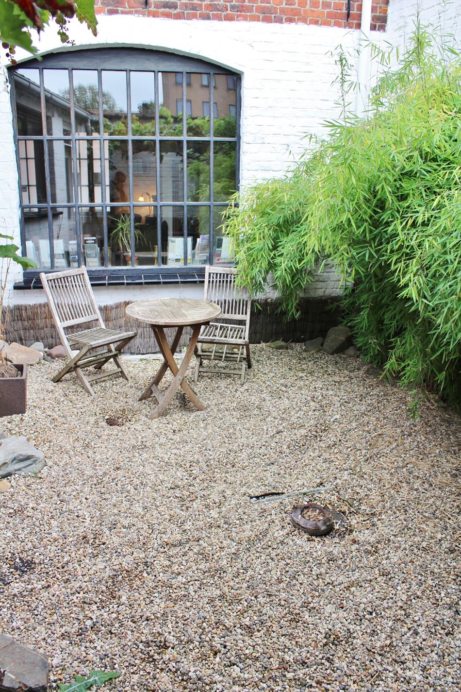 Buiten is een gezellige koer.