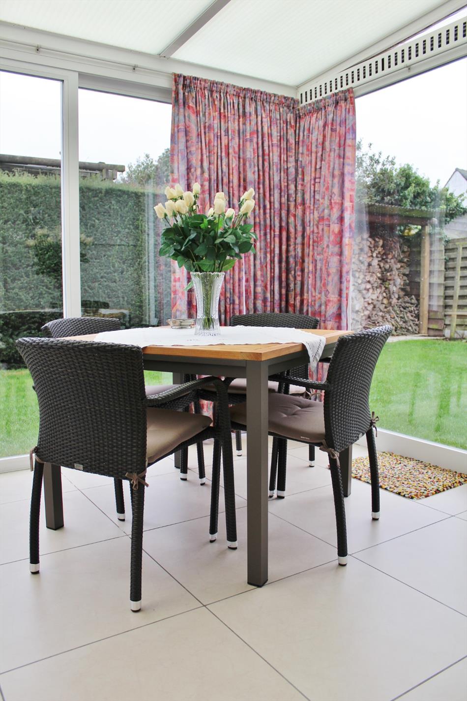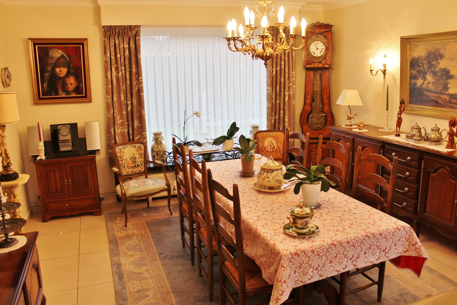 Deze villa is zeer rustig en tevens centraal gelegen en omvat een inkom, toilet, ruime lichtrijke leefruimte met gezellige houtkachel, volledig ingerichte keuken met eetplaats en aansluitende veranda, ruime kelderberging, nachthal, badkamer met douche en lavabo meubel, 3 ruime slaapkamers en een dubbele garage met zolderruimte.