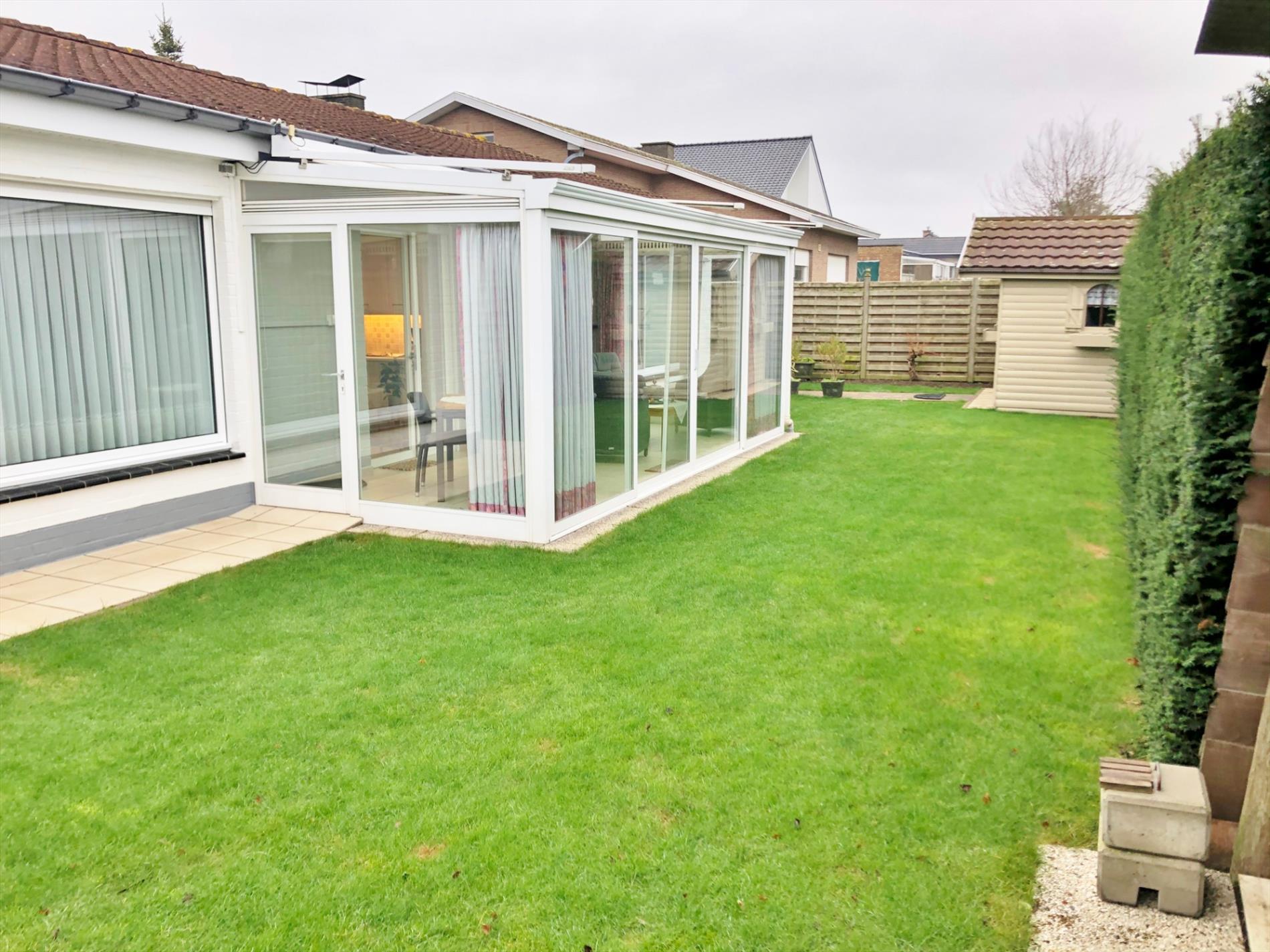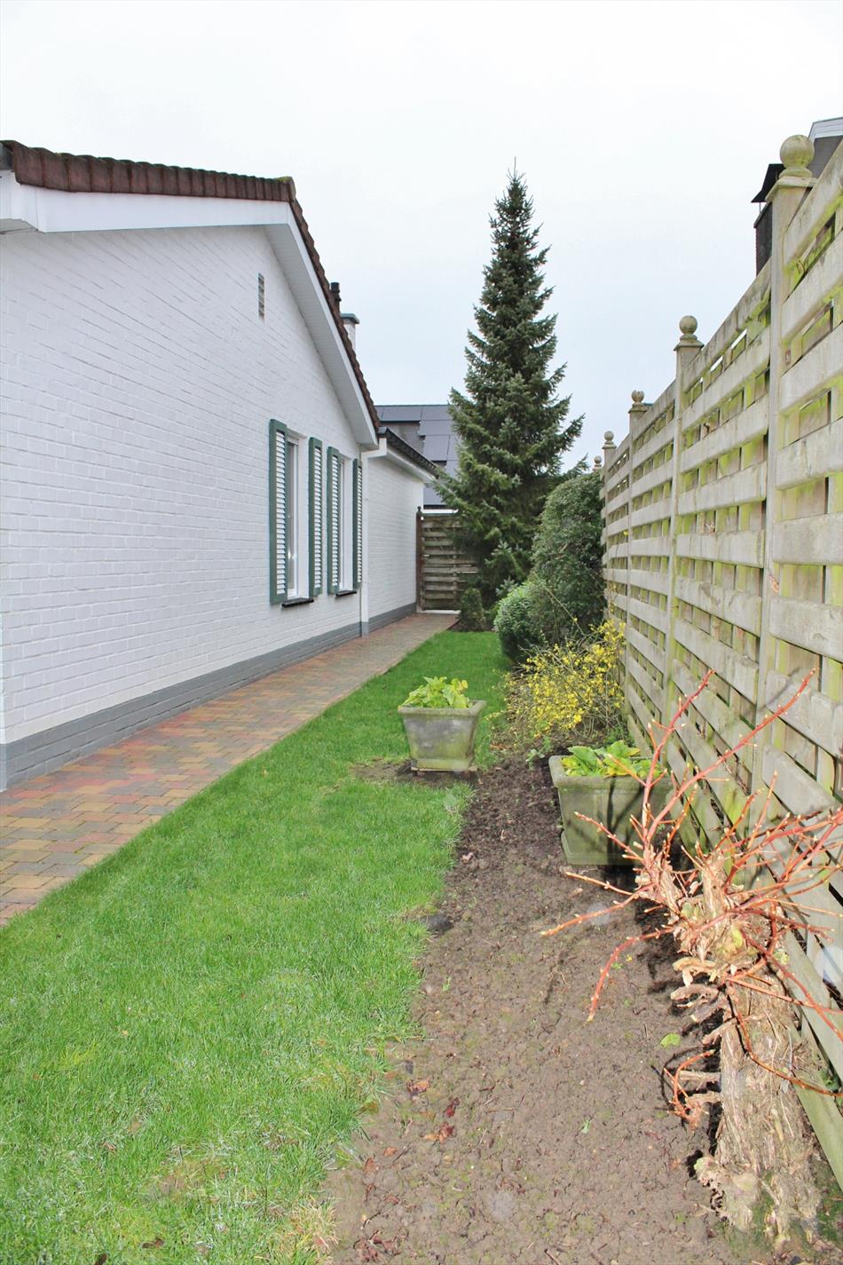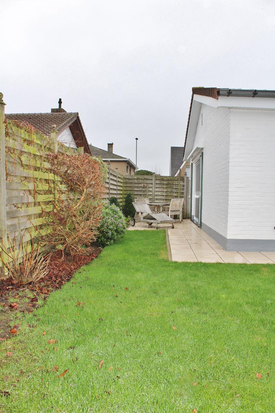 Buiten vinden we een voor- en achtertuin met buitenberging.