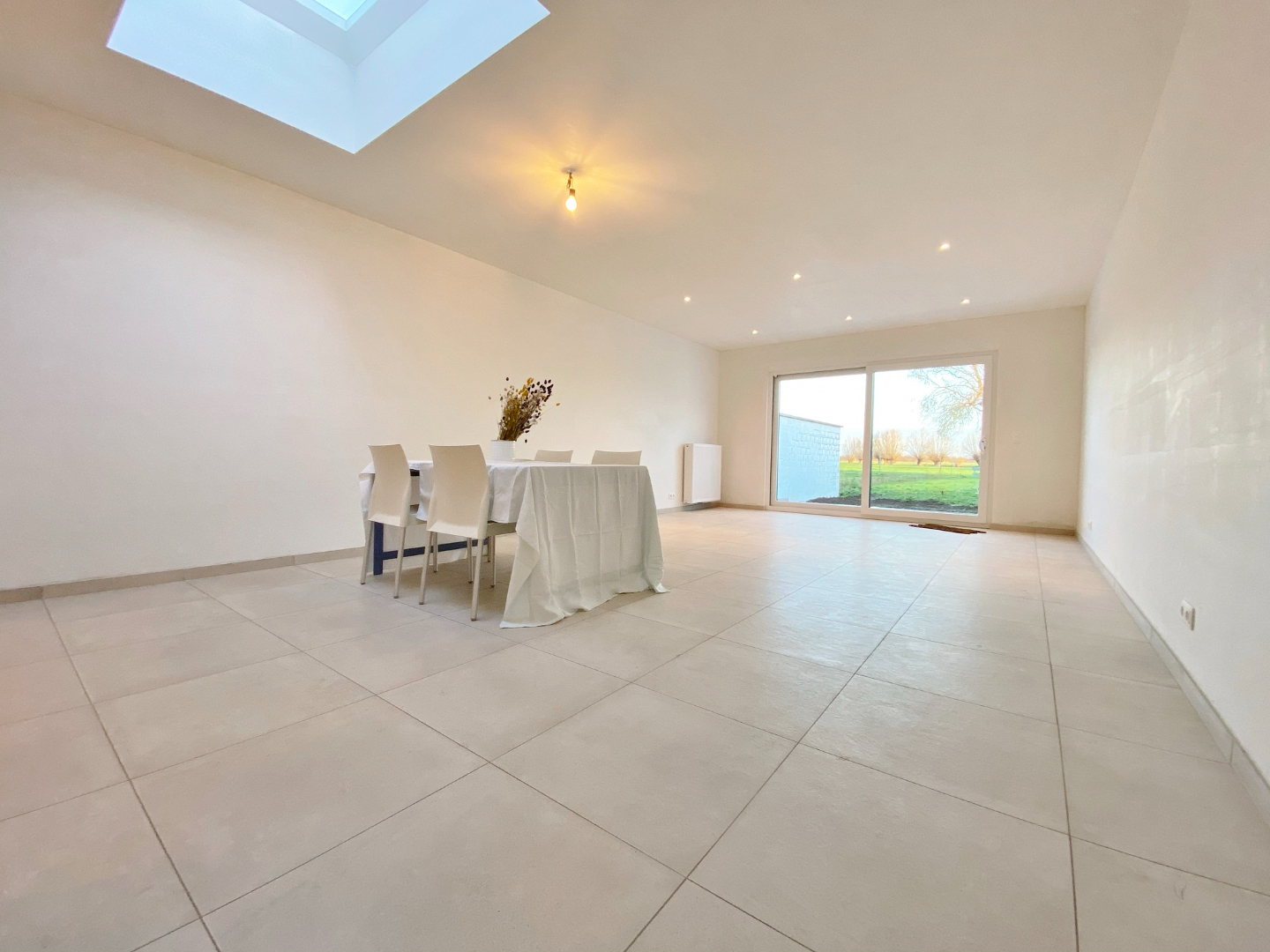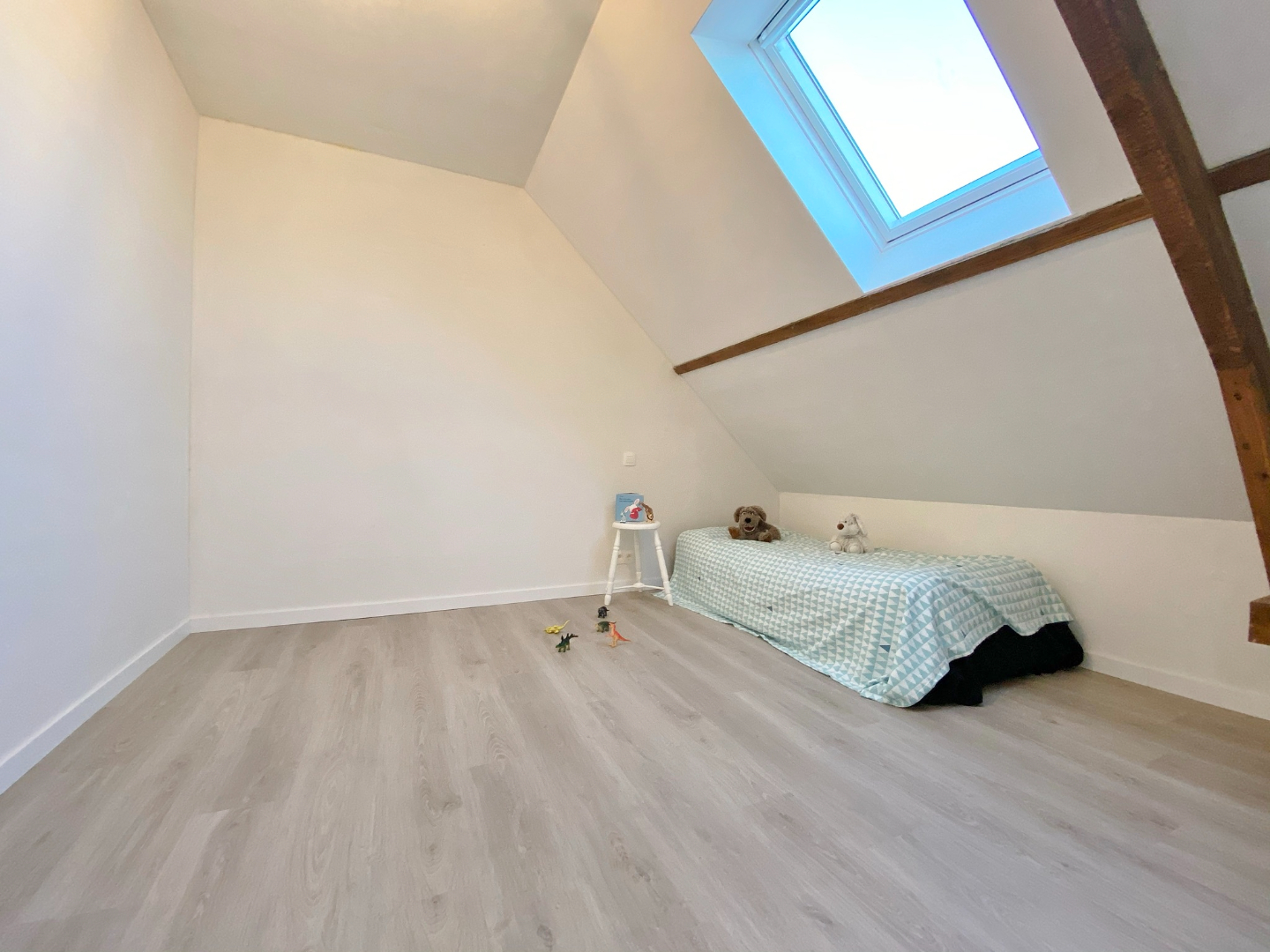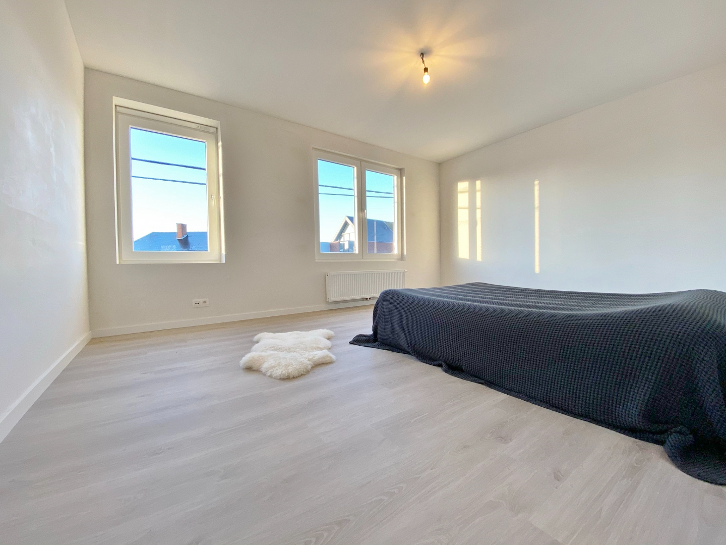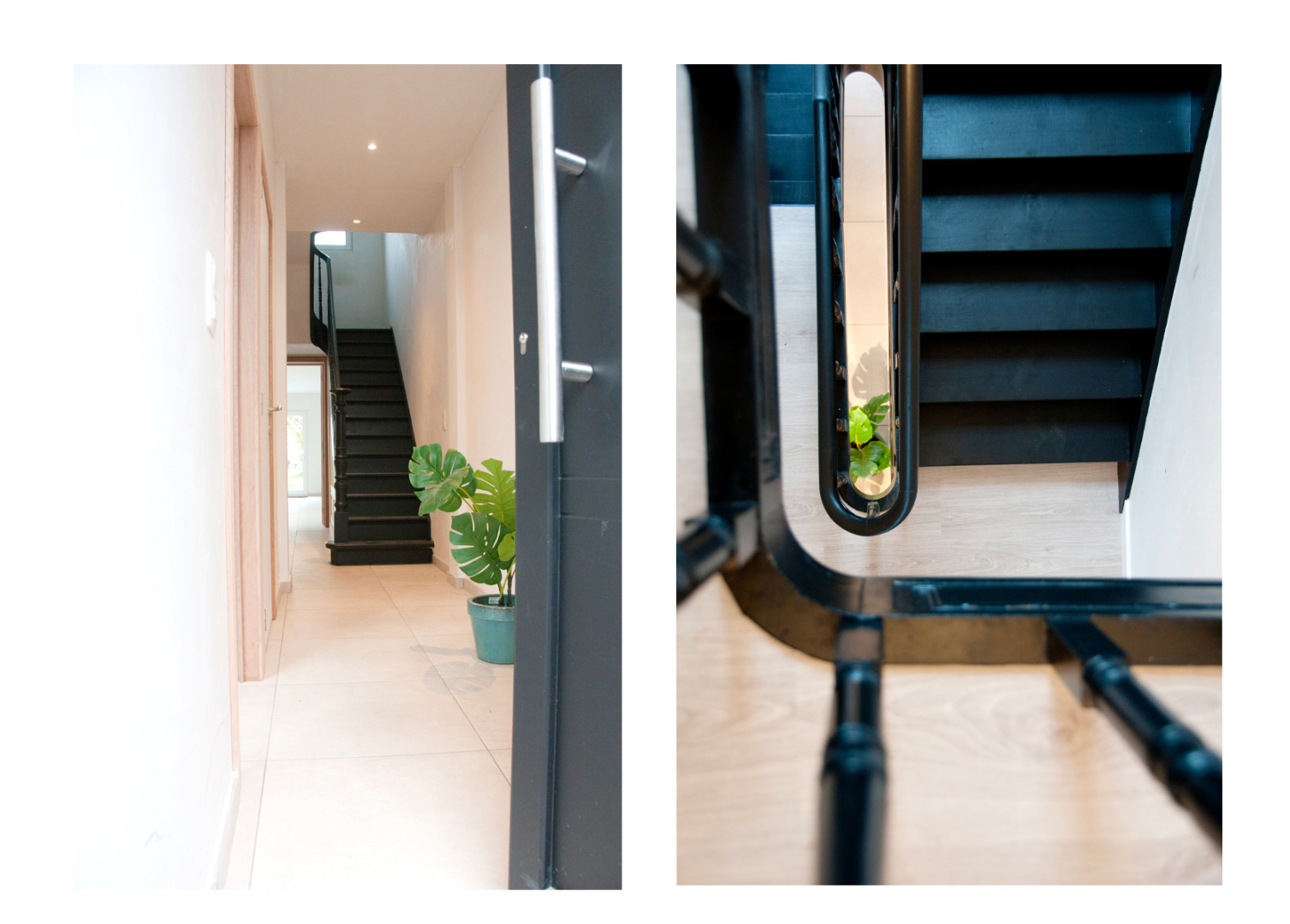 Deze woning werd volledig gerenoveerd en omvat een gelijkvloerse verdieping met inkom, bergruimte/bureau, toilet, ruime lichtrijke leefruimte met open volledig ingerichte keuken en zicht over de tuin. Op het eerste verdiep zijn een ruime slaapkamer en badkamer met inloopdouche, ligbad, dubbel lavabomeubel en toilet. Op het tweede verdiep zijn 2 slaapkamers.