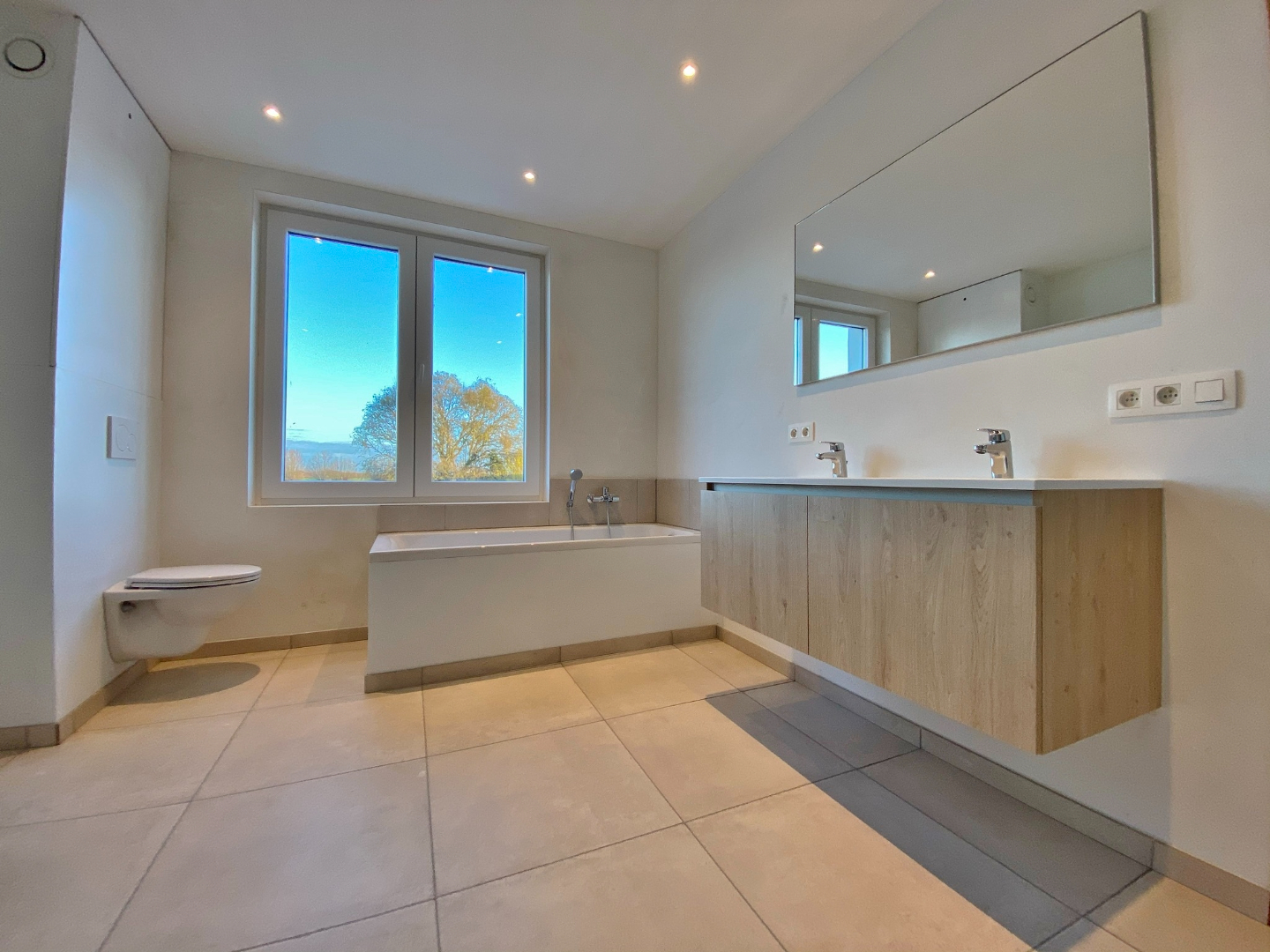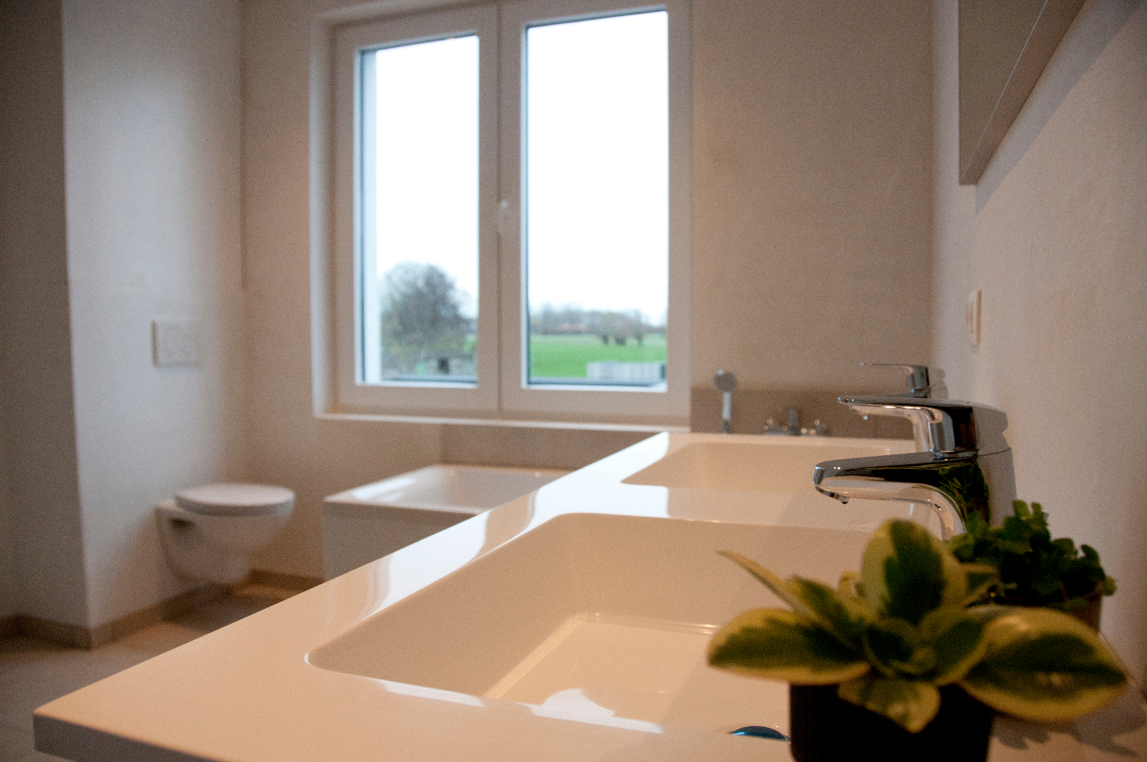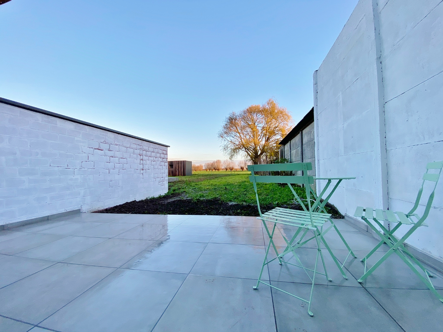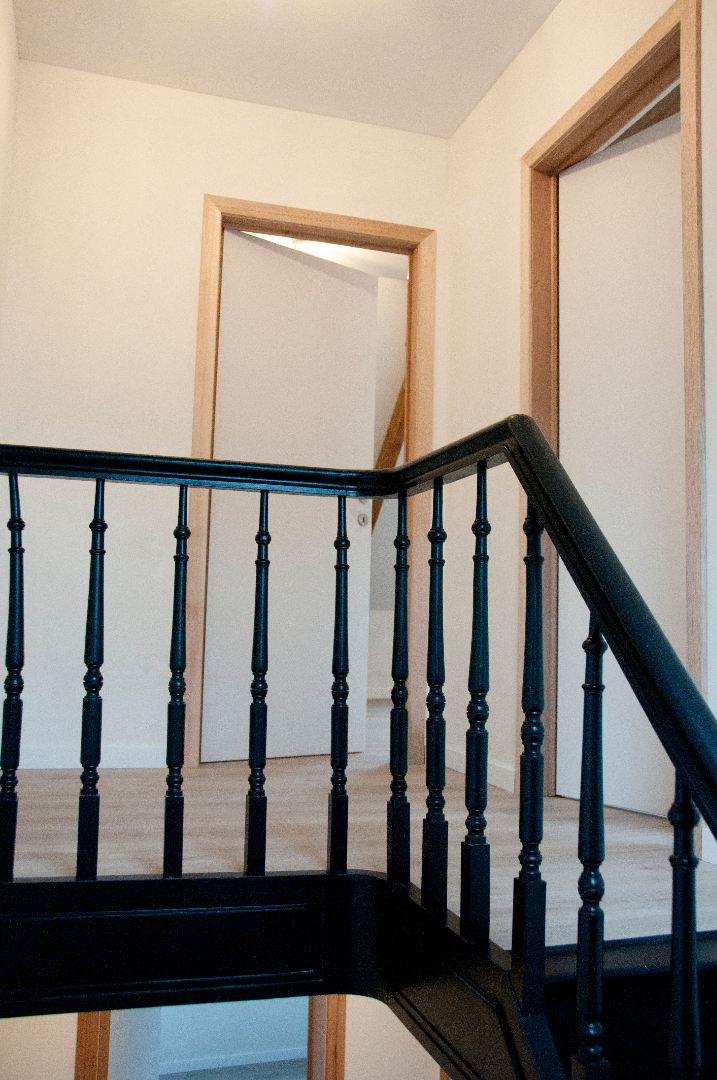 Deze woning werd volledig gerenoveerd en omvat een gelijkvloerse verdieping met inkom, bergruimte/bureau, toilet, ruime lichtrijke leefruimte met open volledig ingerichte keuken en zicht over de tuin. Op het eerste verdiep zijn een ruime slaapkamer en badkamer met inloopdouche, ligbad, dubbel lavabomeubel en toilet. Op het tweede verdiep zijn 2 slaapkamers.