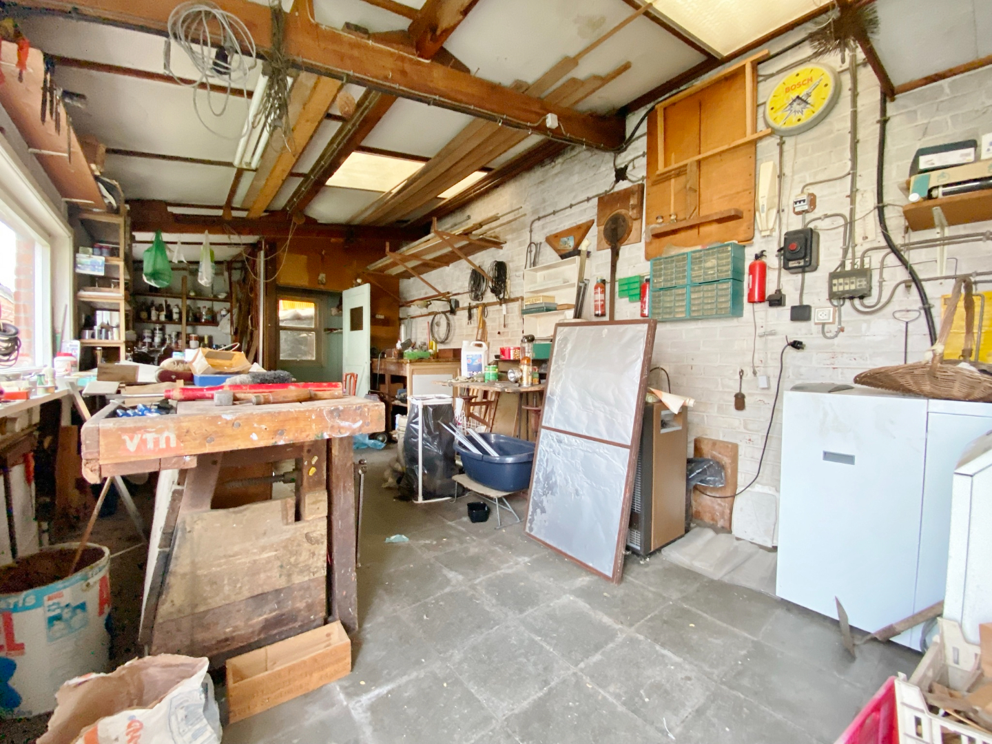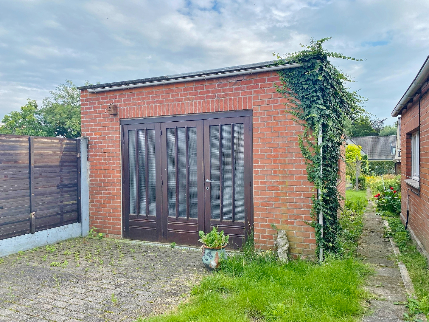 Buiten is een zuid gerichte tuin waarin zich een garage en een atelier bevinden.