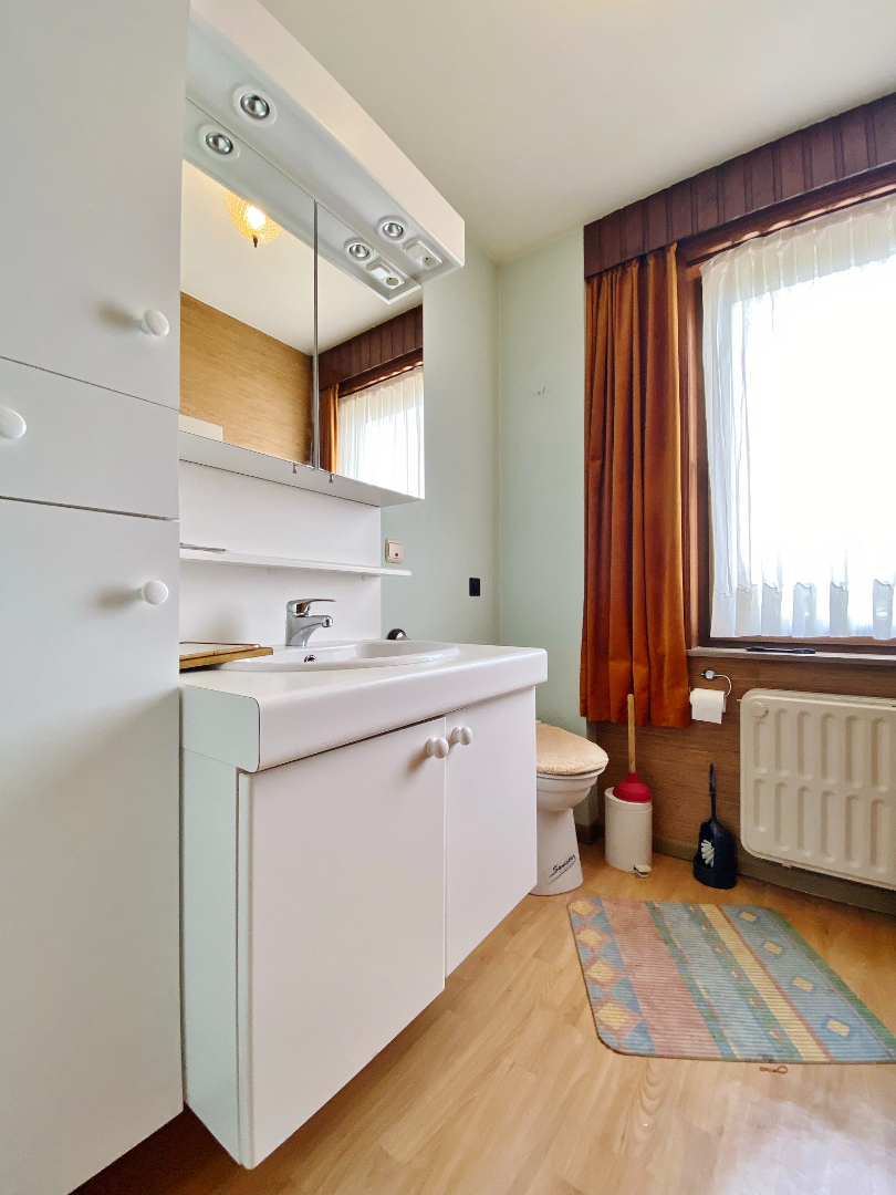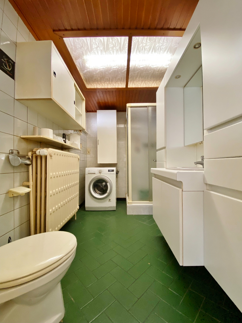 Deze woning bestaat uit een gelijkvloerse verdieping met inkom, lichtrijke leefruimte, ingerichte keuken en badkamer. Op de eerste verdieping zijn er twee slaapkamers, bergruimte en een badkamer met lavabomeubel en toilet. Op de tweede verdieping is er een zolder met mogelijkheid tot extra slaapkamer(s). Er is eveneens een droge kelder.