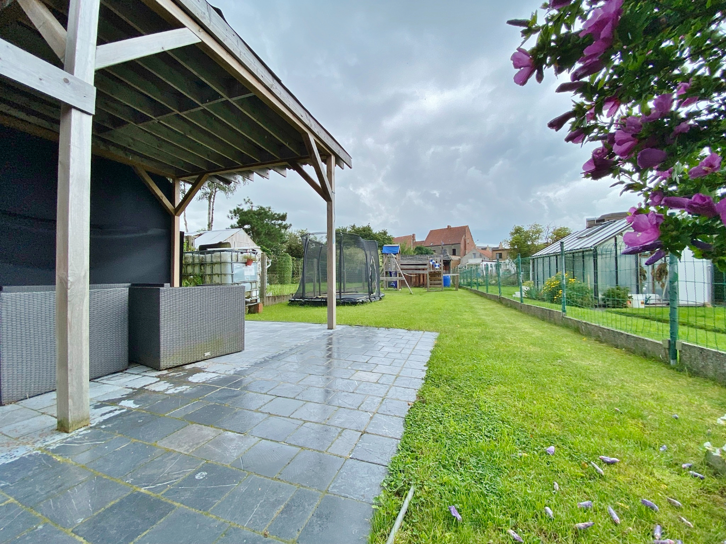 Deze woning is rustig doch centraal gelegen in Ieper en omvat een gelijkvloerse verdieping met inkom, ruime lichtrijke leefruimte met open volledig ingerichte keuken, veranda, slaapkamer/speelkamer, badkamer met bad, lavabomeubel en toilet. Het eerste verdiep werd in 2020 volledig vernieuwd en omvat 3 ruime slaapkamers waarvan 1 met ingemaakte kasten en een apart toilet met lavabo. Buiten zijn een oprit naast de woning, ruim terras, garage met sectionale poort, verschillende bergruimtes, overdekt terras en zonnige tuin.