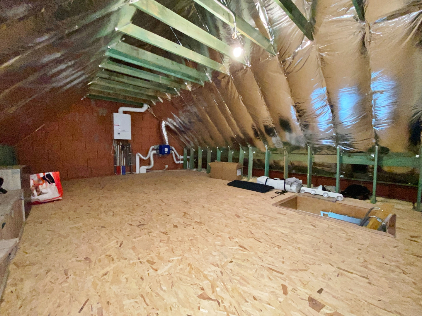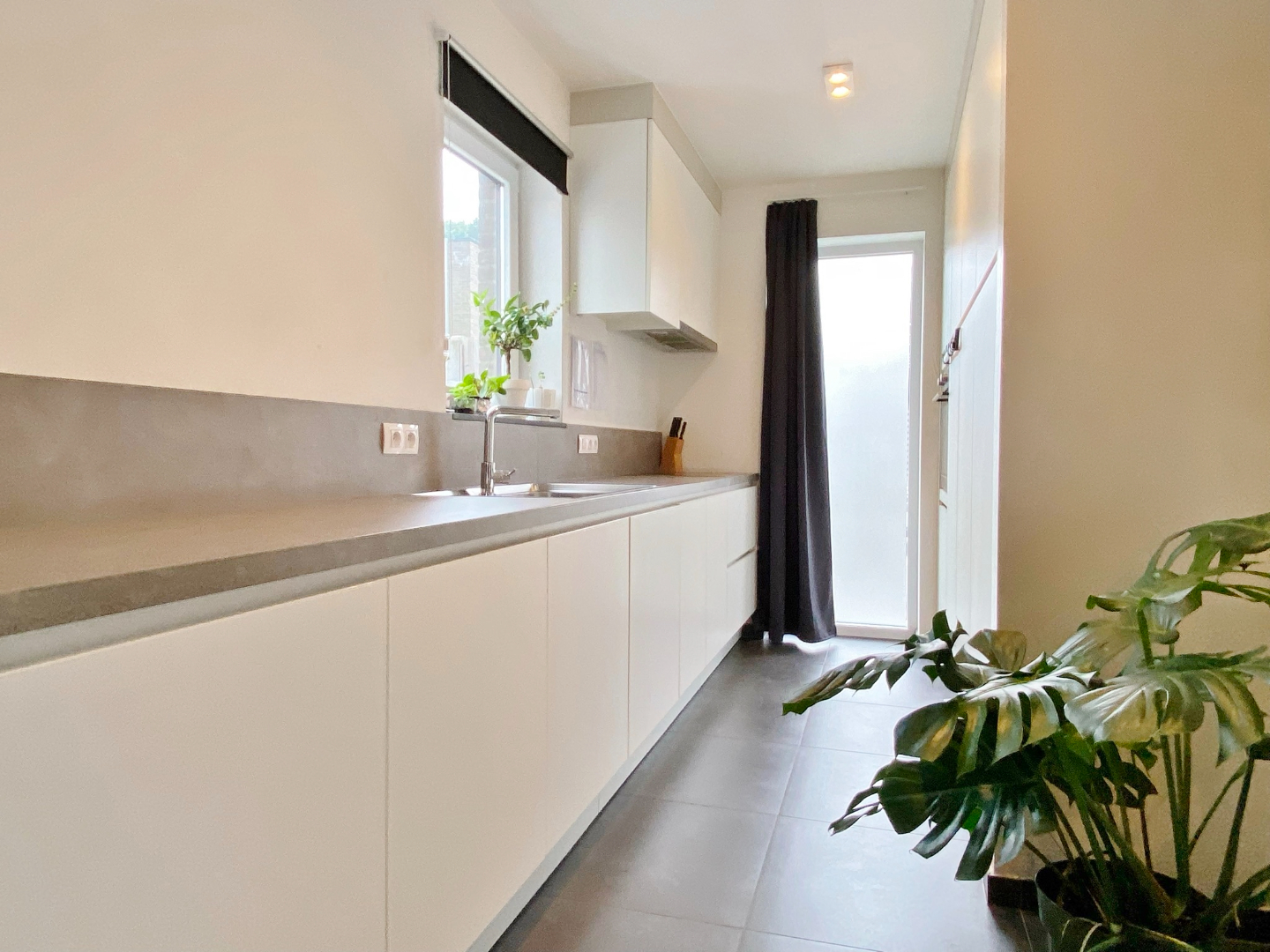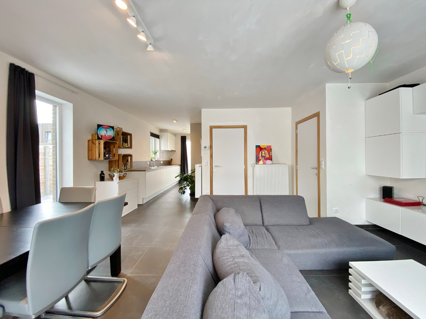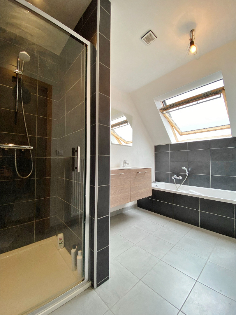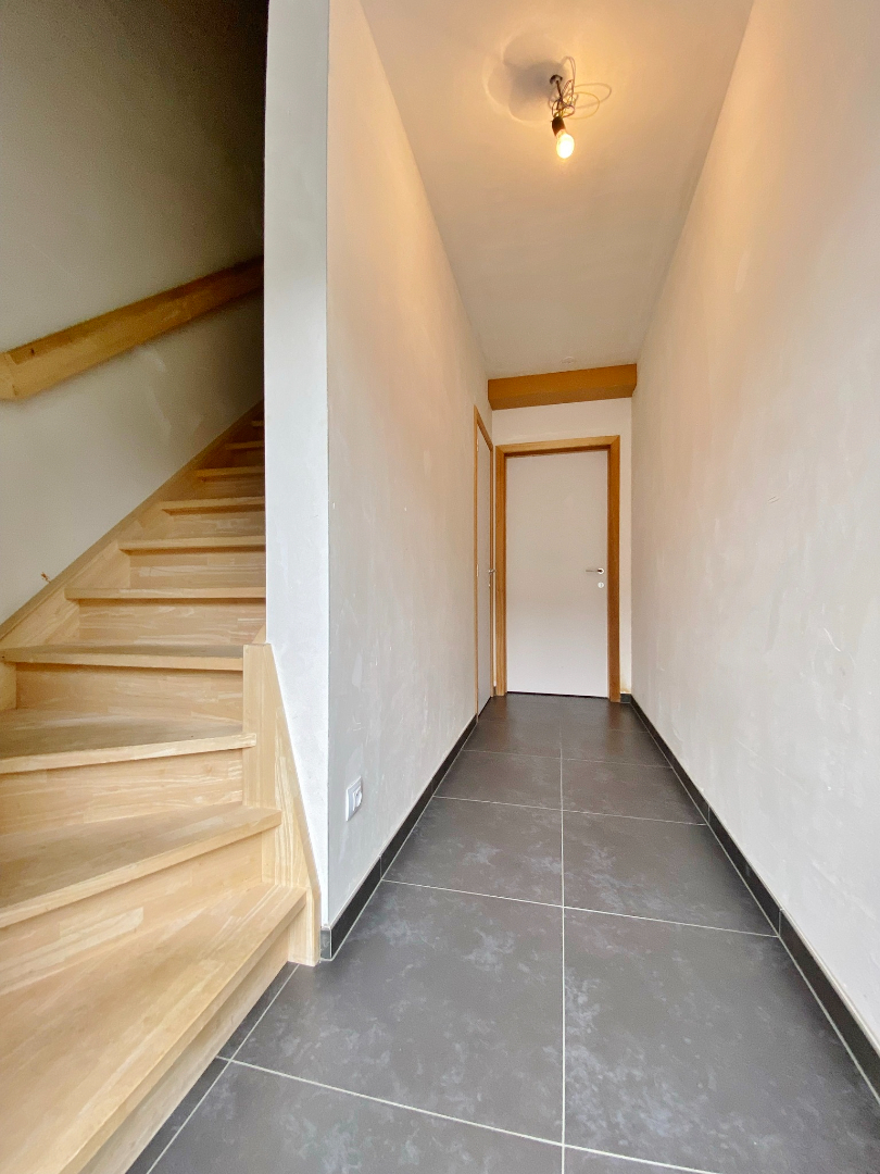 Deze woning werd nieuw gebouwd in 2016 en omvat een gelijkvloerse verdieping met inkom, gastentoilet, ruime lichtrijke leefruimte met eet- en zitplaats en open volledig ingerichte keuken, wasplaats en polyvalente ruimte ( oorspronkelijk de garage kan met plaatsen van poort opnieuw als garage gebruikt worden ) Op het eerste verdiep zijn 4 slaapkamers, een badkamer met ligbad, douche en lavabomeubel, twee bergruimtes waarvan 1 met aansluiting voor toilet. Er is tevens een zolderverdiep.