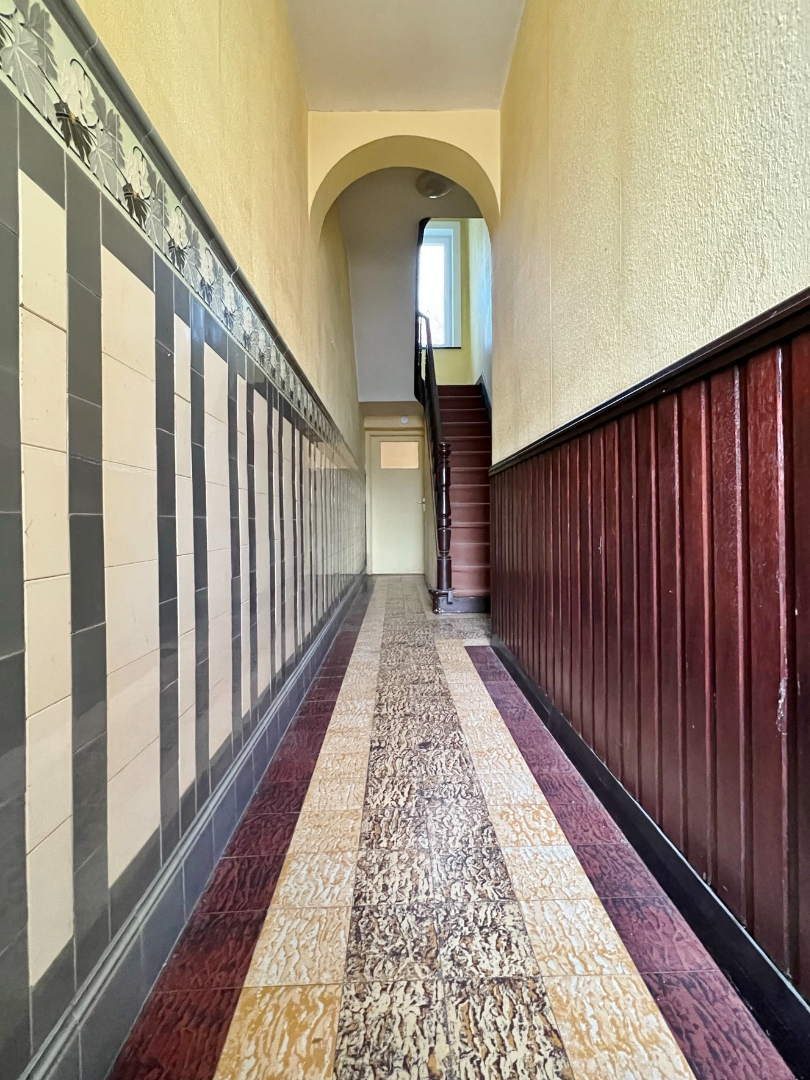 Deze eigendom omvat een inkom, apart toilet, lichtrijke leefruimte met aansluitend open keuken, badkamer met ligbad en lavabo. Op het eerste en tweede verdiep zijn telkens 2 ruime slaapkamers. Er is tevens een zolder ( voorzien van onderdak ) en een droge kelder. Buiten is een zonnige volledig afgesloten tuin