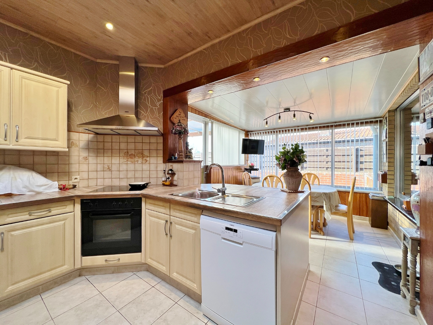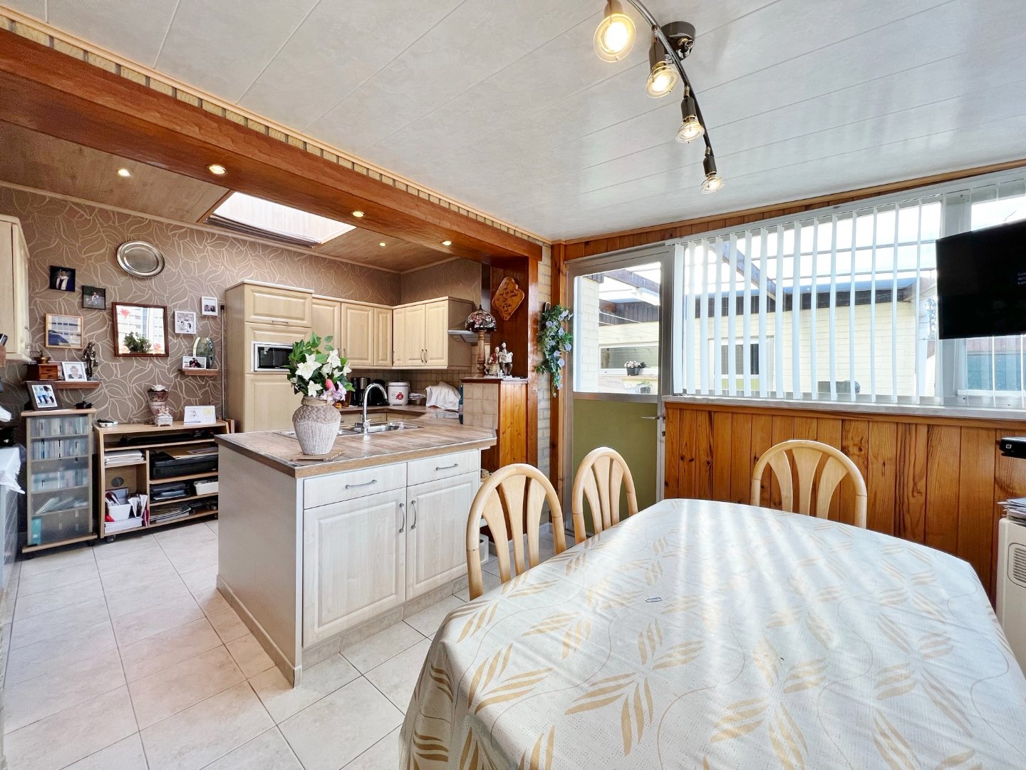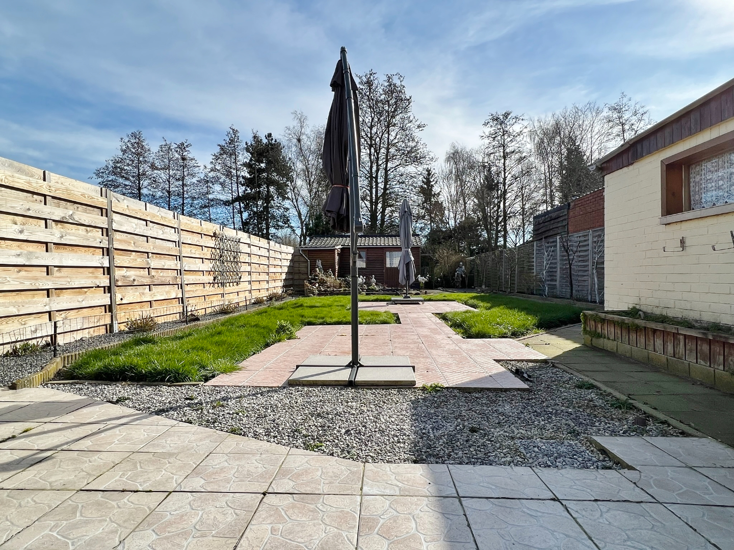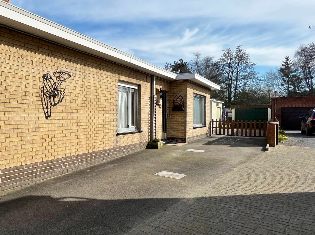 In een rustige doodlopende straat op een boogscheut van het centrum van Ieper ( TOPLIGGING ! ) treffen we deze gelijkvloerse woning met 2 garages en zonnige afgesloten tuin.