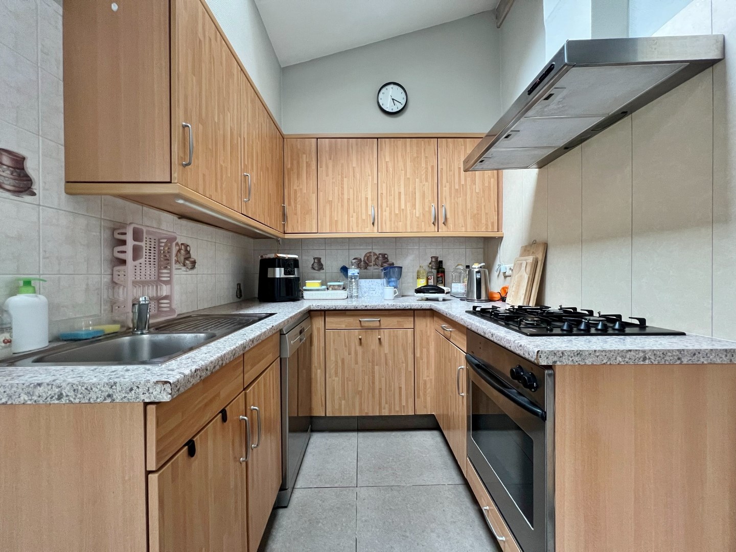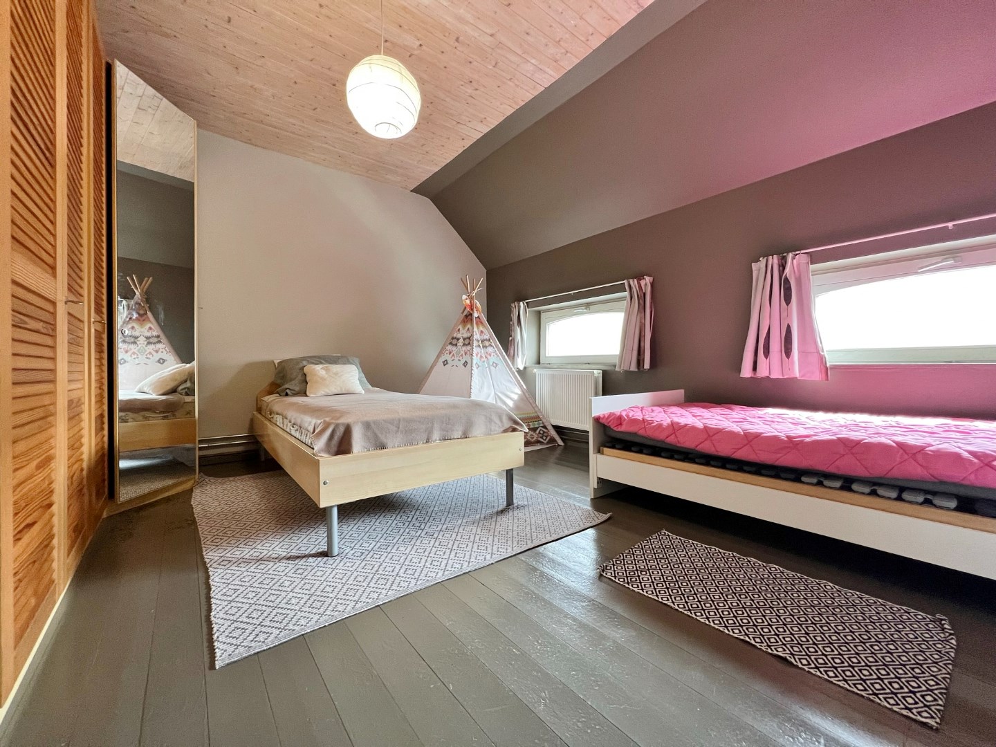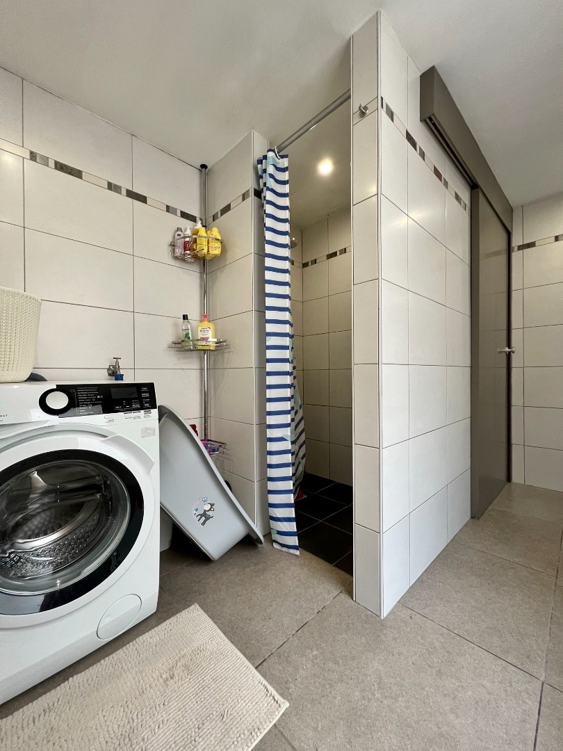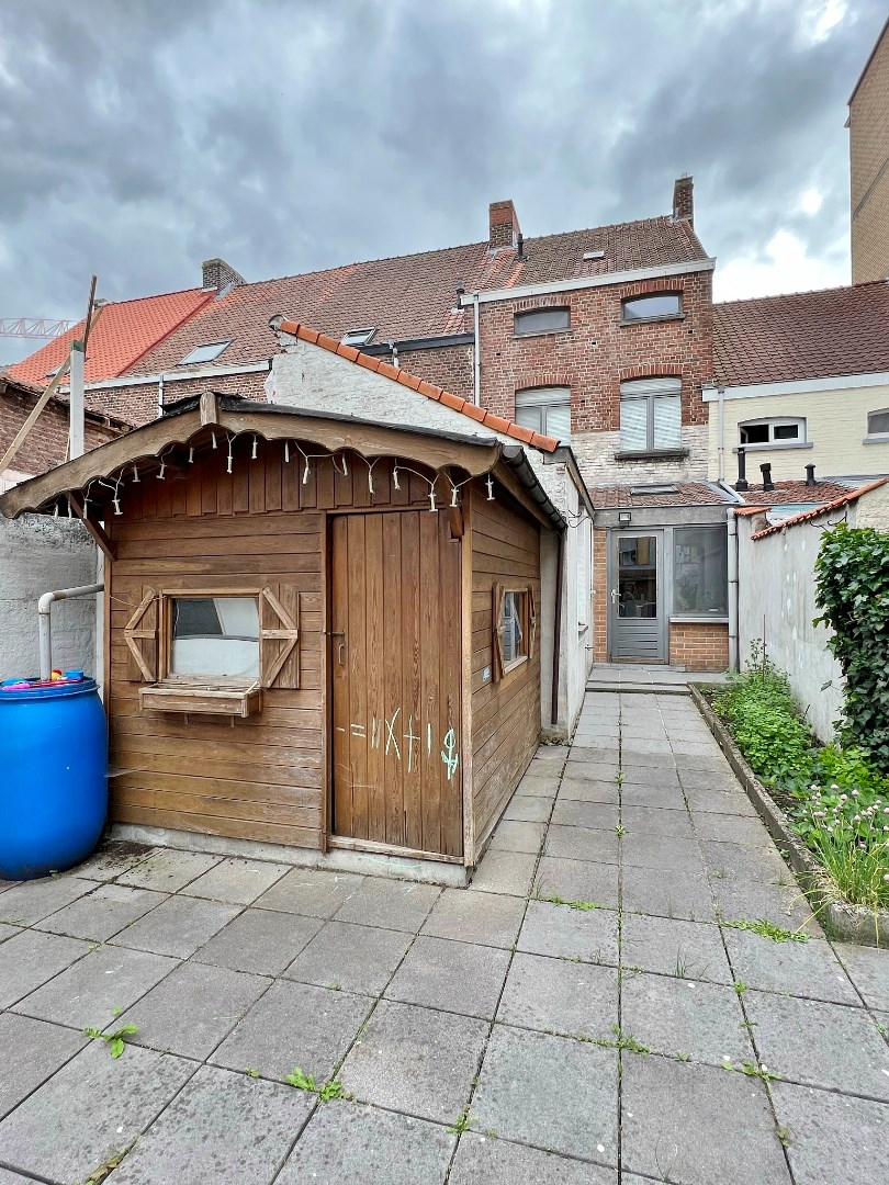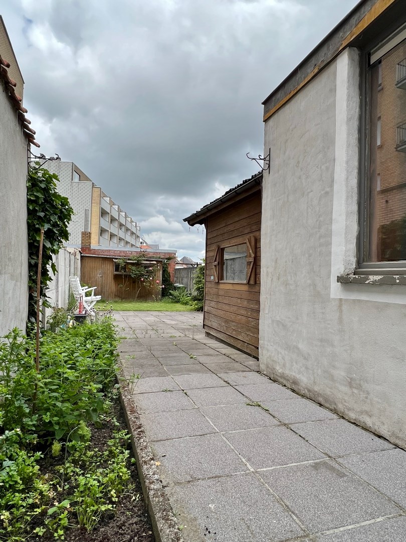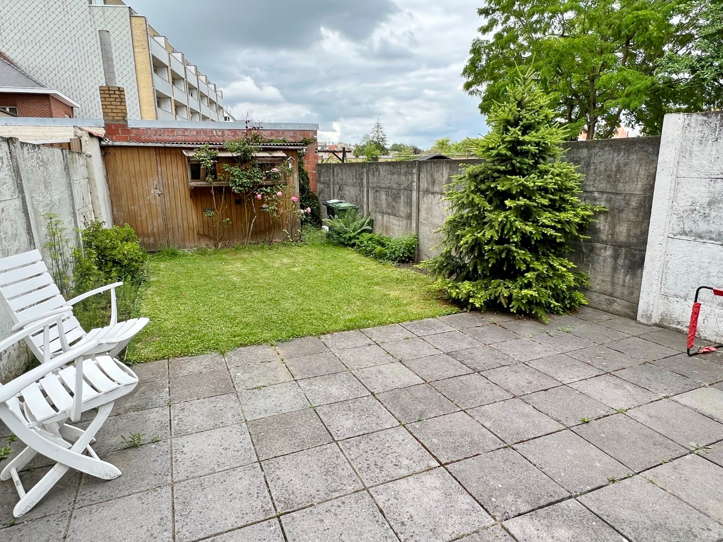 Buiten is een volledig afgesloten zonnige tuin met buitenberging.