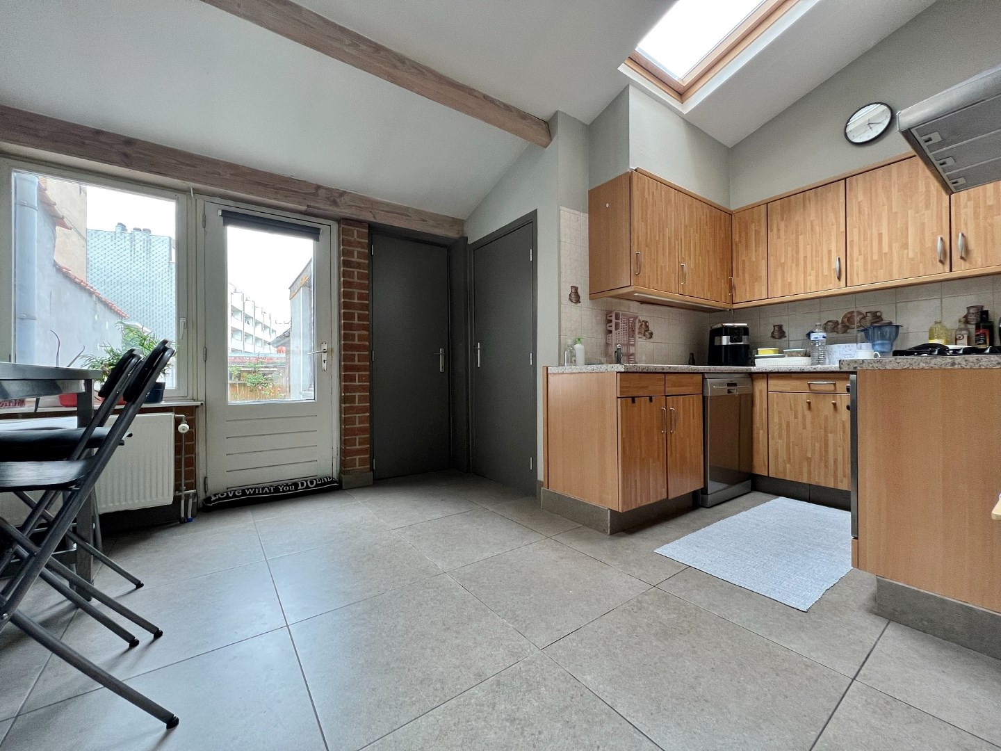 Deze woning is zeer centraal gelegen en omvat een gelijkvloerse verdieping met inkom, bergplaats, ruime lichtrijke leefruimte met volledig ingerichte open keuken, bergplaats, badkamer met douche, lavabo, aansluiting voor wasmachine en droogkast en apart toilet. Op het eerste verdiep zijn 2 ruime slaapkamers. Op het tweede verdiep zijn tevens 2 ruime slaapkamers en een bergplaats.