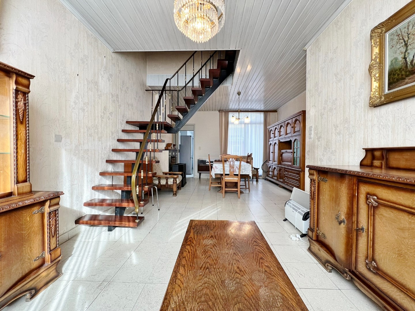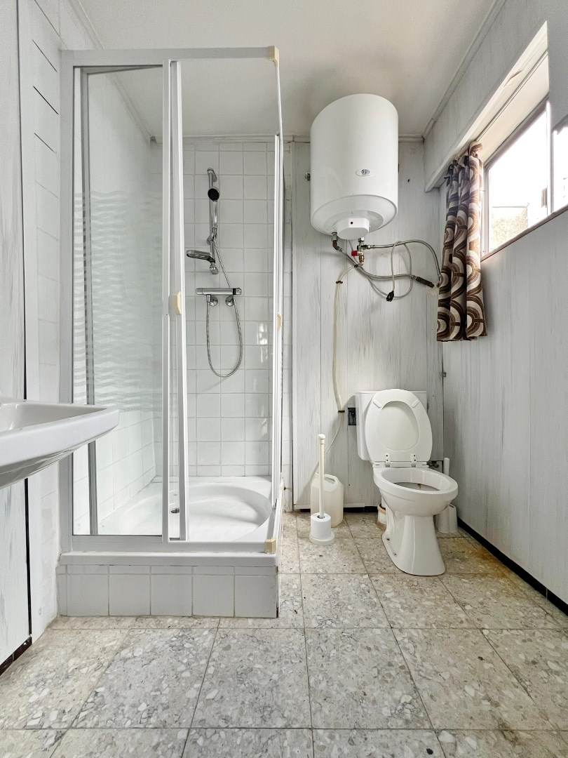 De indeling van de woning gaat als volgt. Via de inkomhal komen we terecht in de ruime lichtrijke leefruimte met eet- en zitplaats. Aansluitend aan de leefruimte vinden we een ingerichte keuken. Van hieruit hebben we toegang tot de gezellige zonnige koer met buitenberging. Terug in de keuken komen we tot bij de badkamer voorzien van douche, lavabomeubel en toilet.