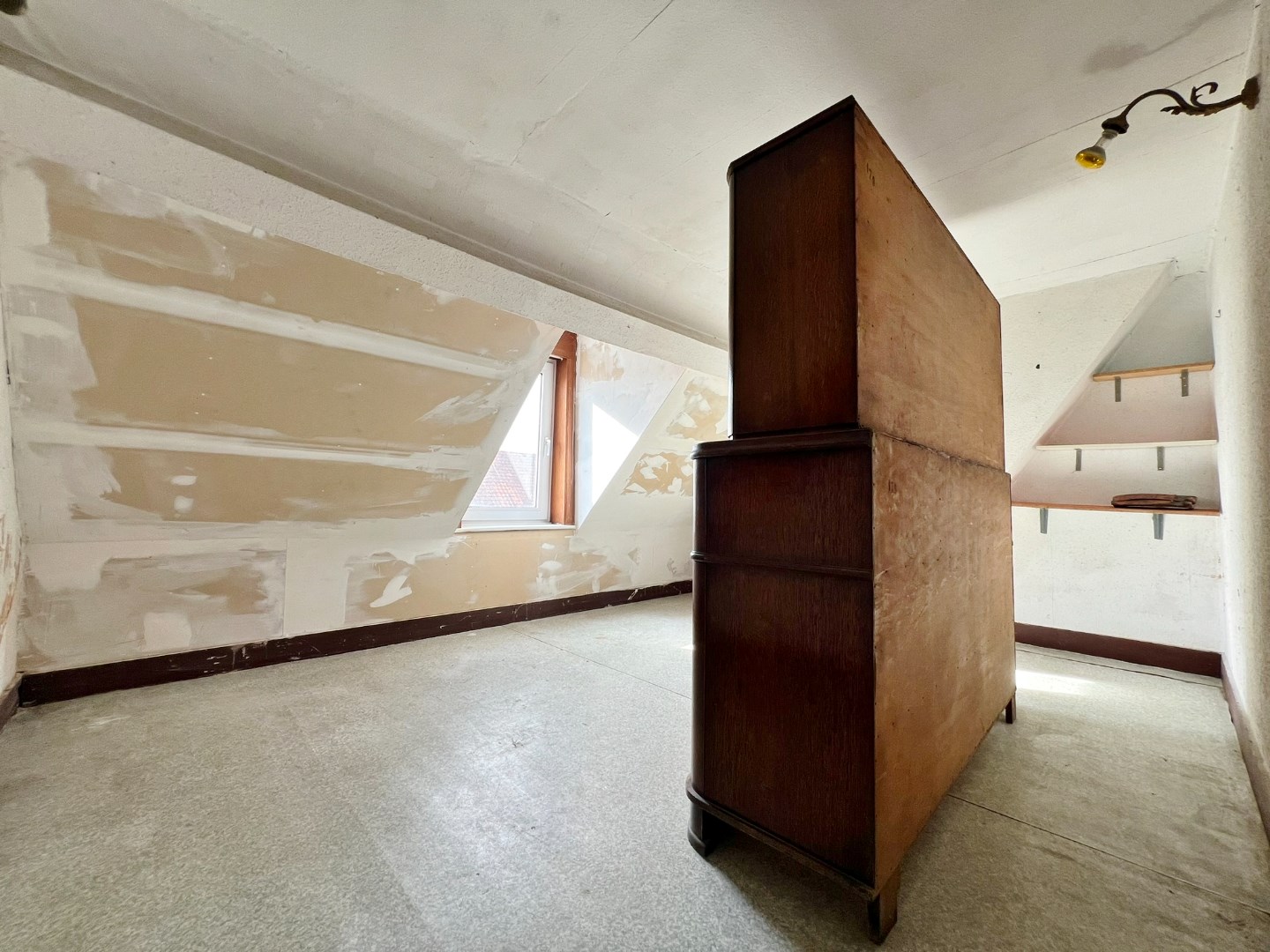 Op de eerste verdieping treffen we twee ruime slaapkamers. Op het tweede verdiep (bereikbaar via vaste trap) zijn een 3de slaapkamer en een open zolderruime met mogelijkheid een 4de slaapkamer.