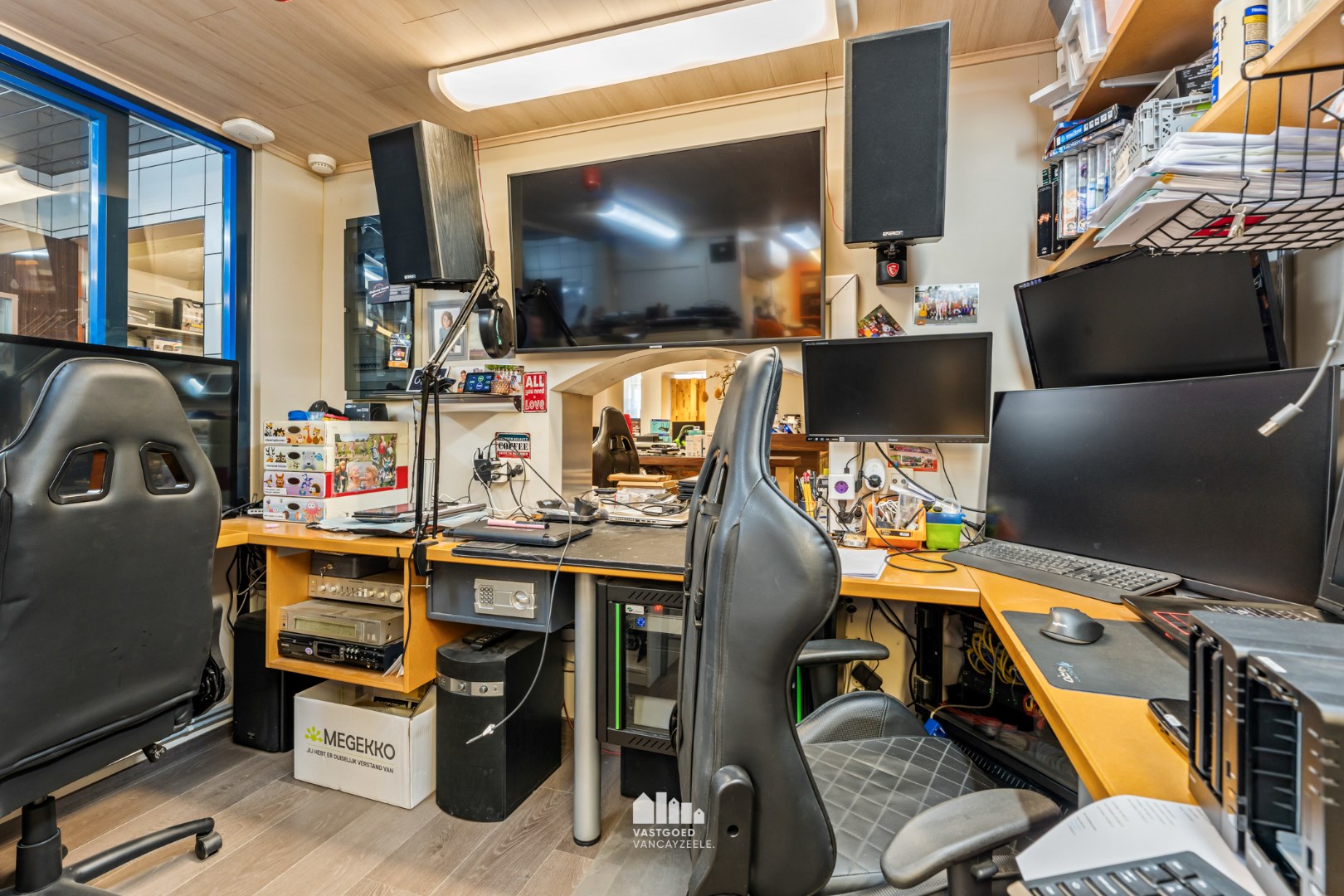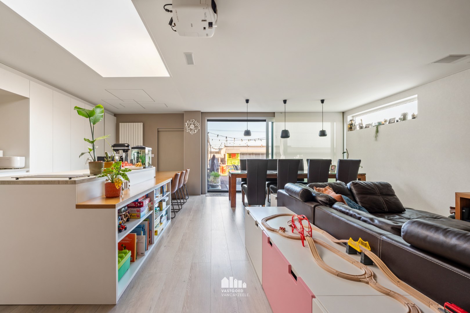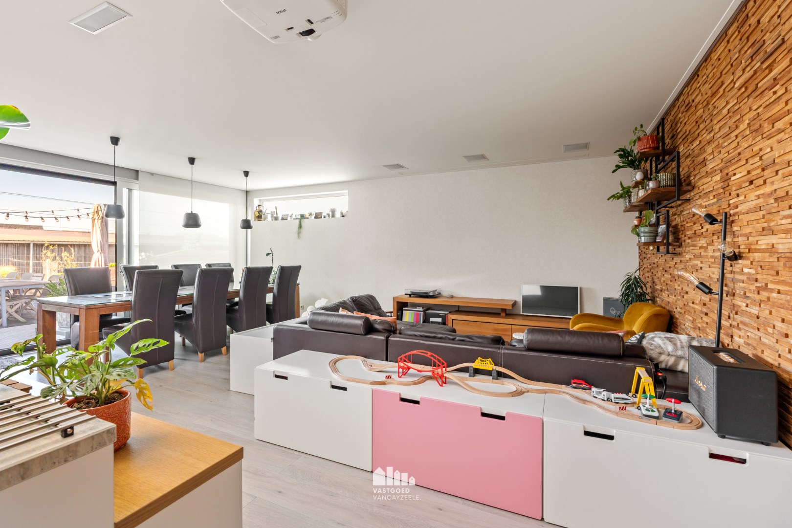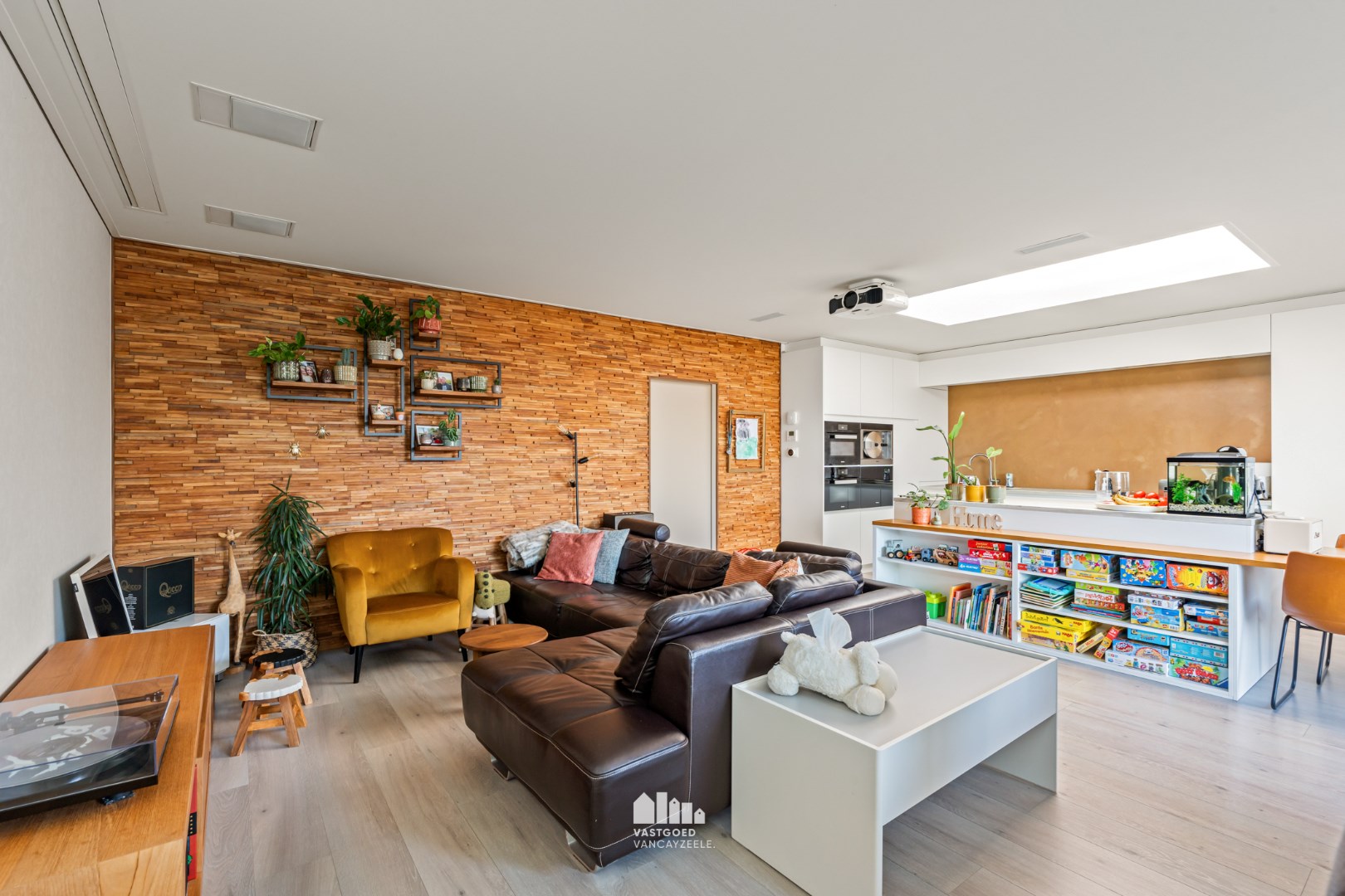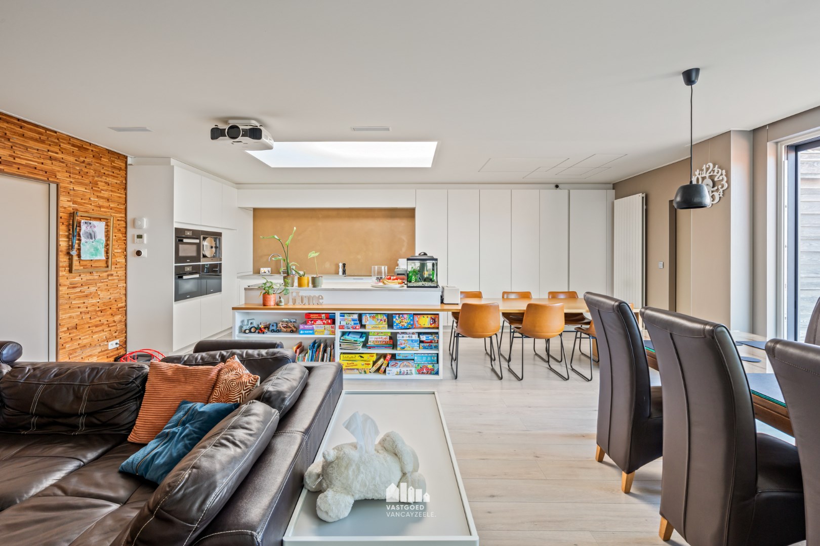 ingebouwde boxen, inbouwarmaturen, projectie tv mogelijk.
