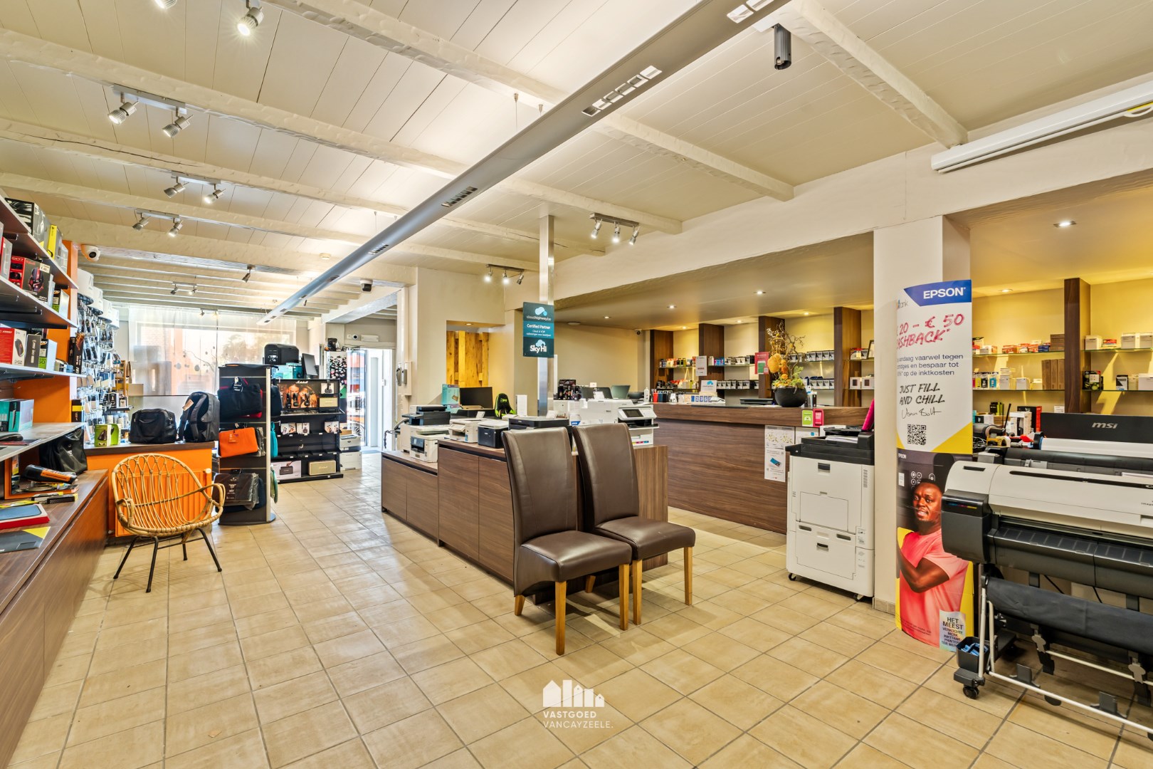Deze eigendom is momenteel opgedeeld als volgt: een gelijkvloerse verdieping met inkom, grote winkelruimte, atelier en verschillende bergruimtes, toilet en koer. Het eerste verdiep is toegankelijk via twee trappenhallen en omvat een ruime en lichtrijke leefruimte met open volledig ingerichte keuken ( alle toestellen van MIELE: inductie kookplaat, dampkap, oven, microgolf, stoomoven, warmhoud lades, vaatwas ) aansluitend is een gezellig zonnig terras, badkamer voorzien van ligbad, douche en dubbel lavabomeubel, wasplaats, apart toilet, 2 slaapkamers beide voorzien van ingemaakte kasten en bureau. Op het tweede verdiep is een zeer ruimte slaapkamer met dressingruimte voorzien van ingemaakte kasten.
