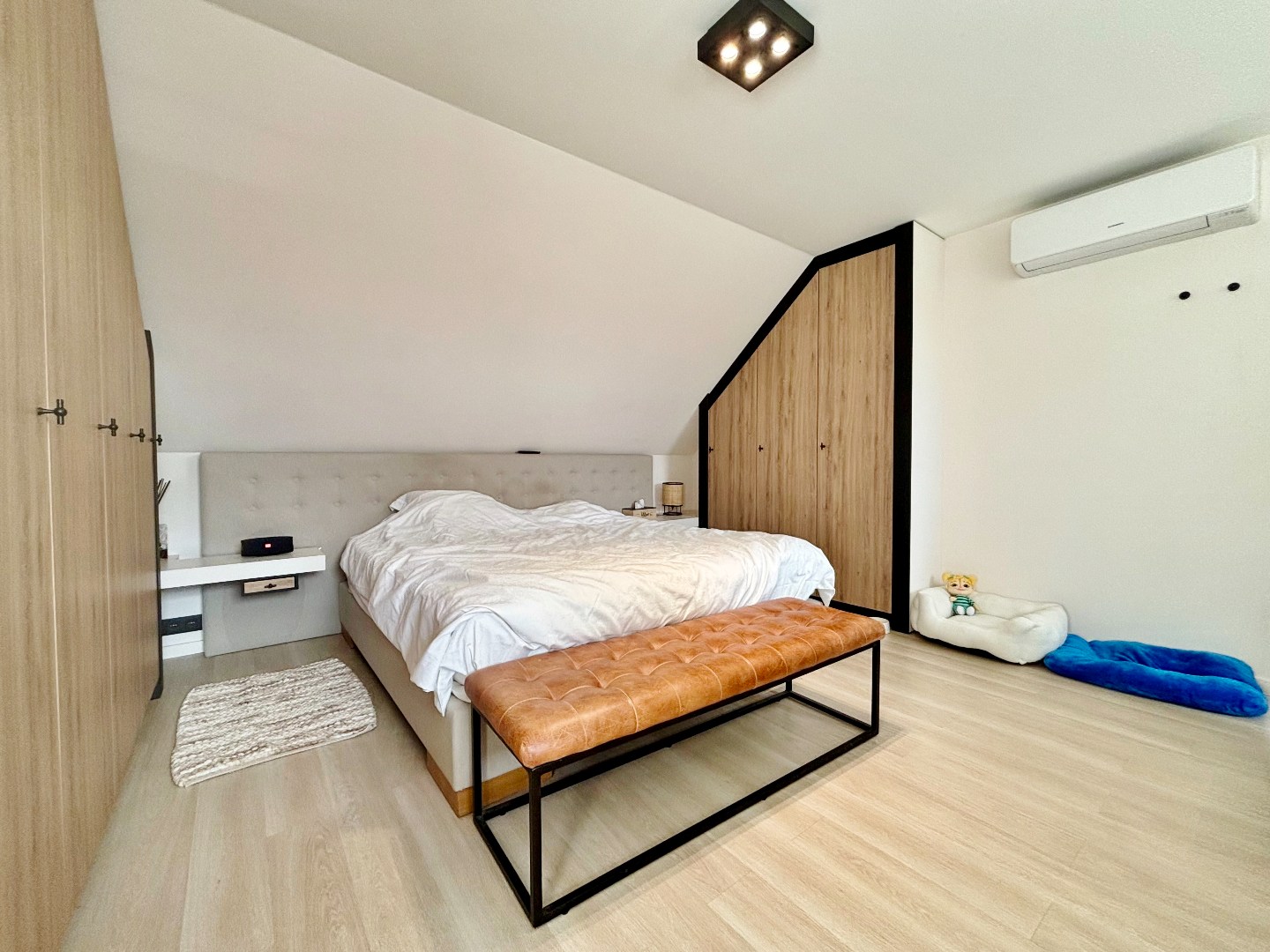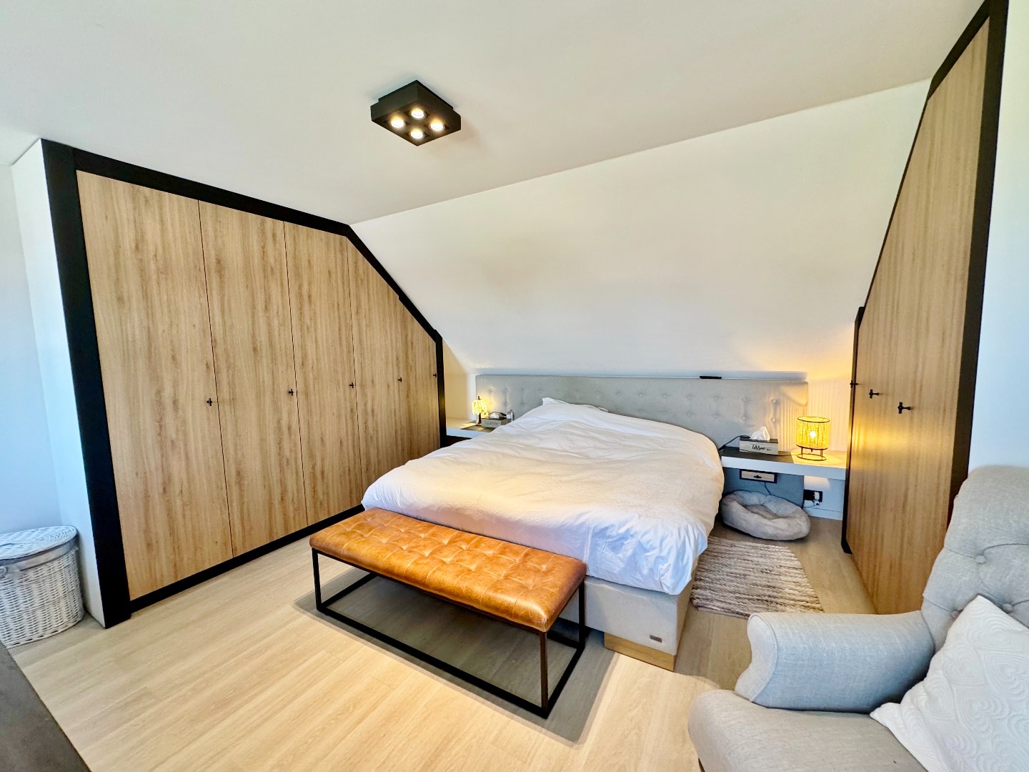 De masterbedroom is voorzien van ingemaakte kasten en een extra toilet.