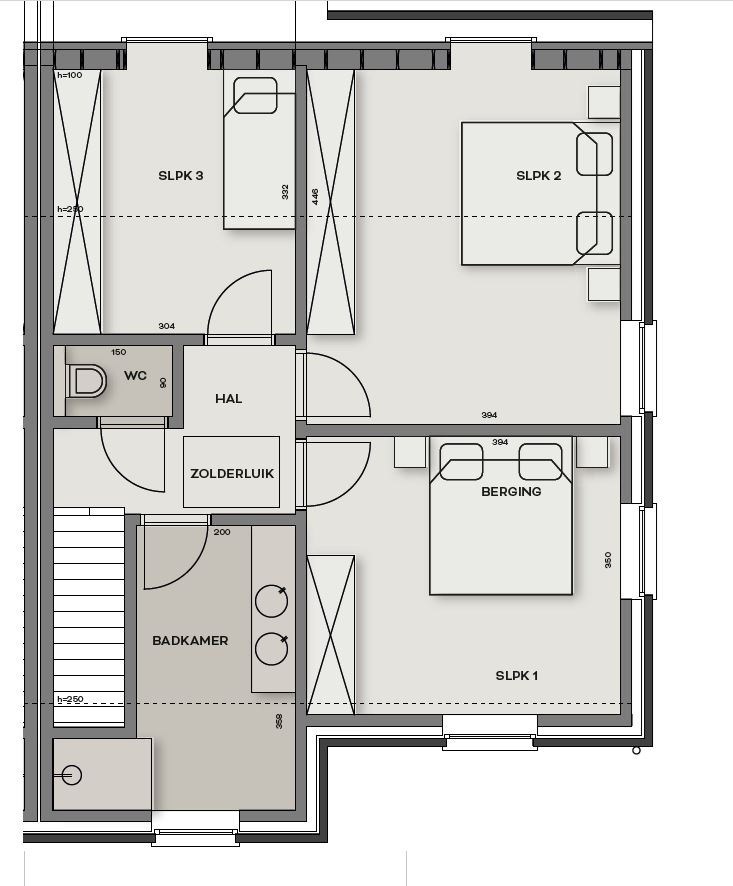 Op de eerste verdieping bevinden zich drie slaapkamers, een badkamer met lavabomeubel, douche en ligbad, evenals een apart tweede toilet. Via een zolderluik is er bovendien toegang tot een extra zolderruimte, ideaal als bijkomende bergruimte.