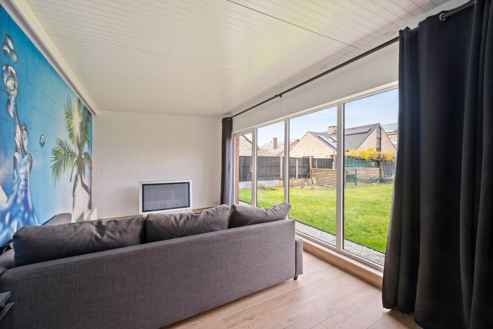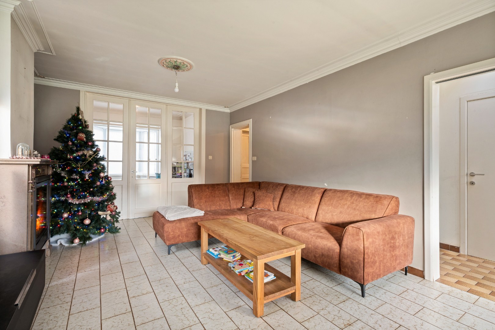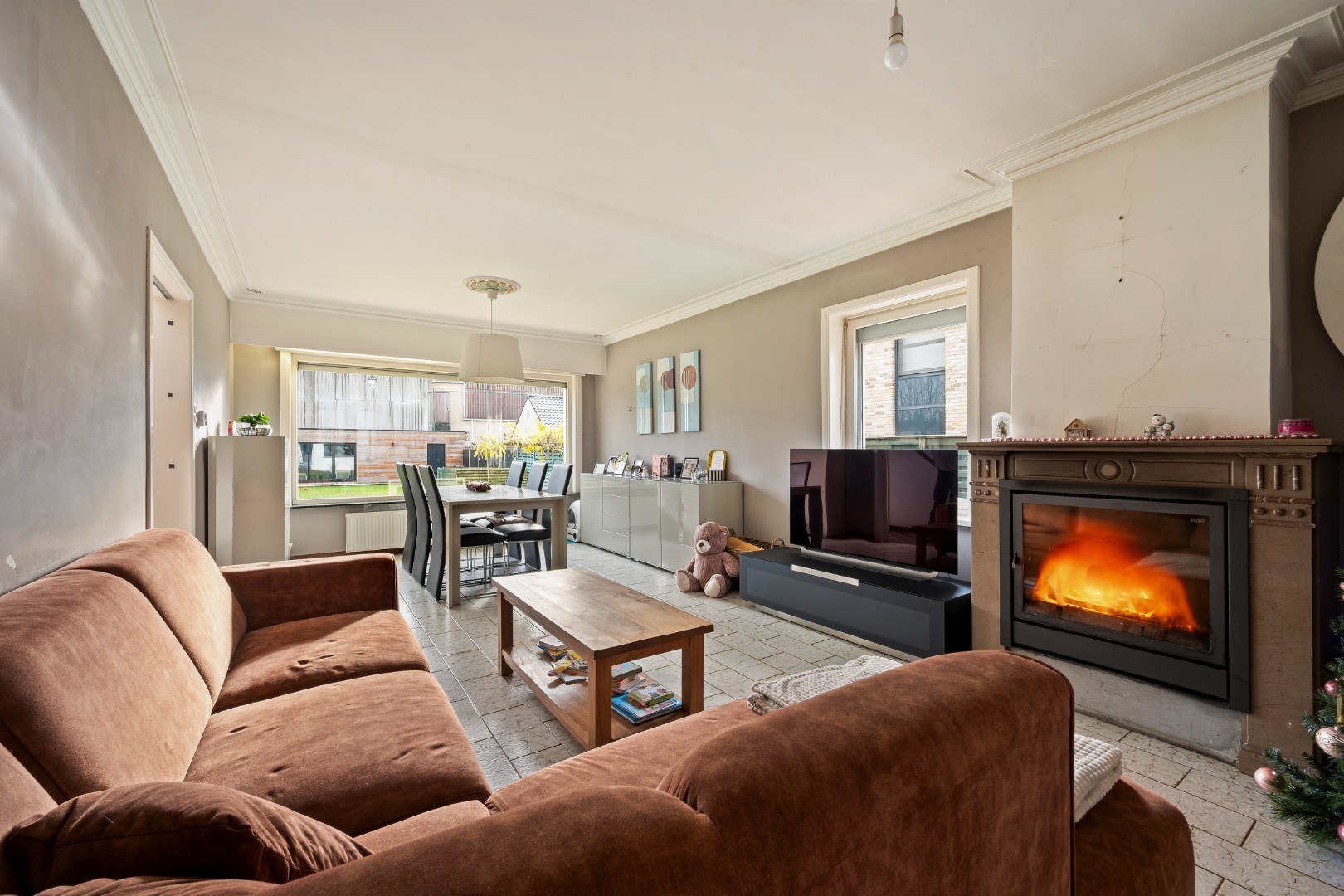 Bij het binnenkomen word je verwelkomd in een gezellige inkomhal die leidt naar de leefruimtes. De woning beschikt over een lichtrijke leefruimte met aansluitende eetkamer, een praktische keuken en een aparte speelkamer of bureau, ideaal voor wie graag van thuis werkt of voor gezinnen die extra ruimte kunnen gebruiken. Verder vind je op het gelijkvloers een badkamer met douche, een apart toilet en een ruime garage .