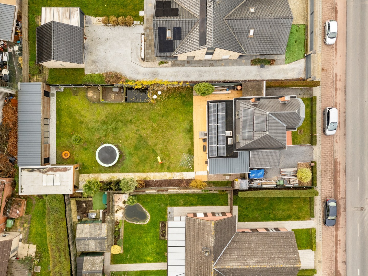 Buiten is het heerlijk vertoeven in de diepe, zonnige tuin die dankzij de zuidgerichte oriëntatie de hele dag door baadt in het licht. Achteraan bevindt zich een gezellig overdekt terras en een mancave of chillruimte met een afzonderlijk toilet, perfect voor ontspanning of hobby’s. Daarnaast is er ook een praktische tuinberging aanwezig.