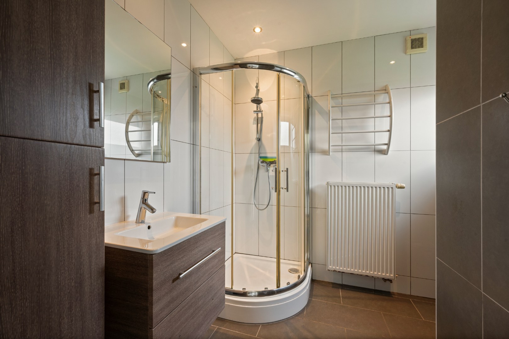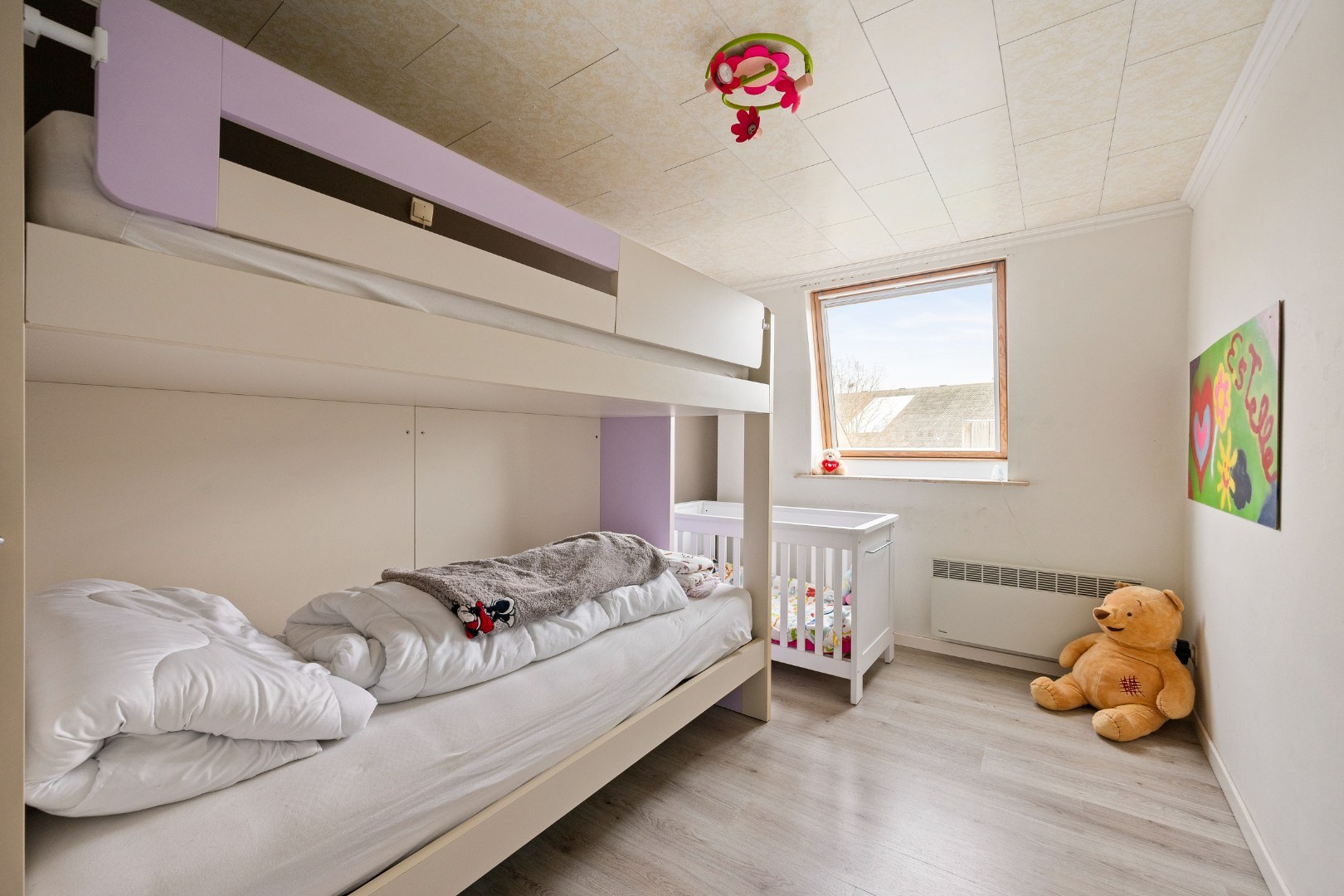 Op de bovenverdieping bevinden zich drie comfortabele slaapkamers en een extra apart toilet. De grote zolder biedt bovendien nog heel wat uitbreidingsmogelijkheden of kan dienen als extra opslagruimte. Een grote troef is dat de woning volledig onderkelderd is, waardoor je nooit bergruimte tekortkomt.