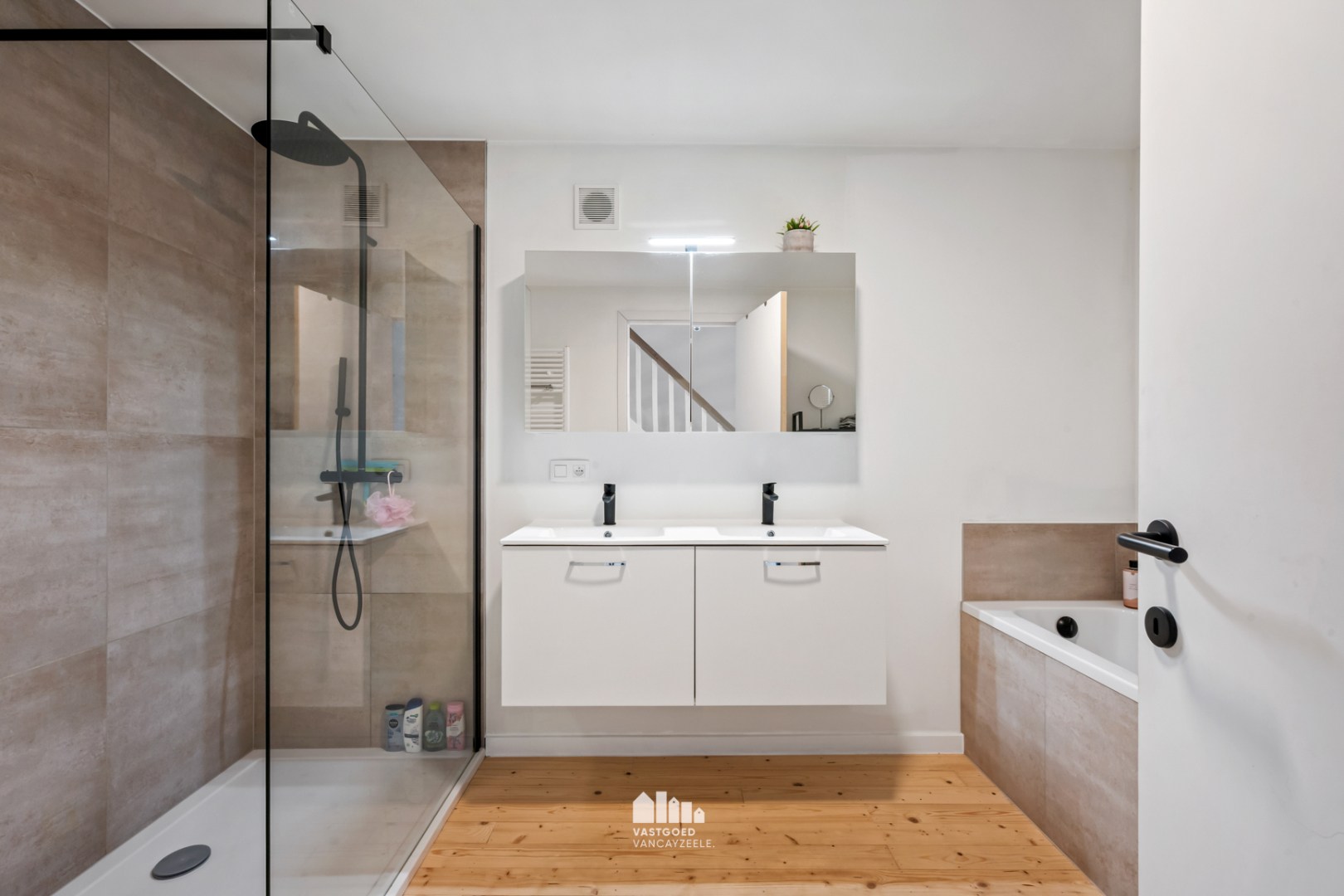 Op de eerste verdieping bevinden zich 3 volwaardige slaapkamers en een badkamer uitgerust met ligbad, douche en lavabomeubel.