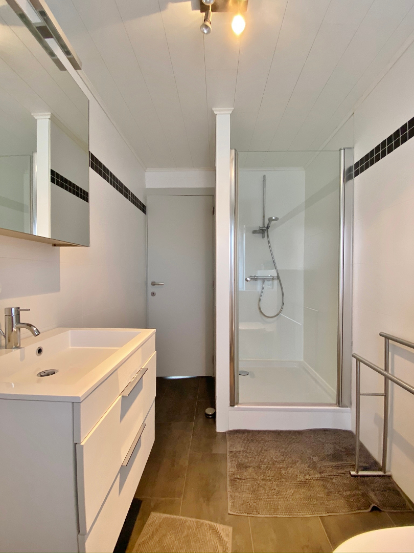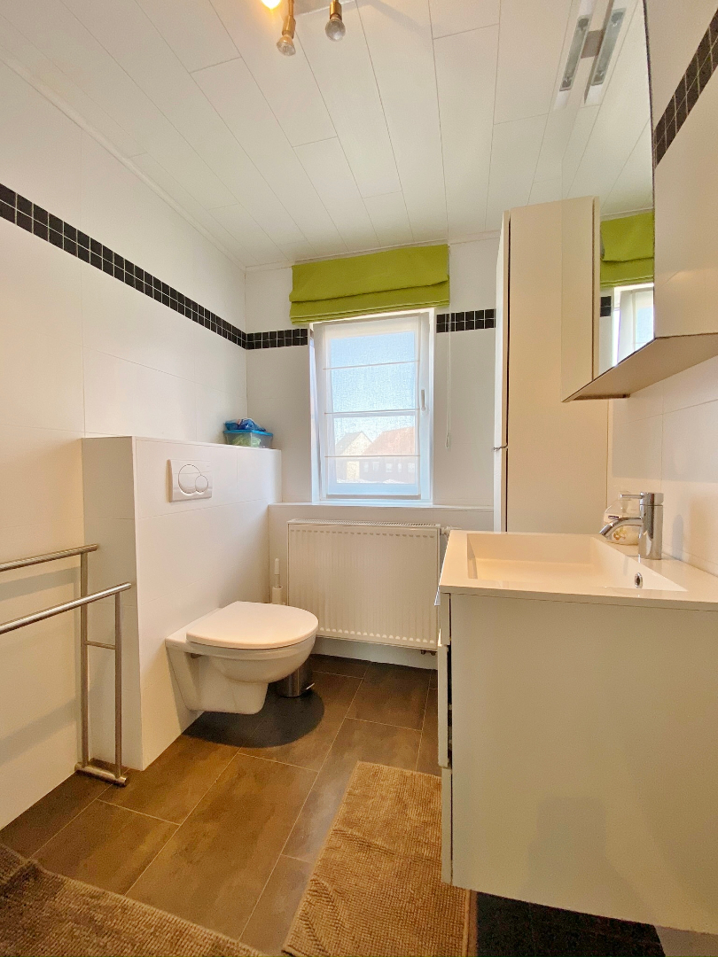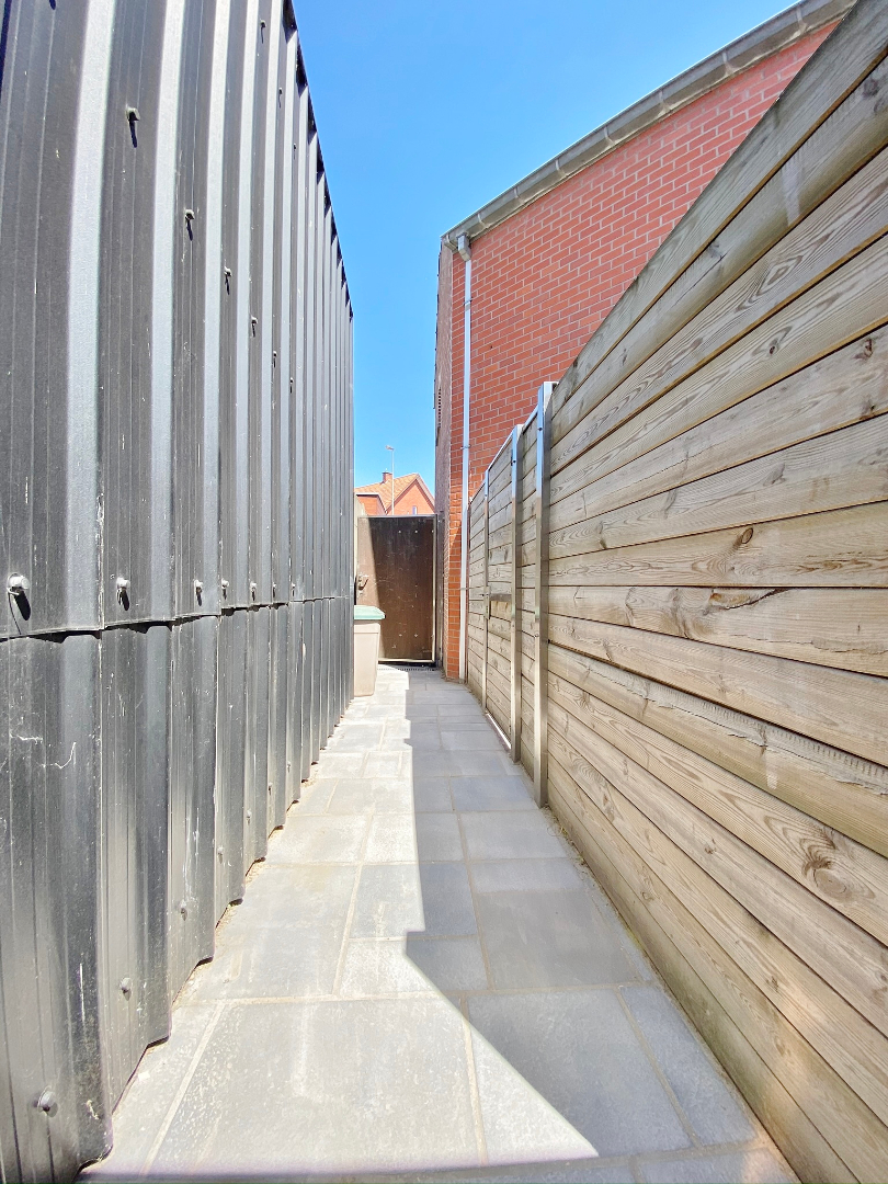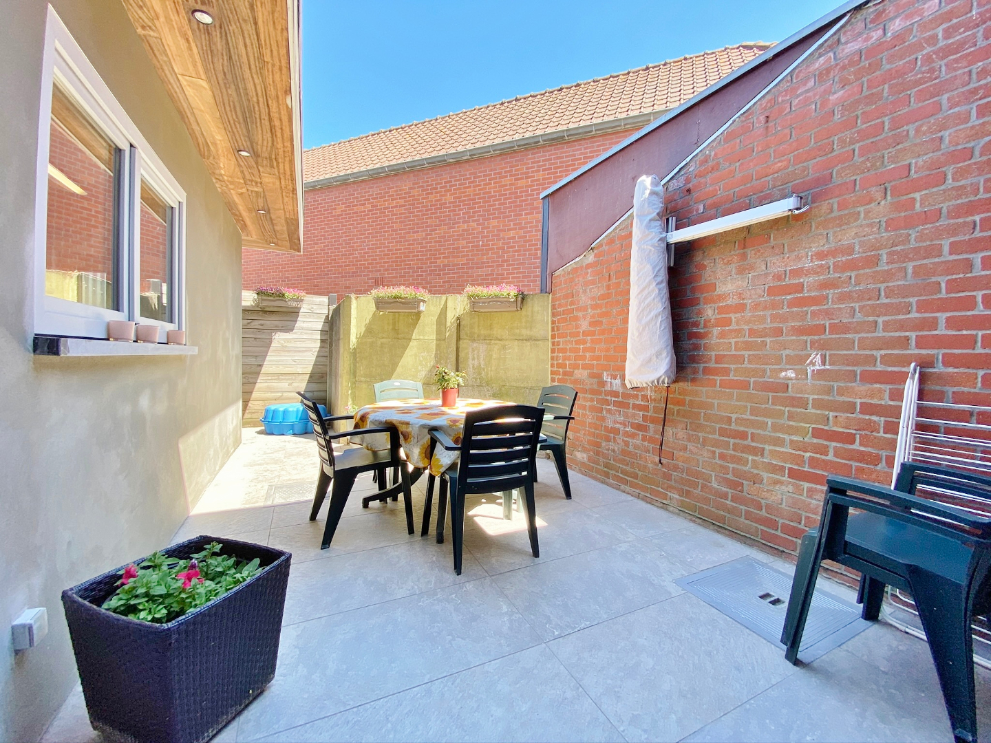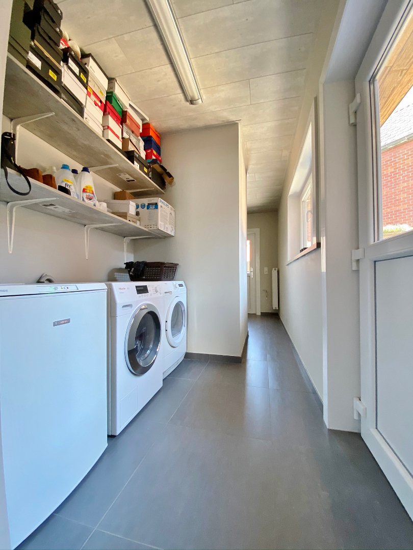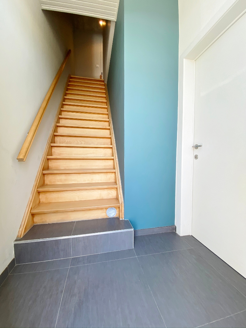 Deze woning bestaat uit een gelijkvloerse verdieping met inkom, lichtrijke leefruimte met open volledig ingerichte keuken, berging, wasplaats met aansluiting voor wasmachine, extra lavabo en apart toilet. Op het eerste verdiep zijn 2 ruime slaapkamers en een badkamer met lavabomeubel, douche en toilet. Buiten is een zonnige koer met uitweg ( te voet/met de fiets)