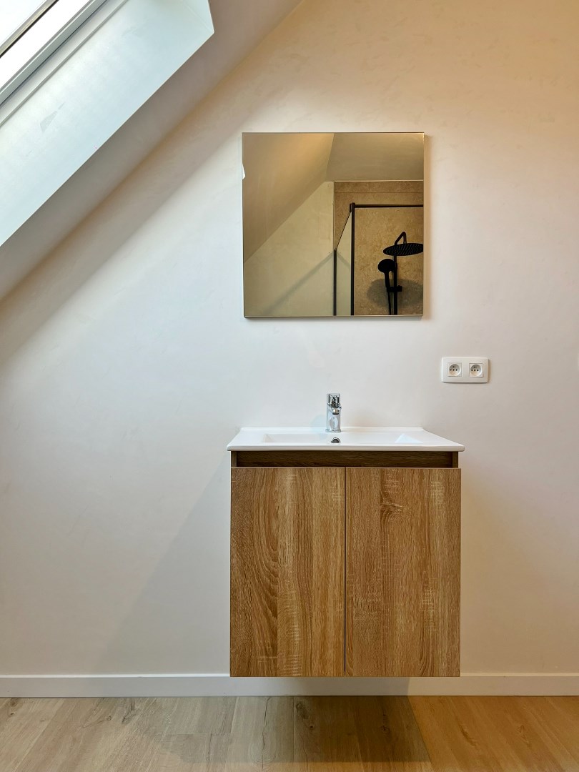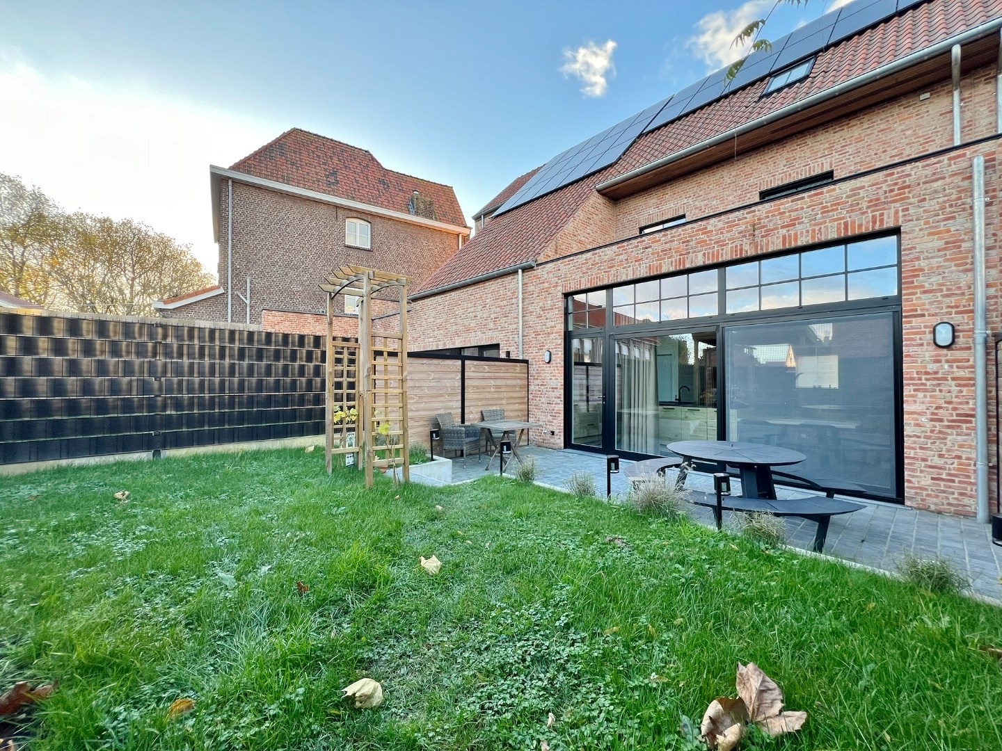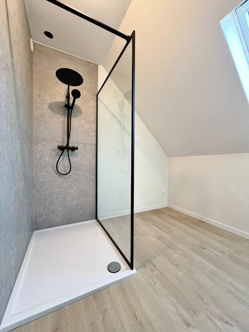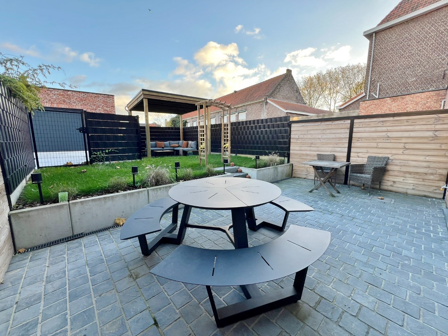 Buiten kan je genieten van de zuid gerichte afgesloten tuin met terras en uitweg.