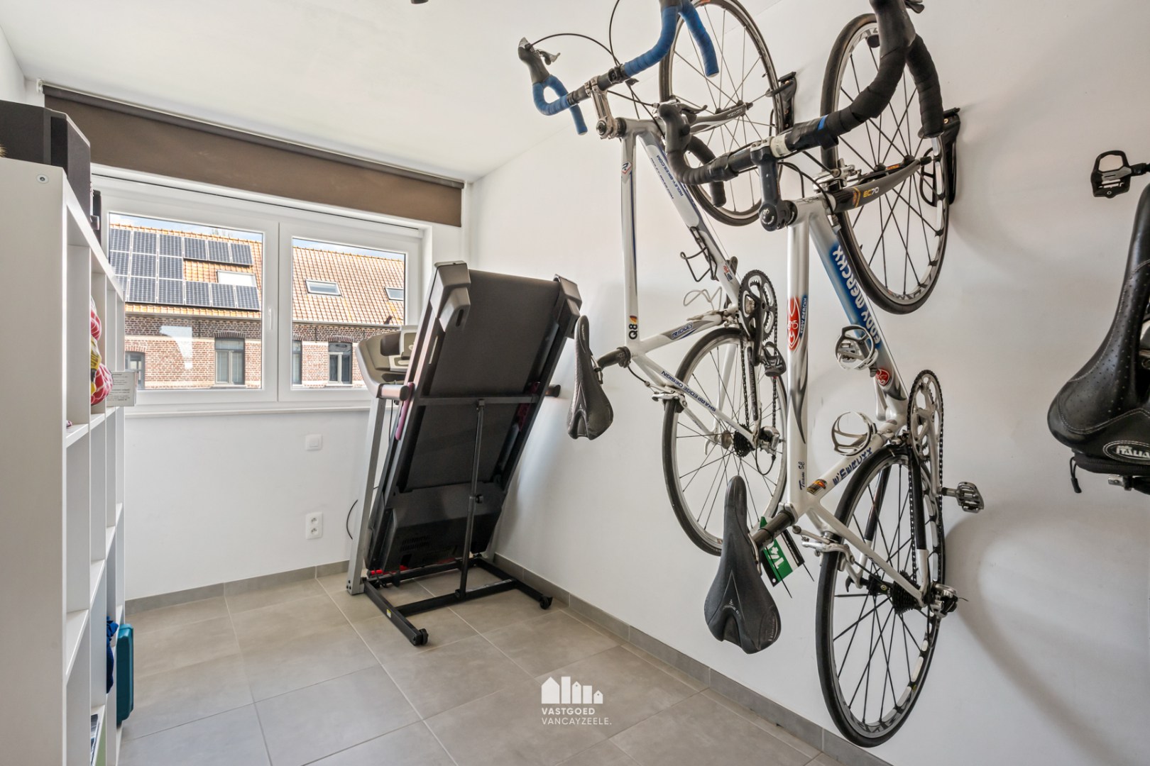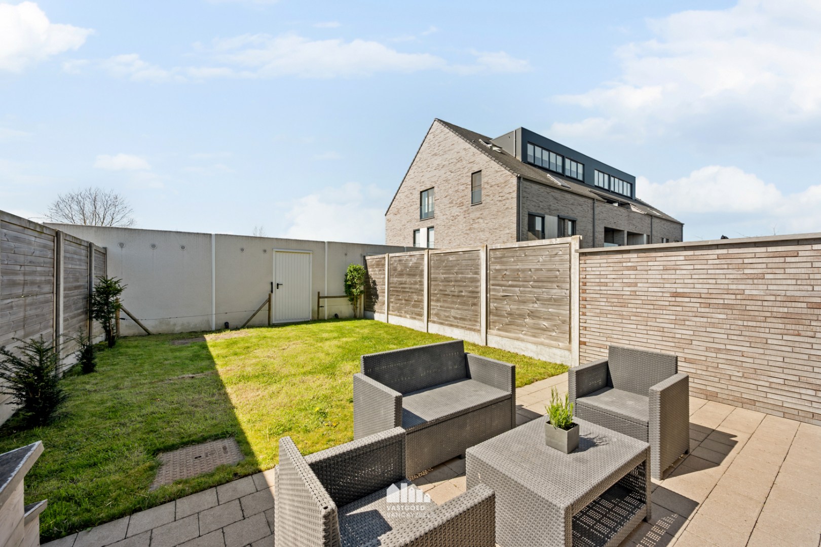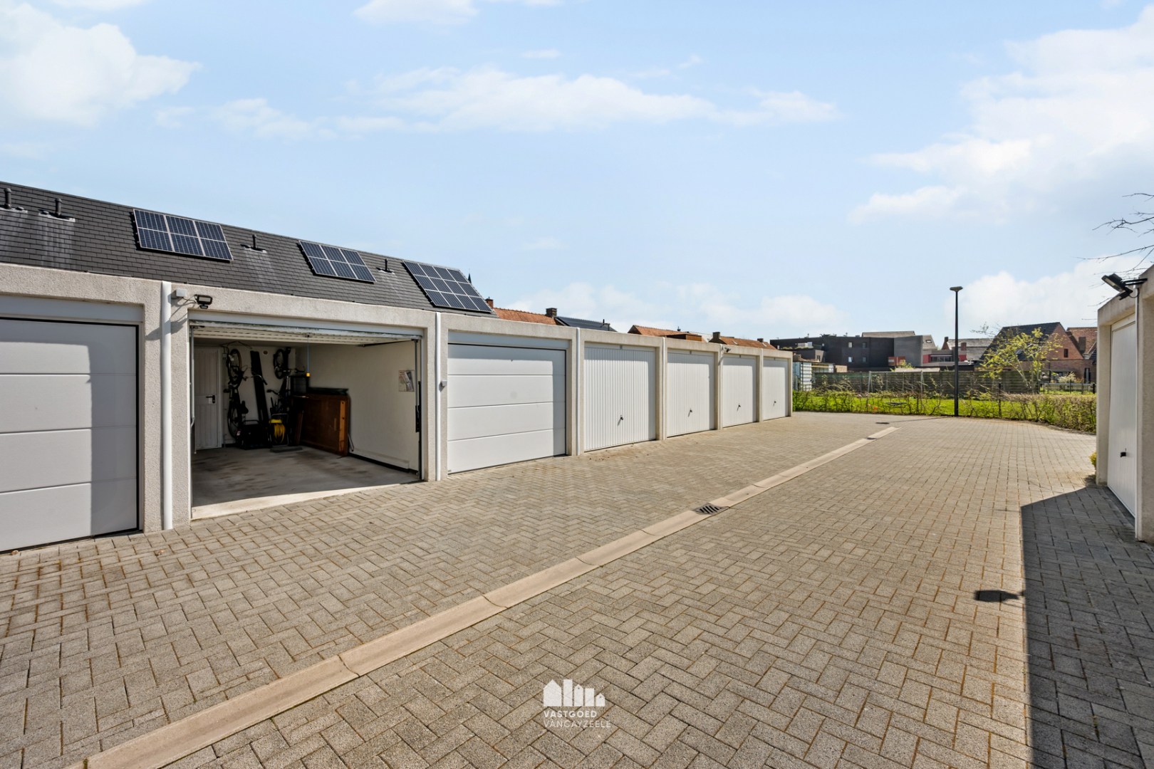 Buiten geniet u van een aangename, zonnige tuin met terras, ideaal om te ontspannen. Via de tuin heeft u toegang tot de garage met uitweg, wat zorgt voor extra comfort en bereikbaarheid. In het achterliggend gebouw is bovendien nog extra plaats voorzien voor fietsen en voor de woning is er een private autostaanplaats.