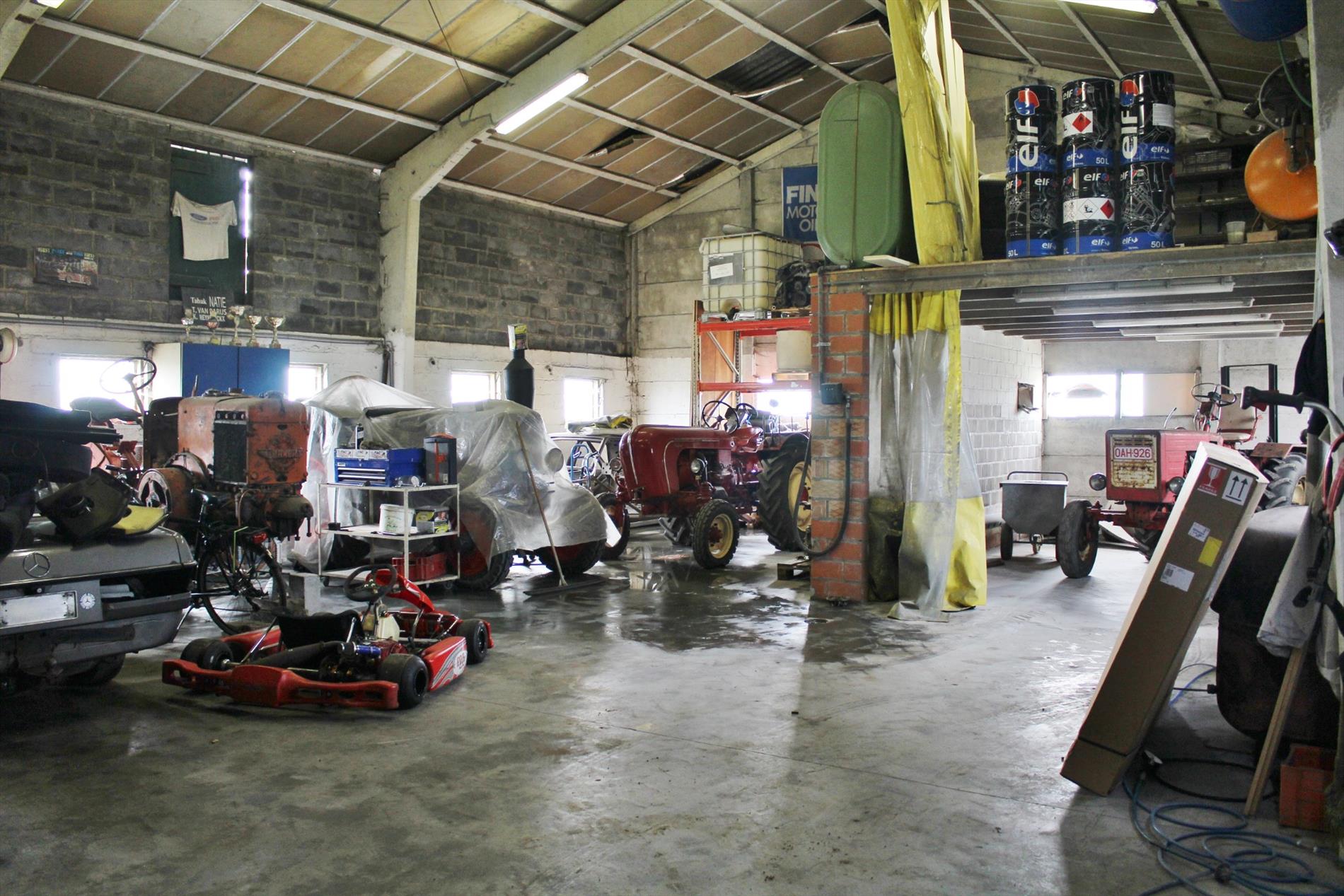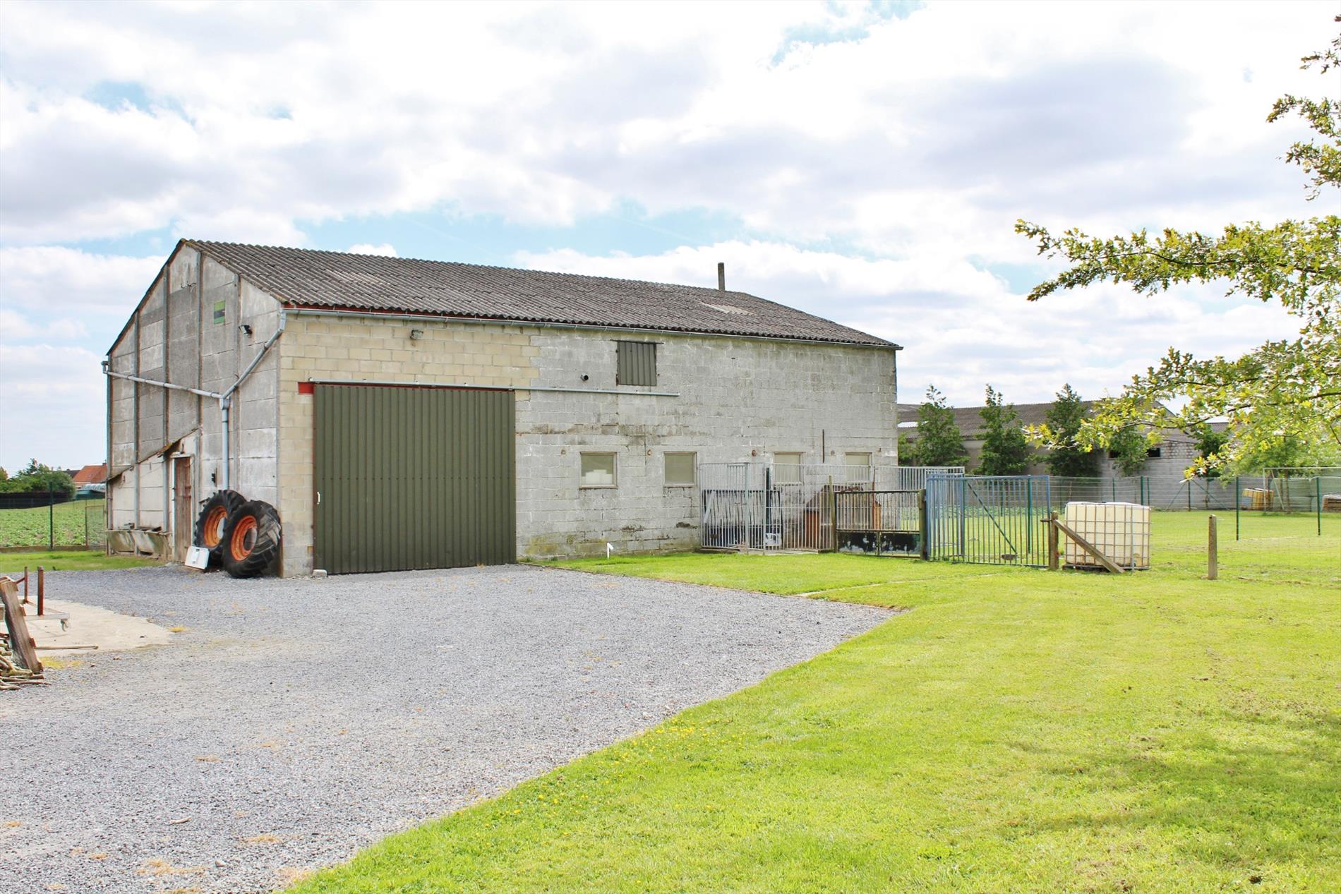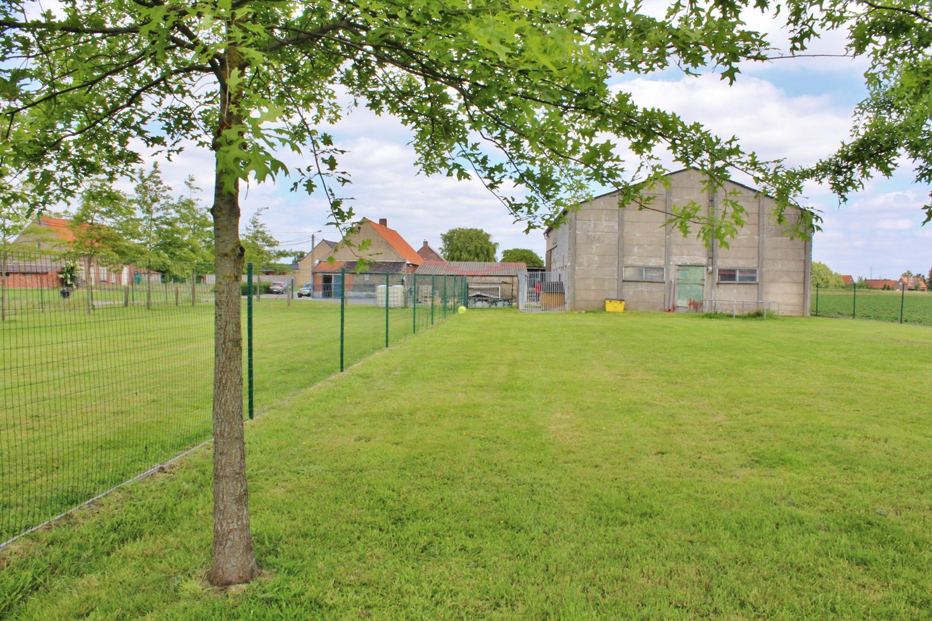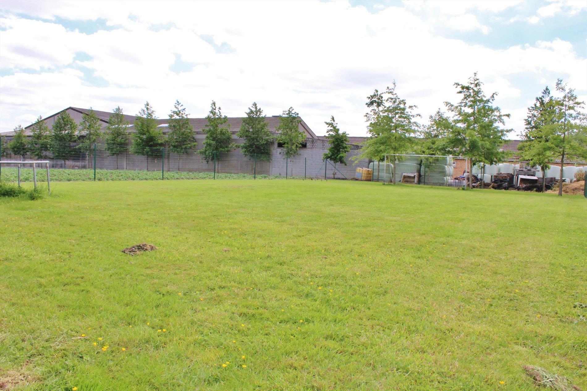 Buiten zijn diverse bijgebouwen, een loods van +/- 165m² en weiland.