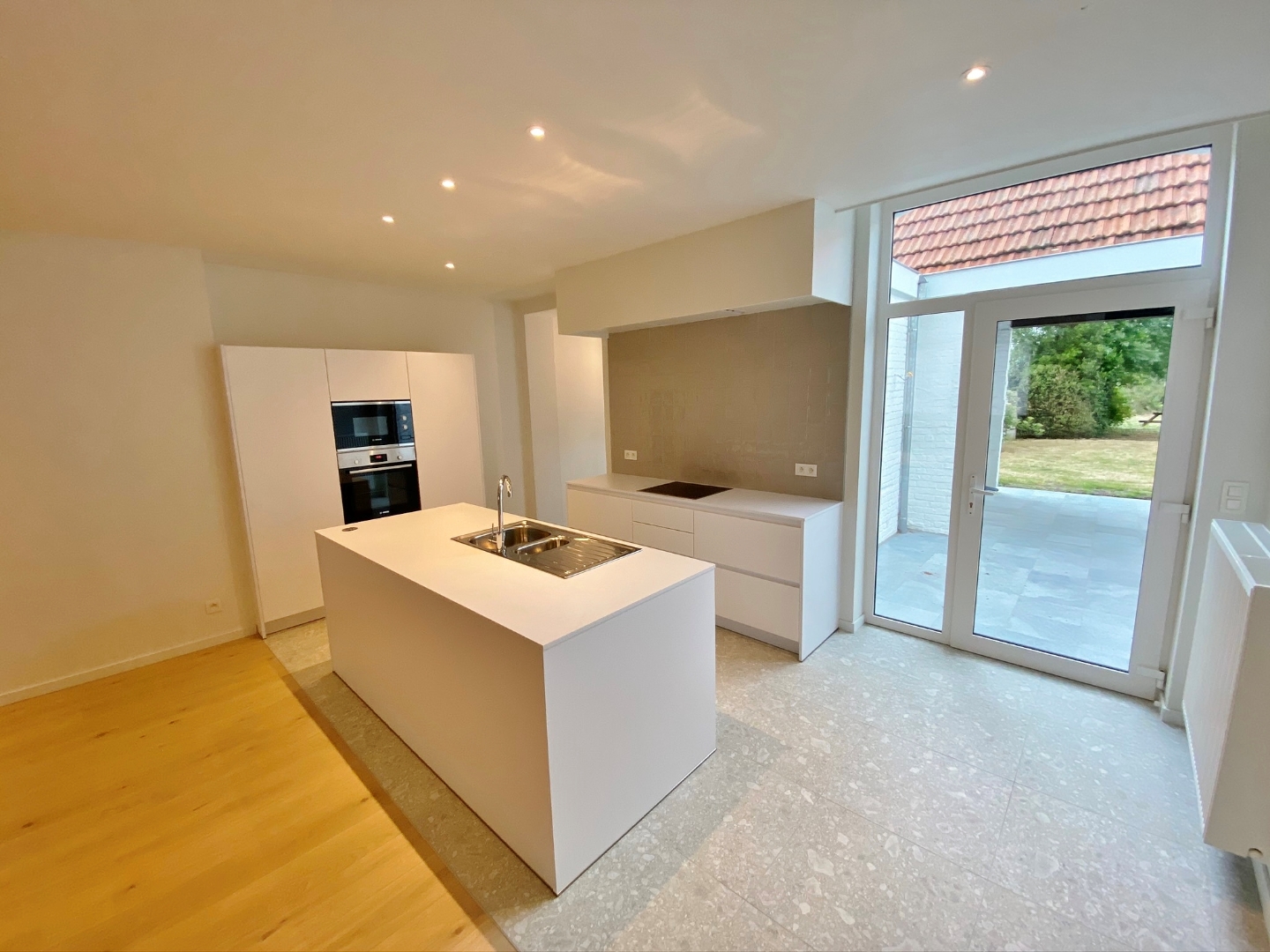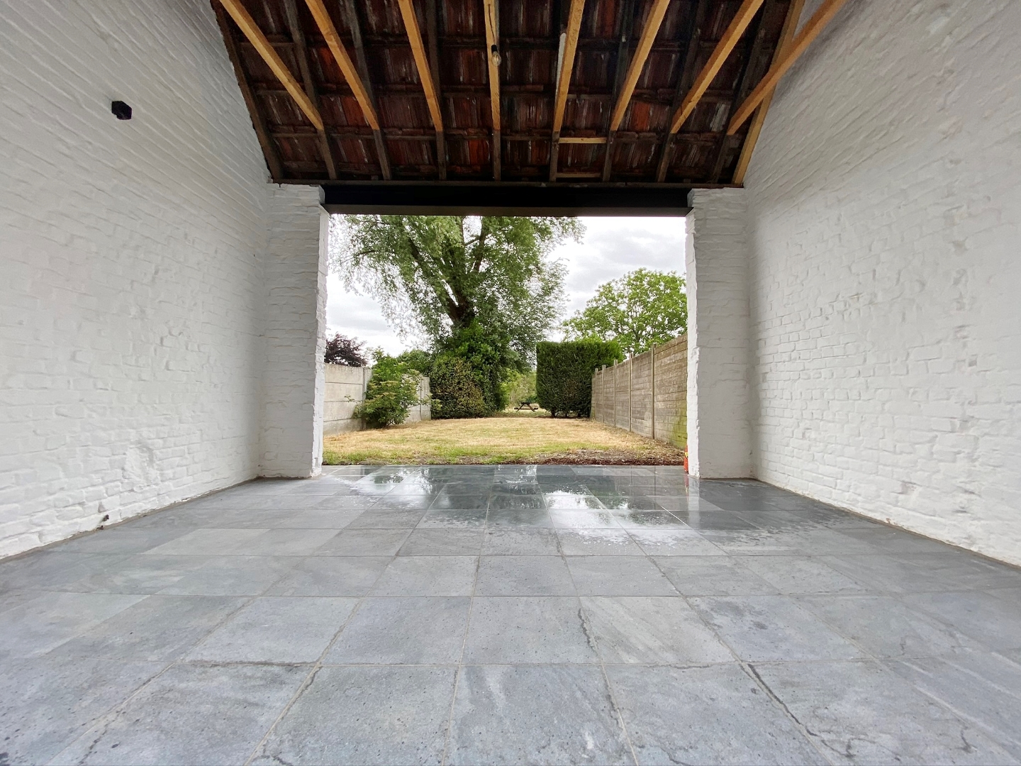 Buiten is een ruime tuin met terras, dit terras is gedeeltelijk overdekt en zorgt voor een charmante uitkijk.