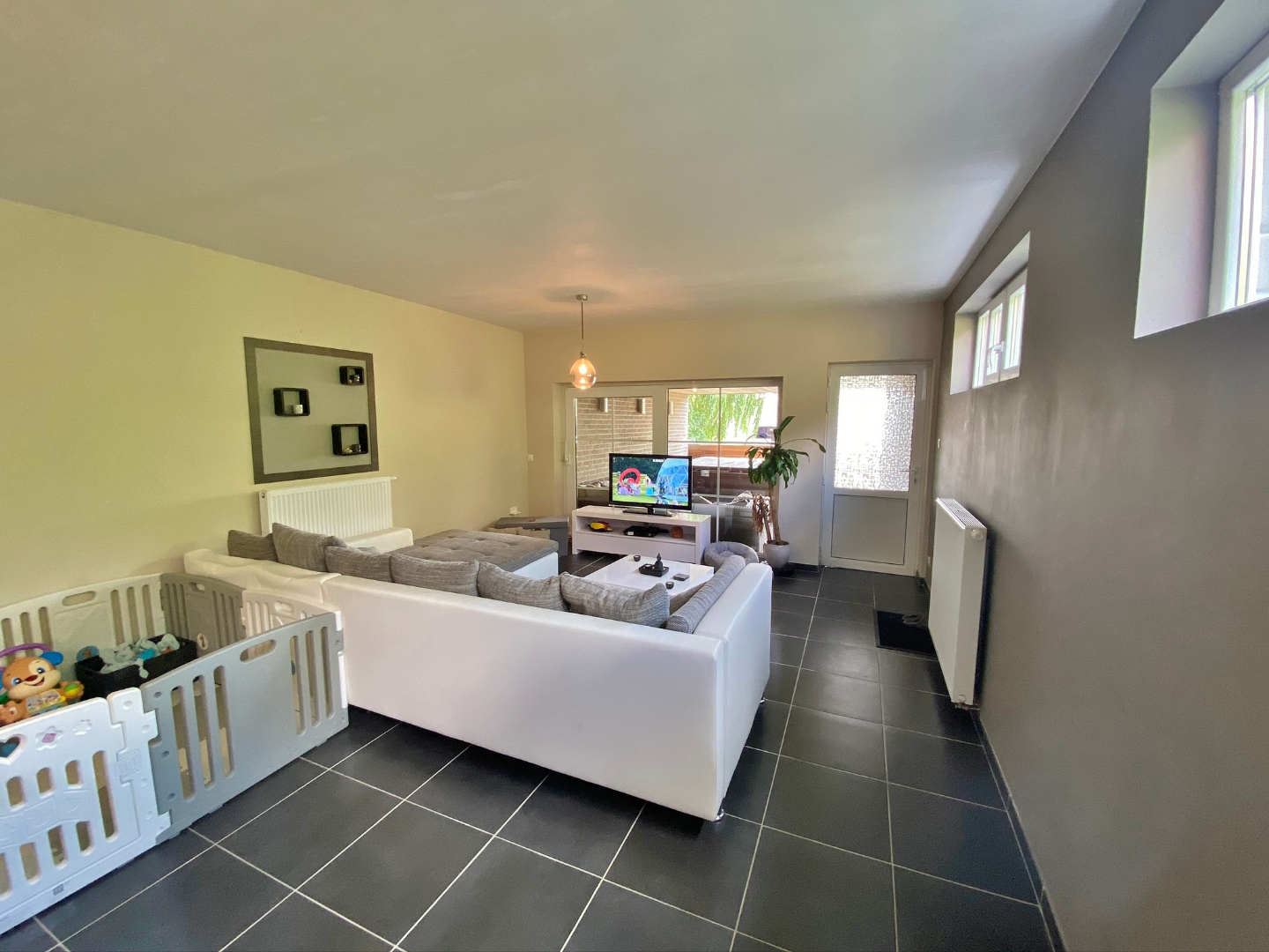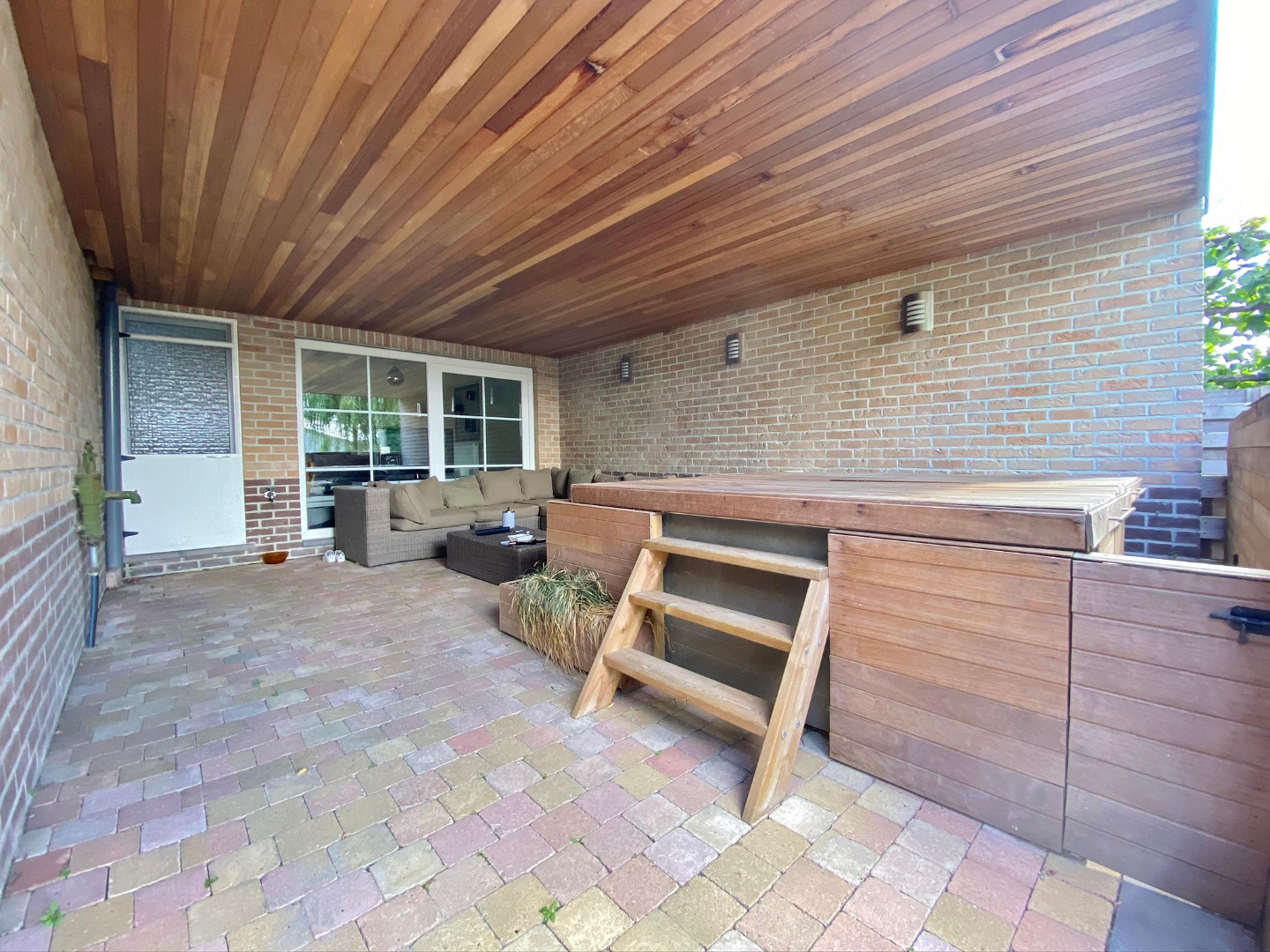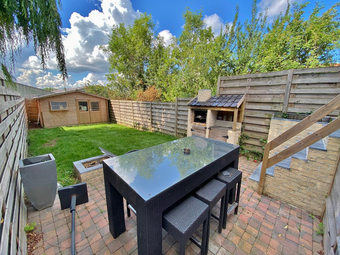 Deze verrassend ruime woning omvat een gelijkvloerse verdieping met inkom, apart toilet, garage met extra bergruimte en aansluiting voor wasmachine, ruime leefruimte met eet-en zitplaats en open volledig ingerichte keuken. Op het eerste verdiep zijn 2 ruime slaapkamers en een badkamer met douche, ligbad en lavabomeubel. Op het tweede verdiep zijn 2 extra kamers. Buiten is een gezellige zuid-gerichte tuin met terras, jacuzzi, ruime berging en ingebouwde BBQ.
