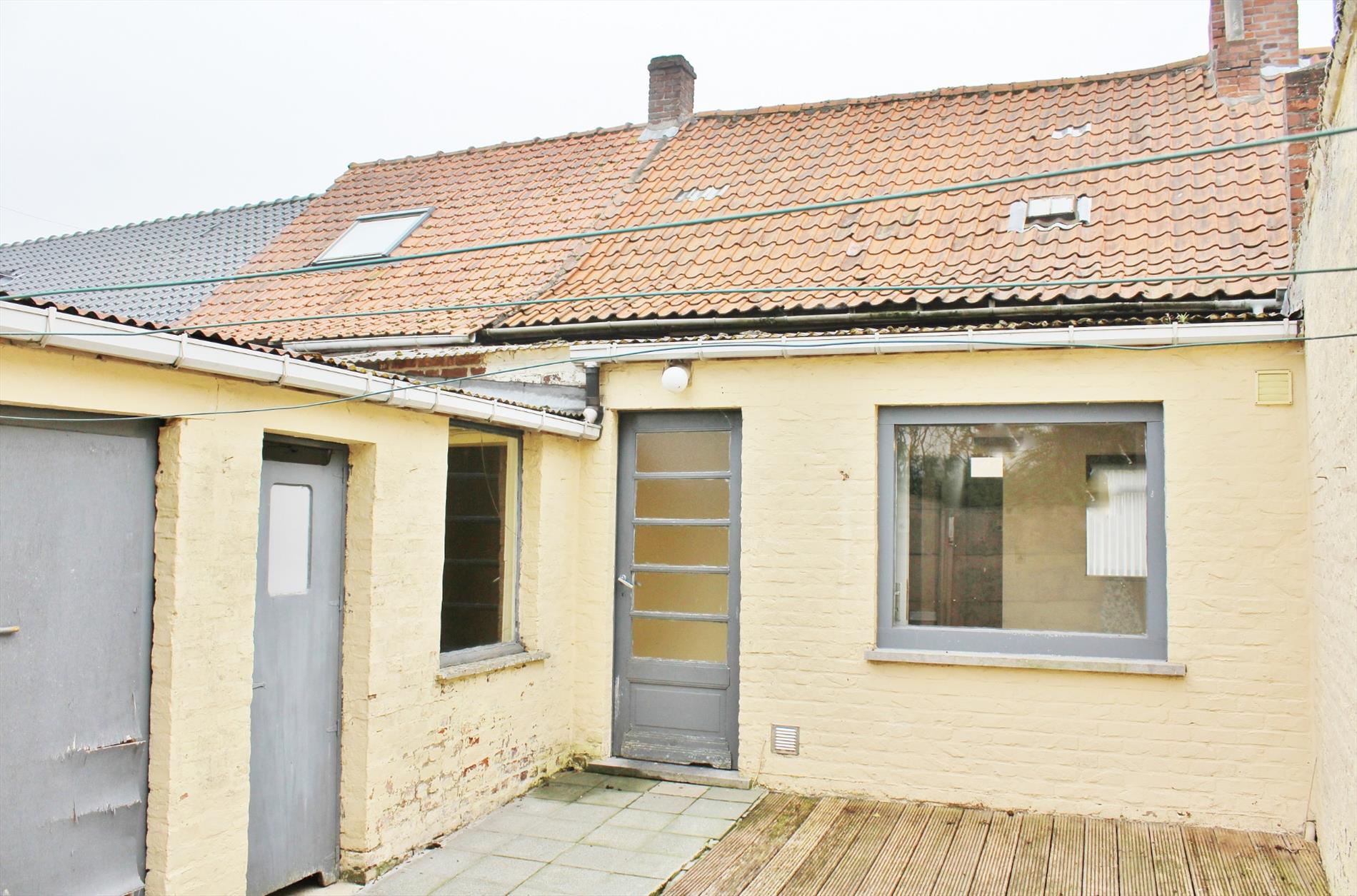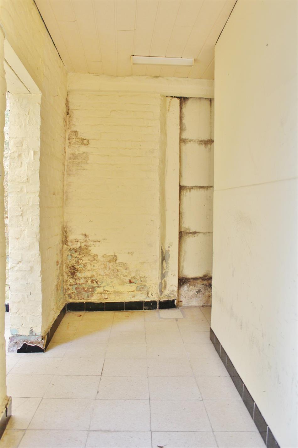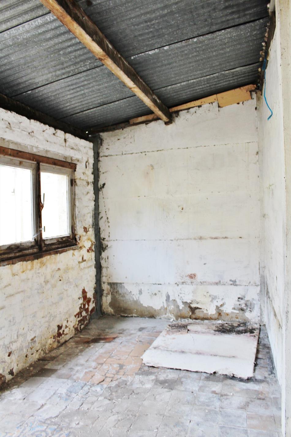 Deze woning omvat een leefruimte met gaskachel, twee aparte ruimtes ( slaapkamers/mogelijkheid tot uitbreiden leefruimte), ingerichte keuken, badkamer met douche, lavabomeubel en toilet, wasplaats, verschillende bergruimtes en een gezellige koer. Boven is het mogelijk om 2 tot 3 slaapkamers te voorzien.