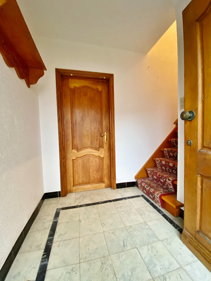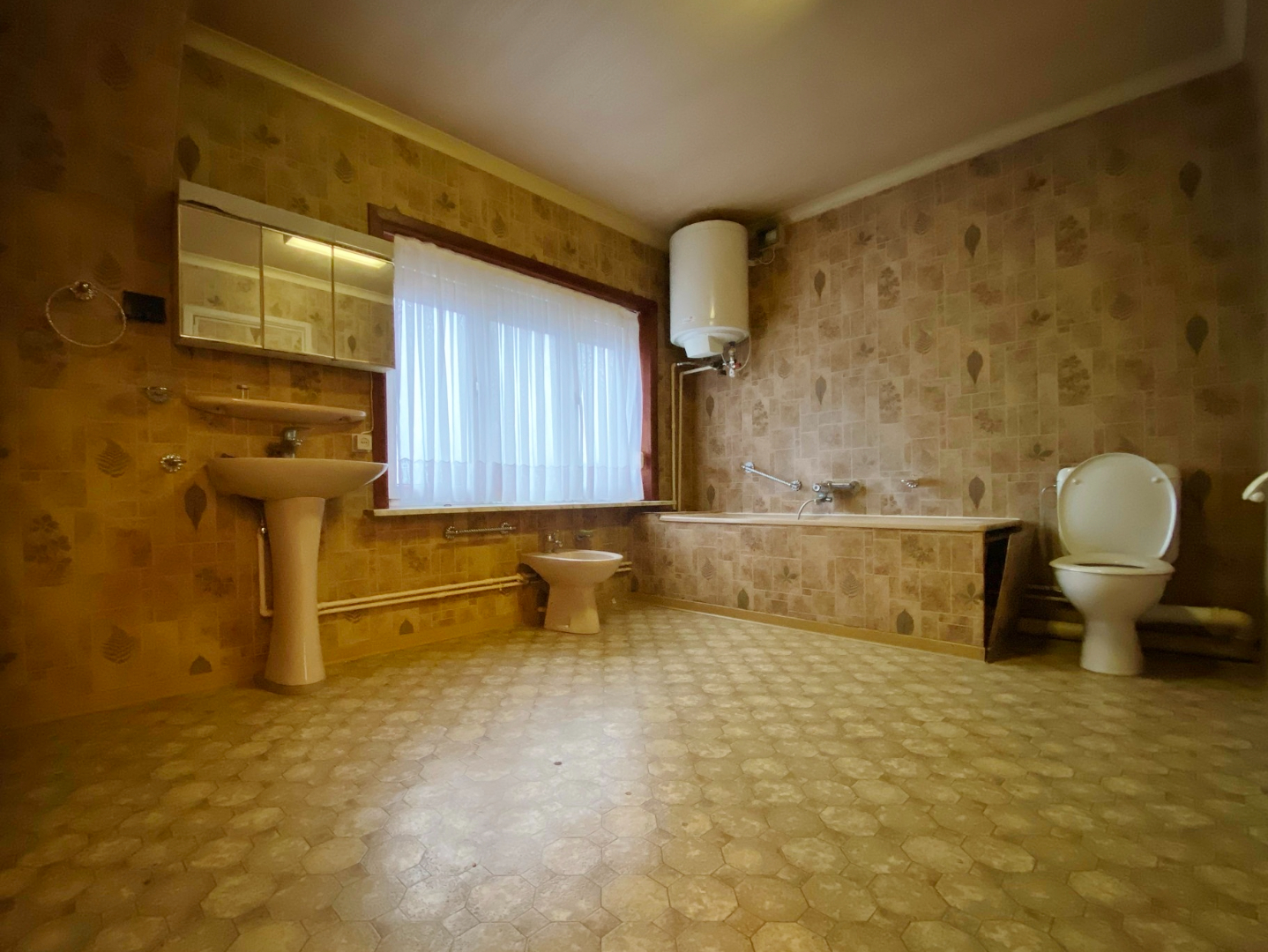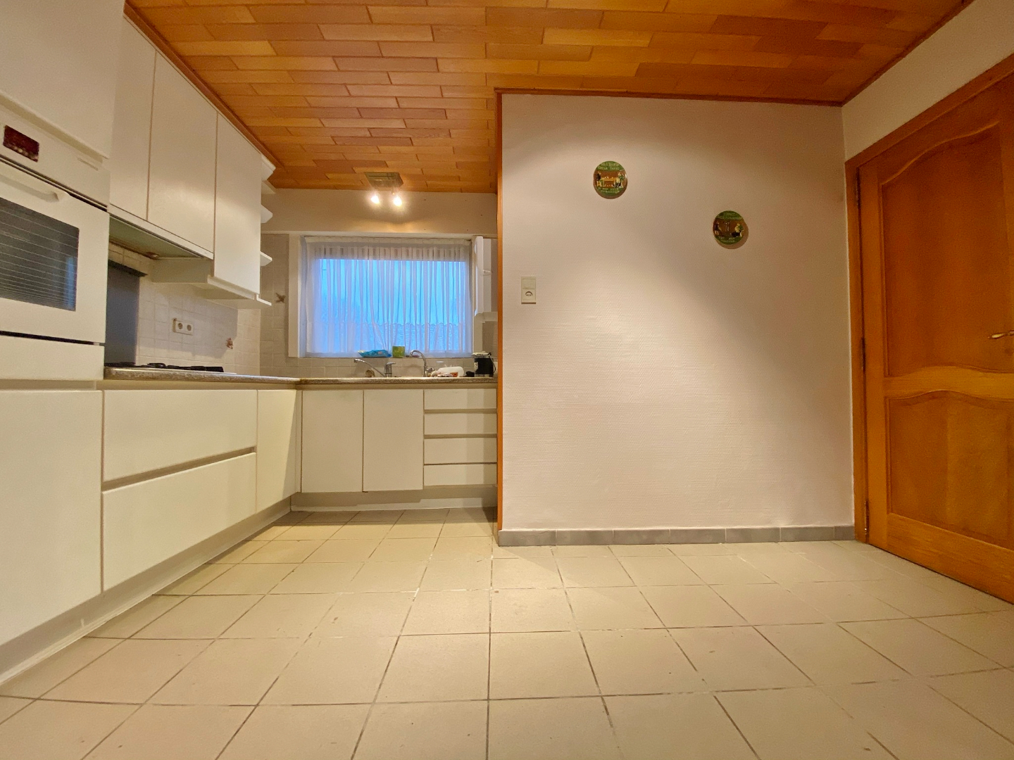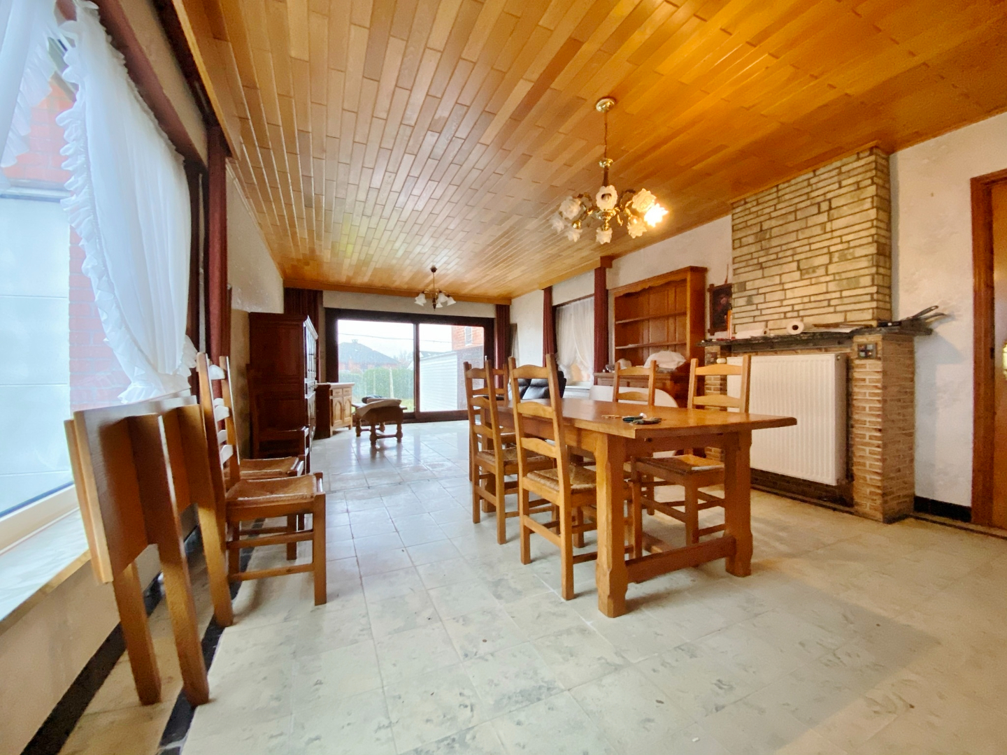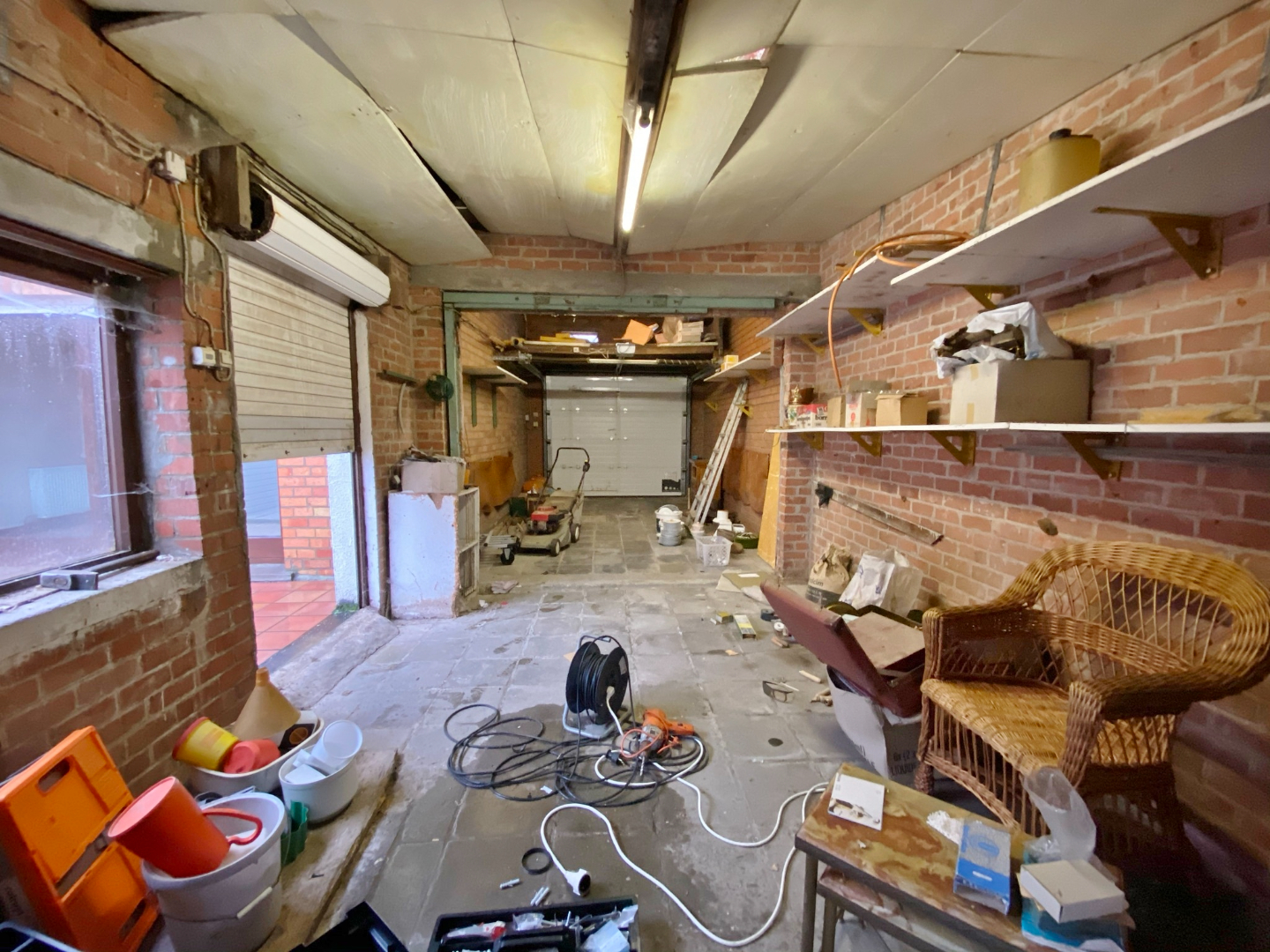 Deze woning is gelegen op een perceel van 594 m² en omvat een gelijkvloerse verdieping met inkom, ruime lichtrijke leefruimte, ingerichte keuken, wasplaats, bergruimte en een slaapkamer. Op het eerste verdiep zijn 2 ruime slaapkamers en een badkamer met ligbad, lavabo, toilet, bidet en dressingruimte. Er is tevens een zolder bereikbaar via plooitrap. Buiten is een volledig afgesloten zonnige tuin met buitenberging en toegang tot ruime garage (plaats voor 2 wagens) Voor de woning zijn ook een ruime oprit en voortuin.