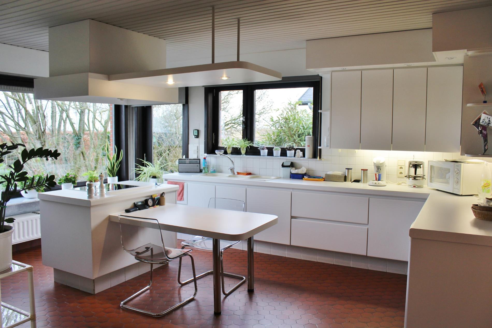 Deze villa is gelegen in de dorpskern van Sint-Jan en omvat een inkom, apart toilet, ruime lichtrijke leefruimte met eet- en zitplaats met open haard, open volledig ingerichte keuken met prachtig zicht over de tuin en aansluitende bergplaats, 2 ruime slaapkamers en een bureauruimte ( of 3de slaapkamer ), badkamer met douche, twee lavabo meubels en toilet, wasplaats met aansluiting voor wasmachine en lavabomeubel. Er is tevens een ruime geïsoleerde zolder en de woning is volledig onderkelderd met zeer ruime garage en deels kruipkelder. Buiten is een voortuin met oprit en ruime achtertuin met open zicht.