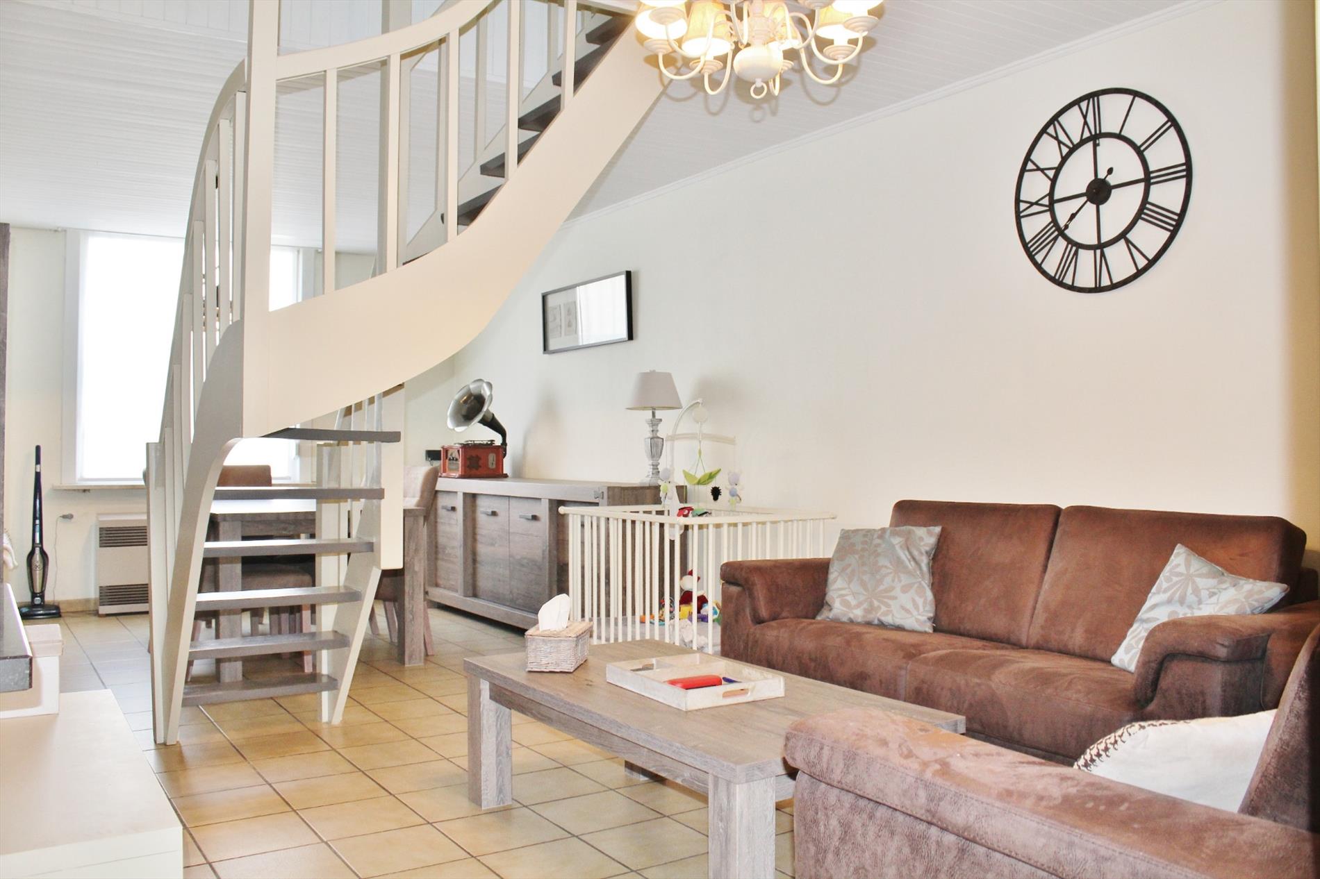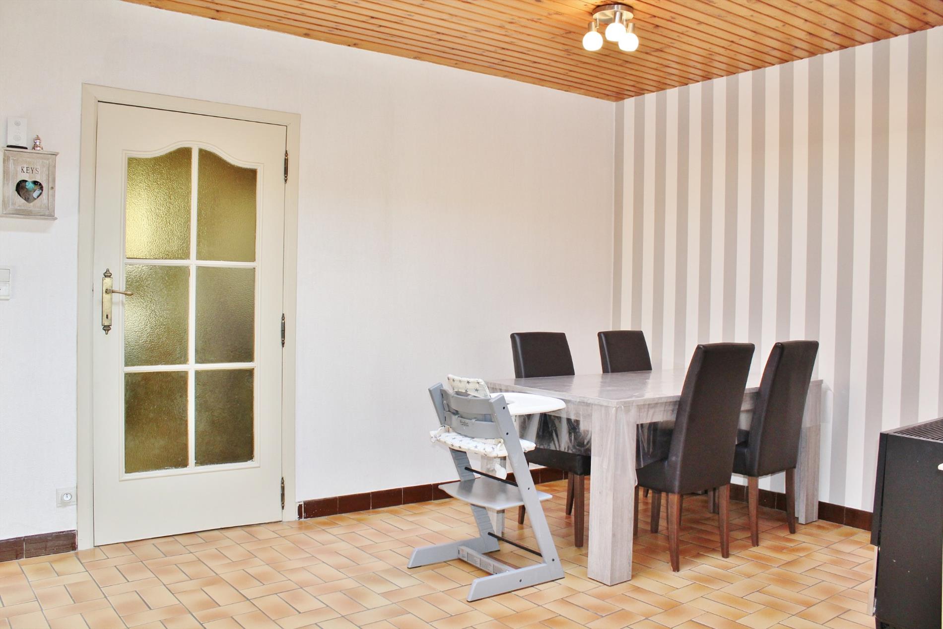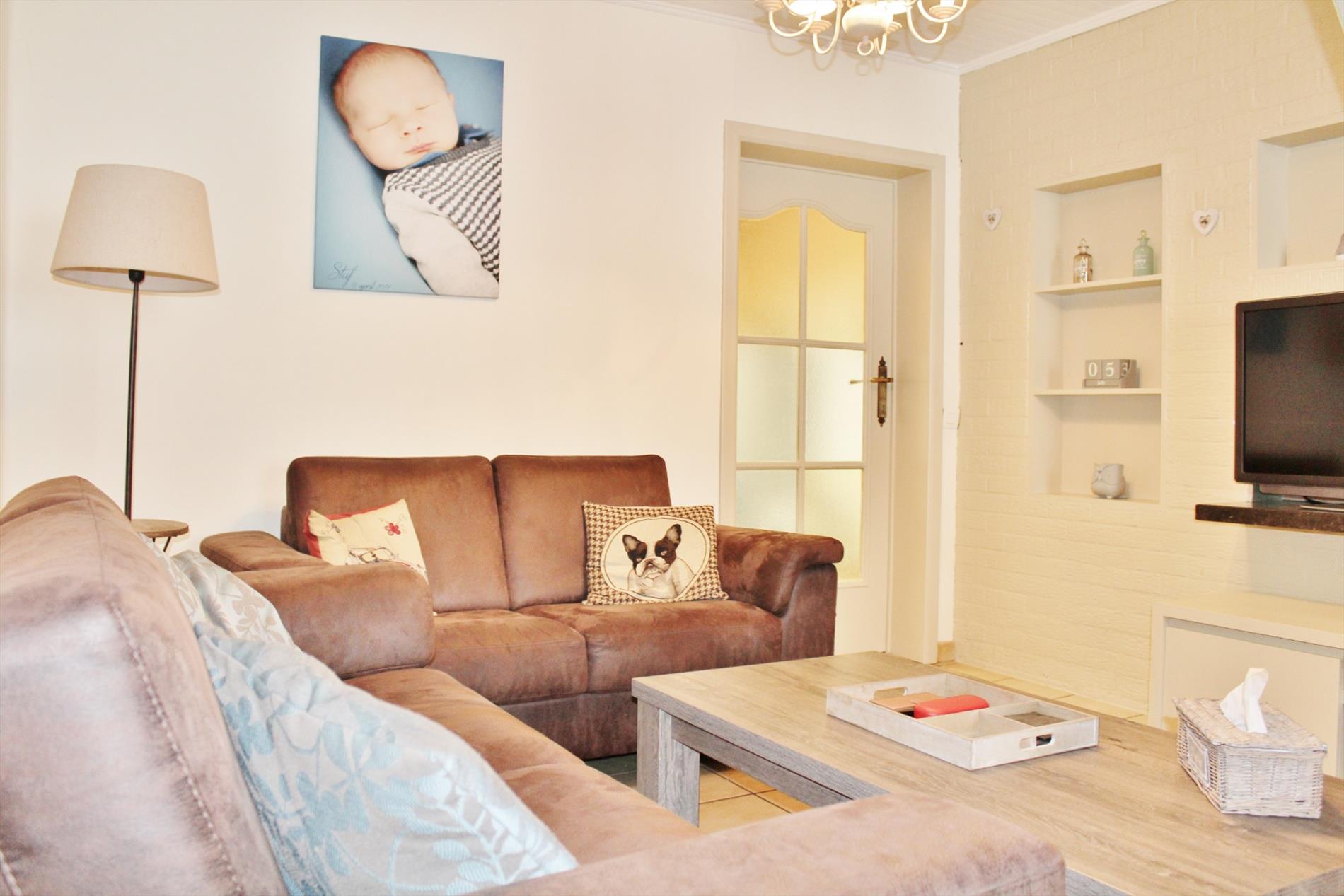 Deze woning omvat een gelijkvloerse verdieping met inkom, gezellige leefruimte, keuken met eetplaats, veranda, wasplaats, badkamer met bad, lavabomeubel en toilet. Op de eerste verdieping zijn 2 ruime slaapkamers ( vroeger 3, mogelijkheid om opnieuw op te splitsen)