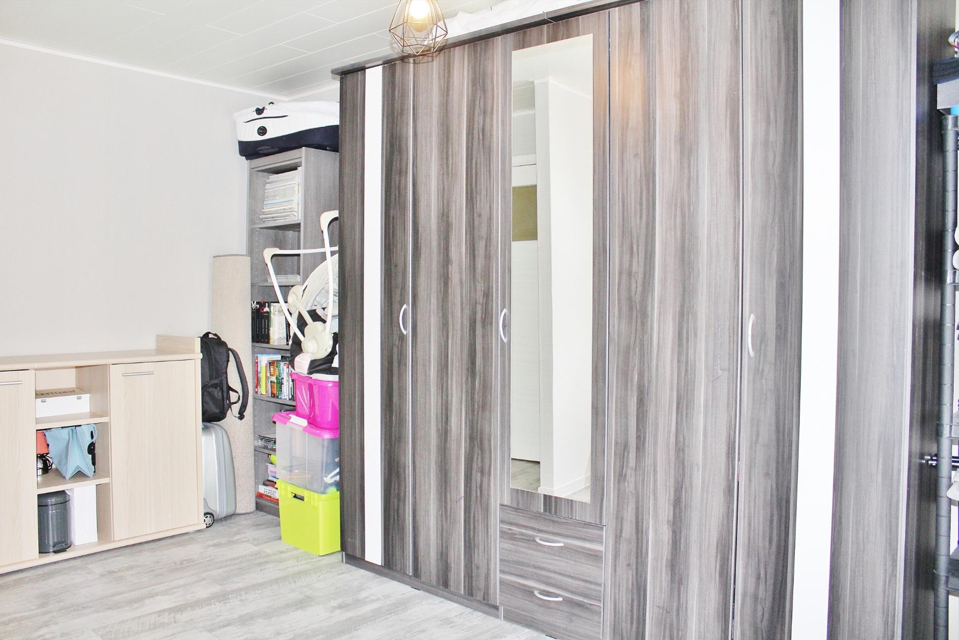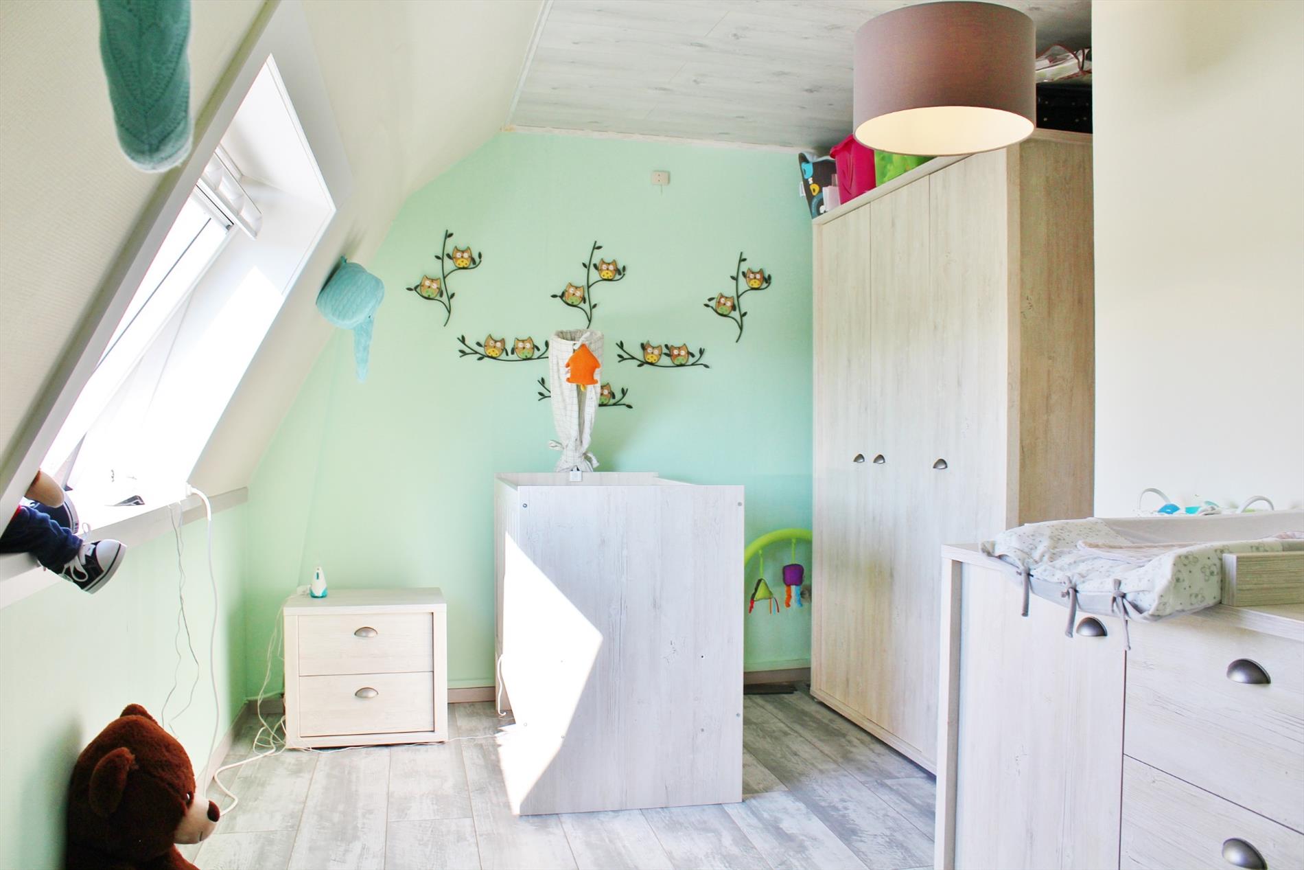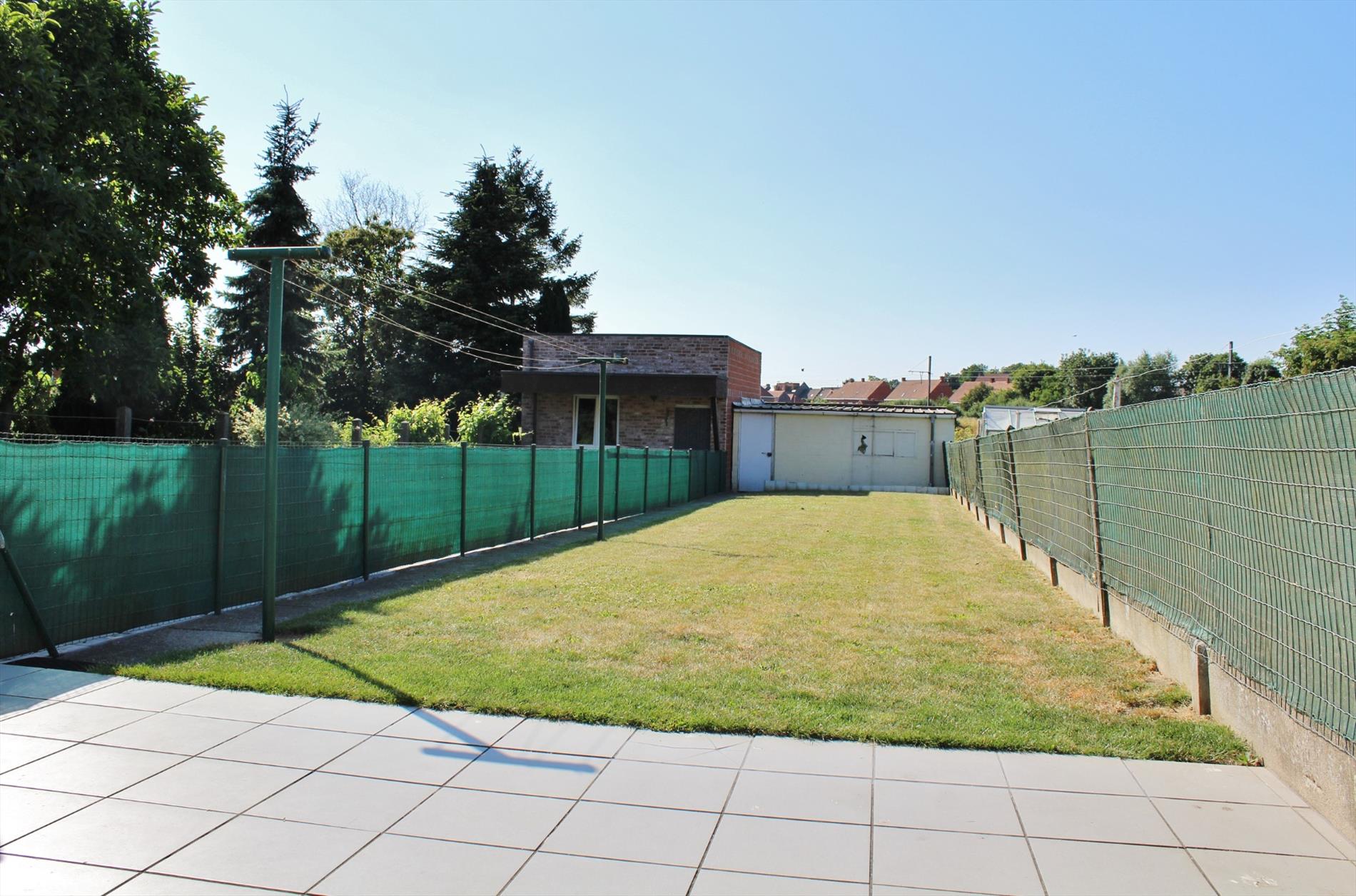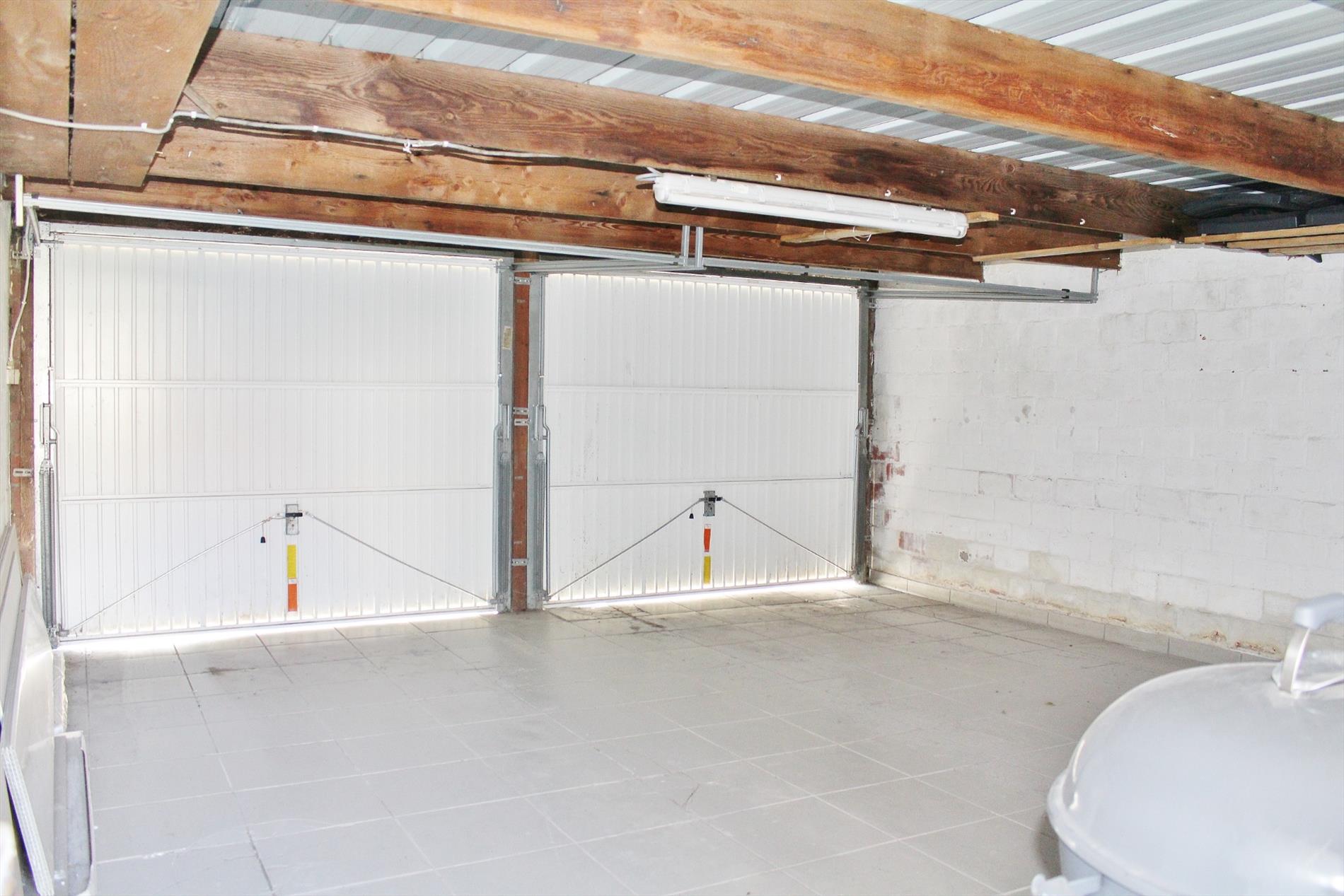Buiten is een zonnige tuin met uitweg en dubbele garage.