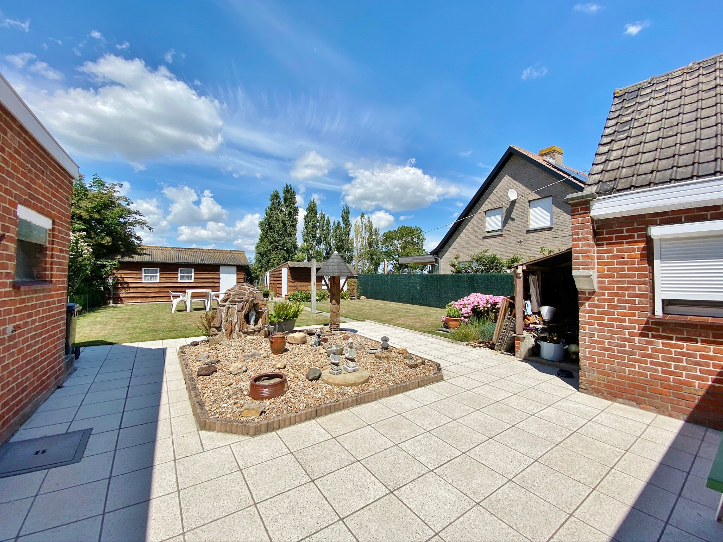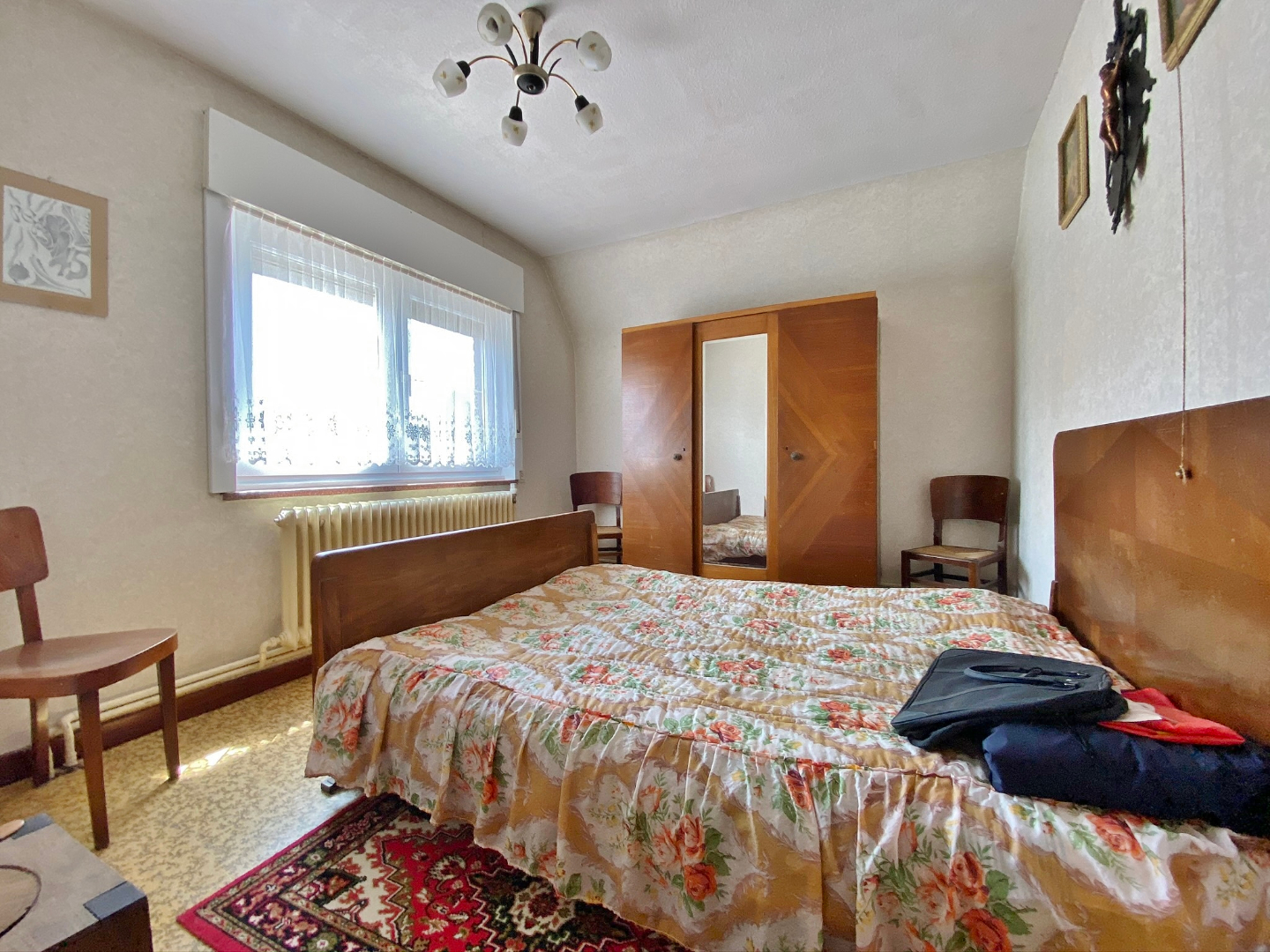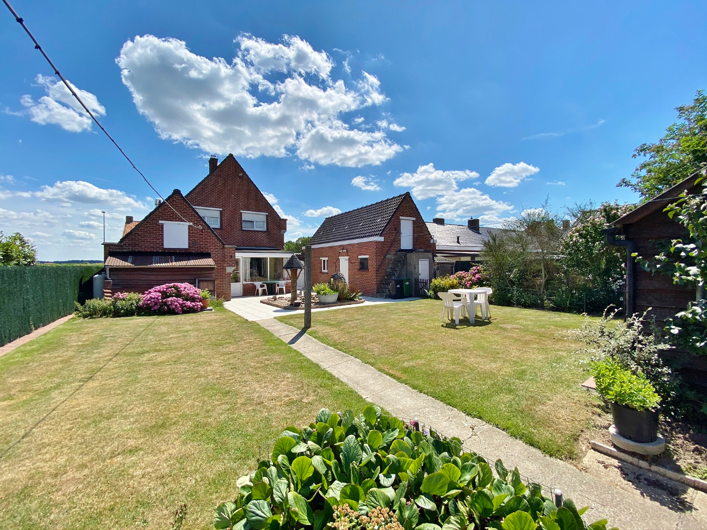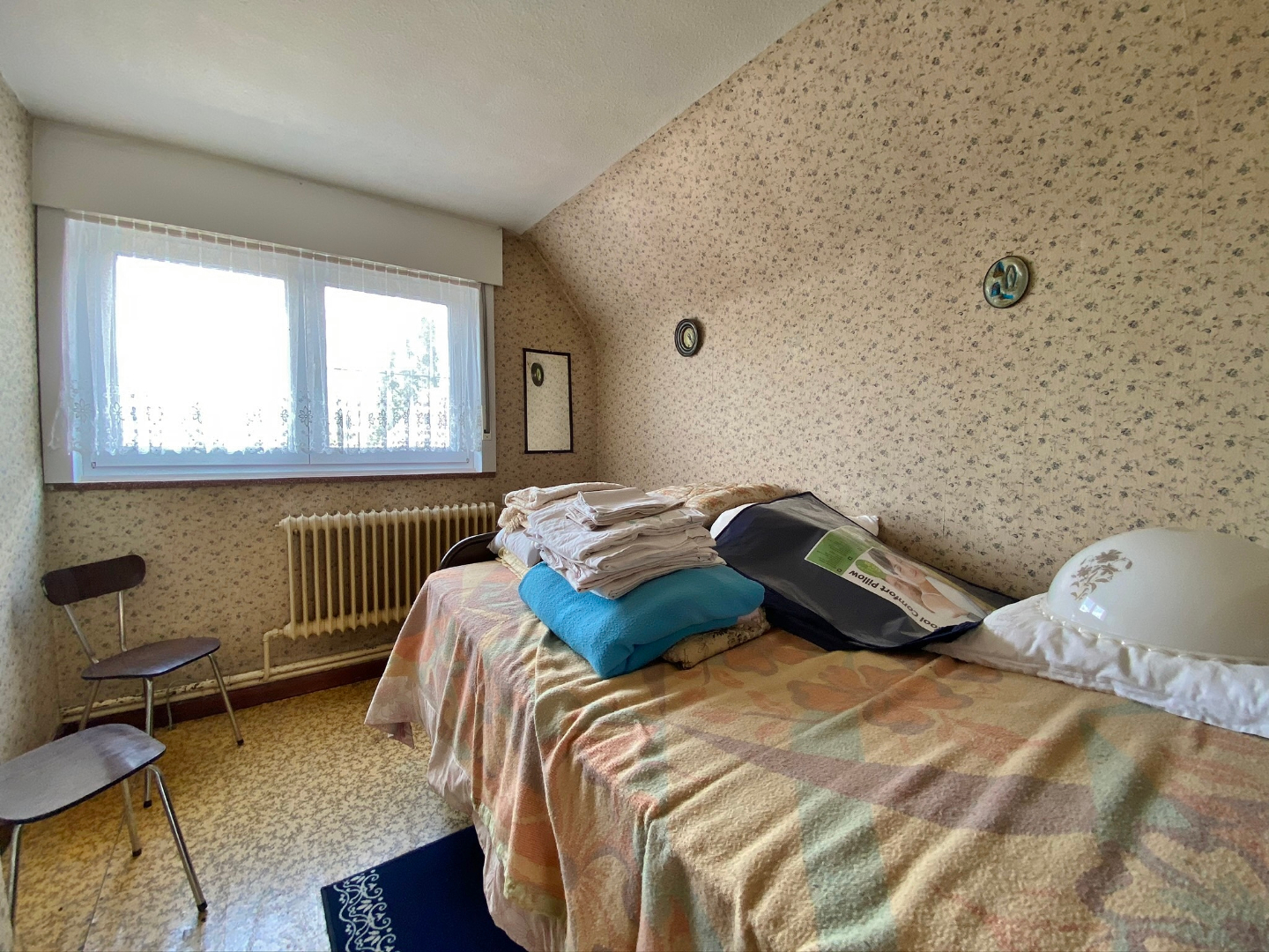 Op te frissen woonhuis bestaande uit een gelijkvloerse verdieping met inkom, ruime lichtrijke leefruime, eetplaats, keuken, veranda, slaapkamer en badkamer met douche, lavabomeubel en toilet. Op het eerste verdiep zijn 3 ruime slaapkamers en een toilet. Buiten is een grote volledig afgesloten tuin met verschillende buitenbergingen en een ruime garage met sectionale poort.