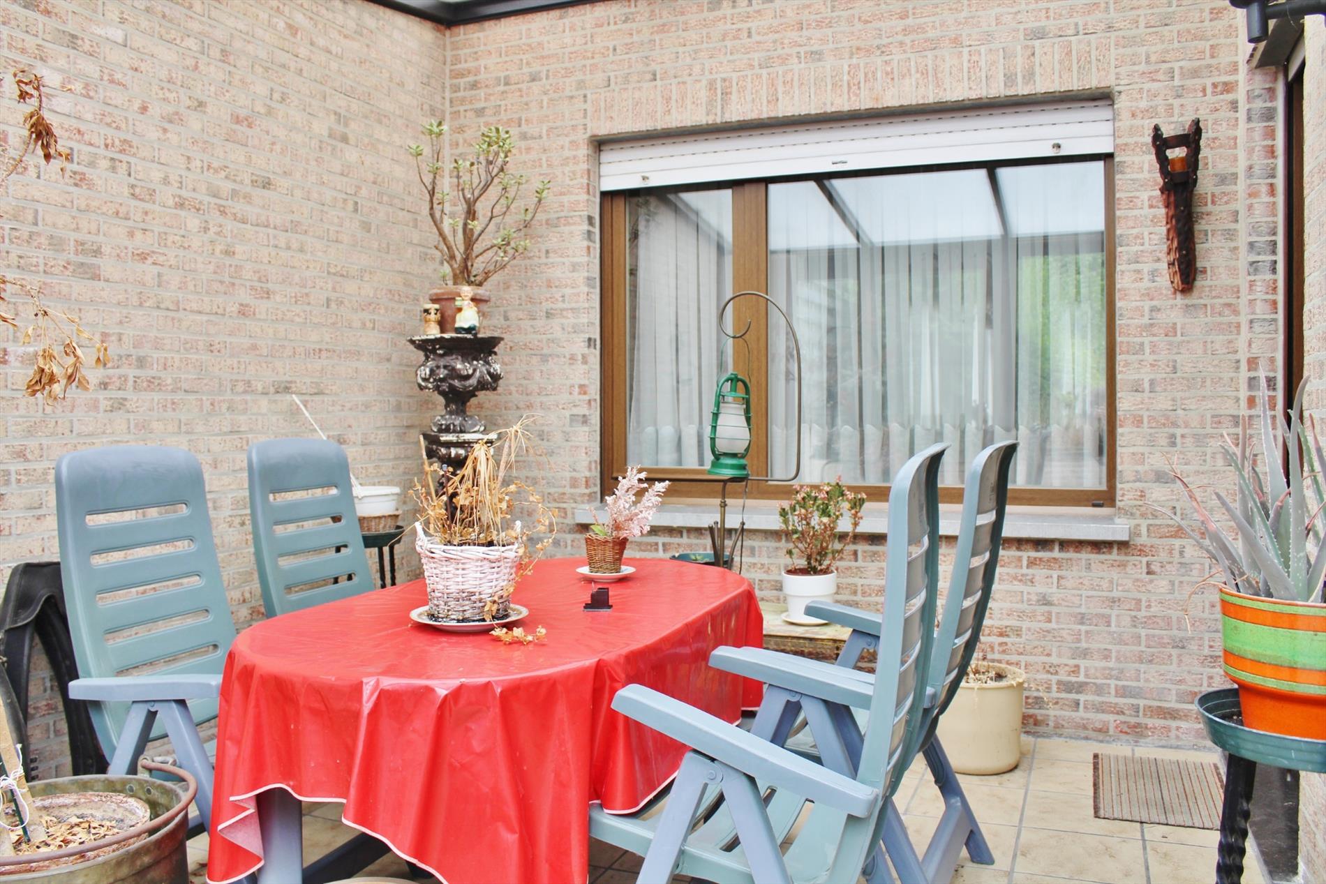 buiten vinden we een ruime tuin met terras en buitenberging.